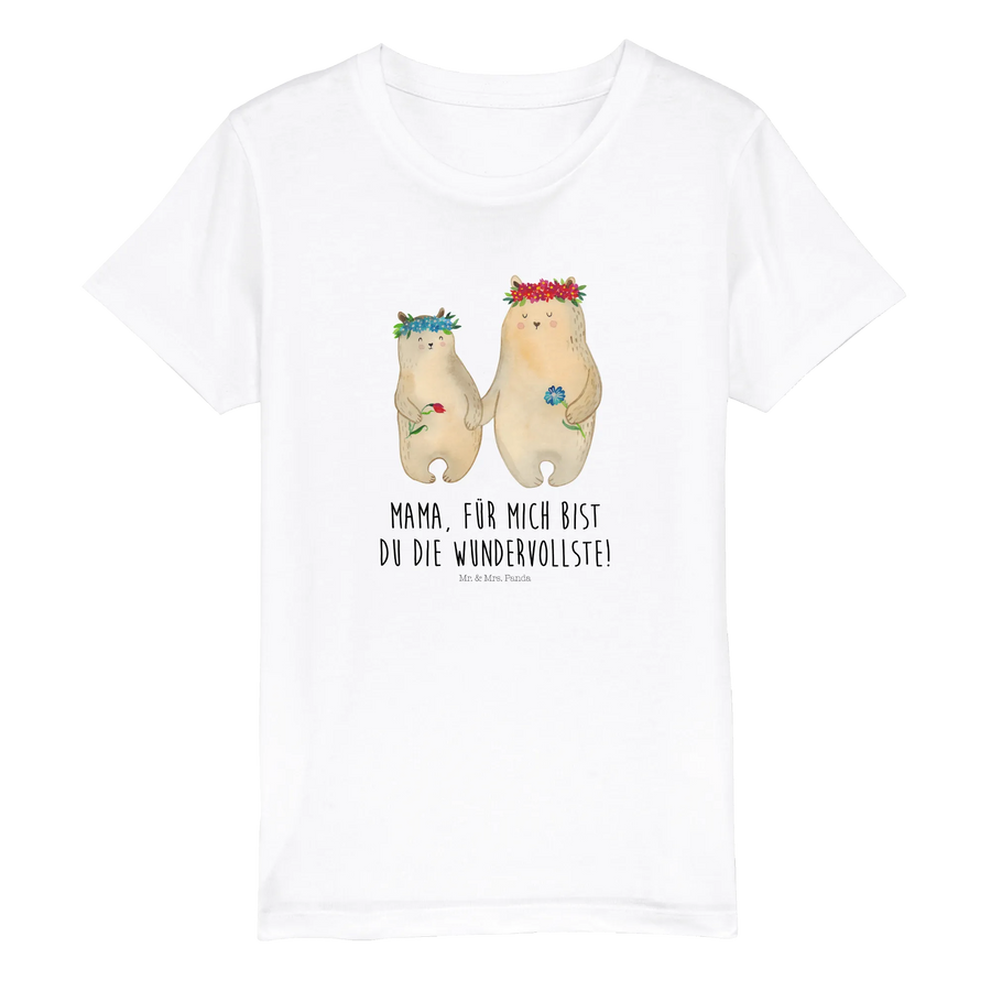 Das niedliche Design zeigt zwei fröhliche Bären, die mit einem Blumenkranz geschmückt sind und in der Mitte eine liebevolle Botschaft verbreiten: 'Mama, für mich bist du die Wundervollste!'. Es ist nicht nur ein T-Shirt, sondern ein Statement der Verbundenheit und des liebevollen Zusammenseins innerhalb der Familie.