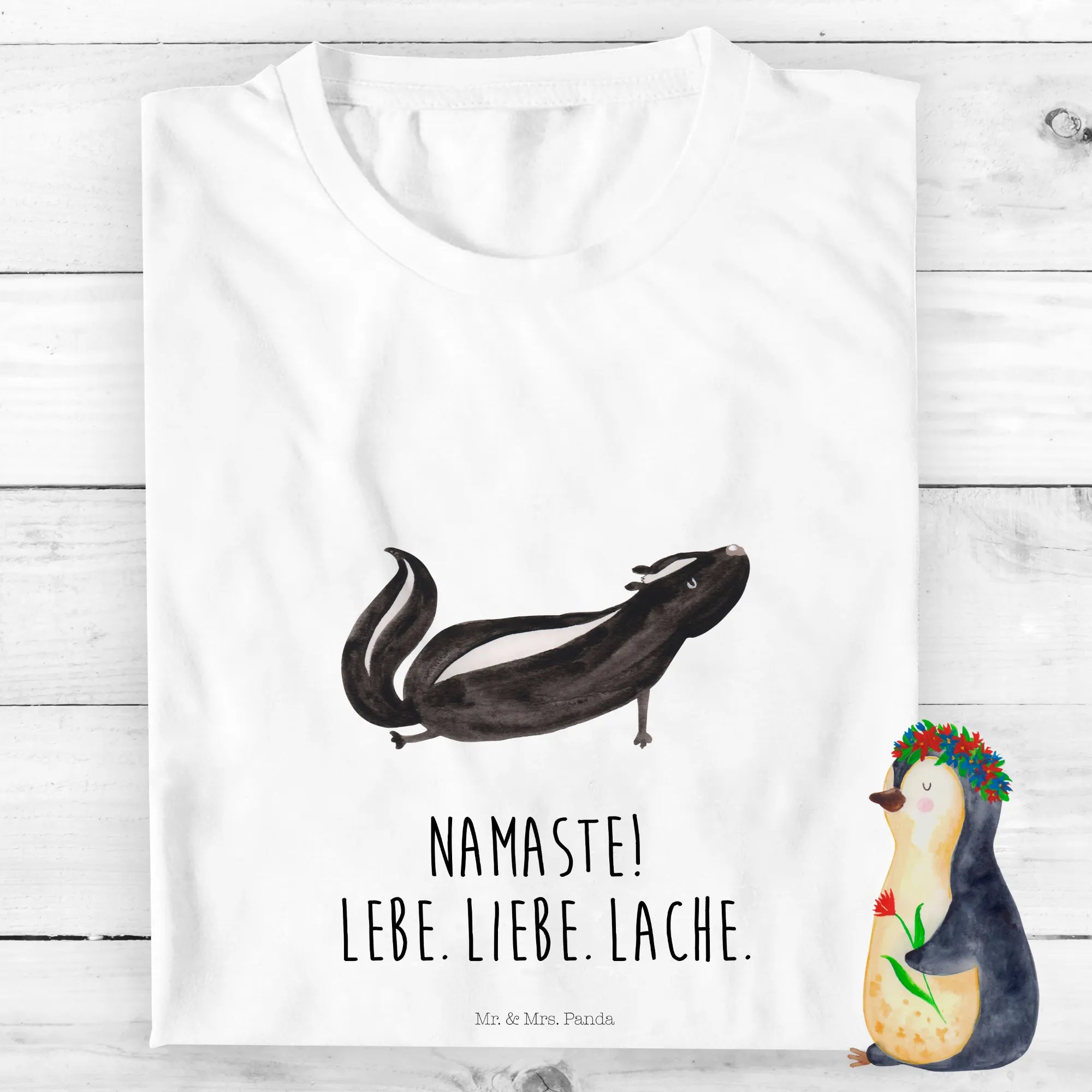 Zudem ist das T-Shirt Teil der Stinktier-Kollektion von Mr. & Mrs. Panda, die mit viel Liebe zu Herzen gestaltet wurde. Diese Kollektion ist eine Hommage an Herrn Blume, dem kleinen Stinktier, das viele Jahre an der Seite von Mrs. Panda lebte. Seine Lebensfreude und die schönen gemeinsamen Erinnerungen werden mit jedem Stück der Kollektion lebendig.