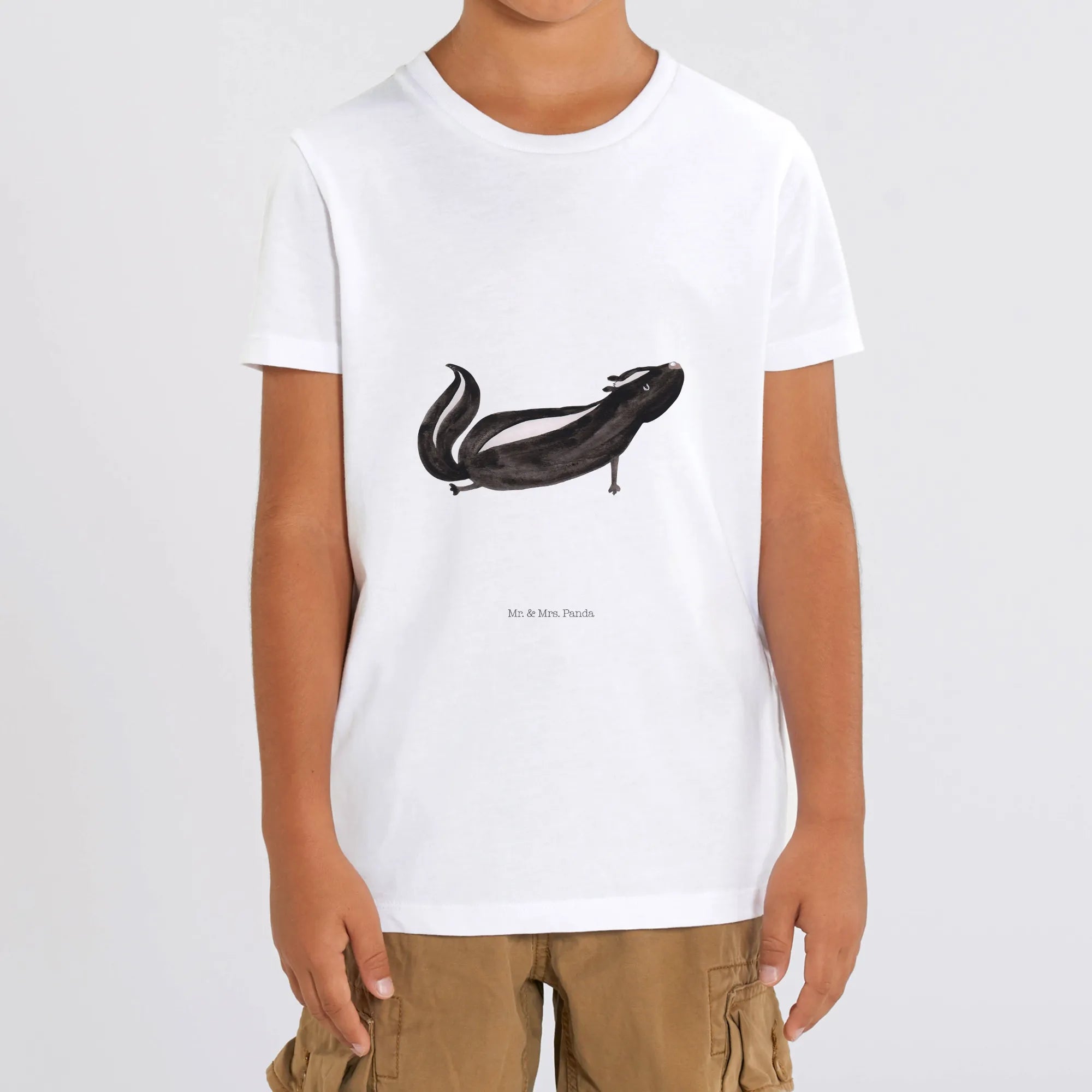 Das wunderschöne und nachhaltige Kinder T-Shirt von Mr. & Mrs. Panda mit dem süßen Stinktier Yoga Motiv ist das perfekte Geschenk für kleine Tierliebhaber und Yoga-Fans!