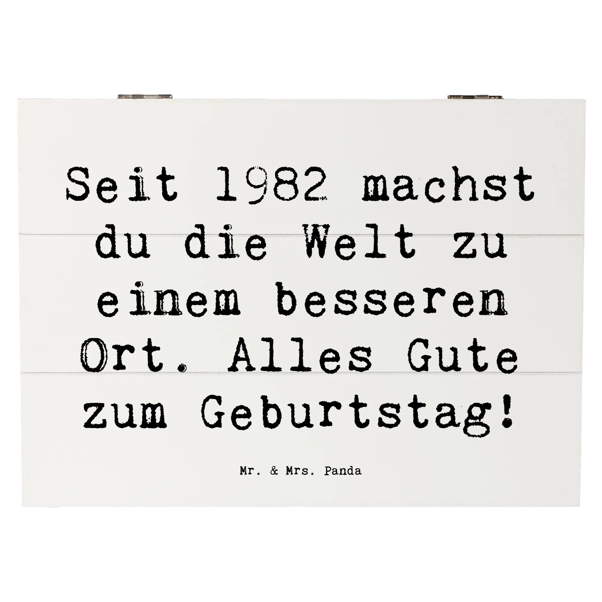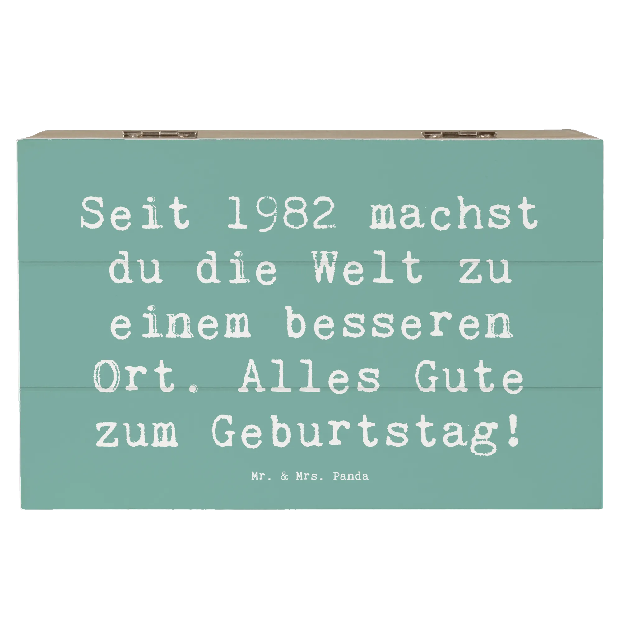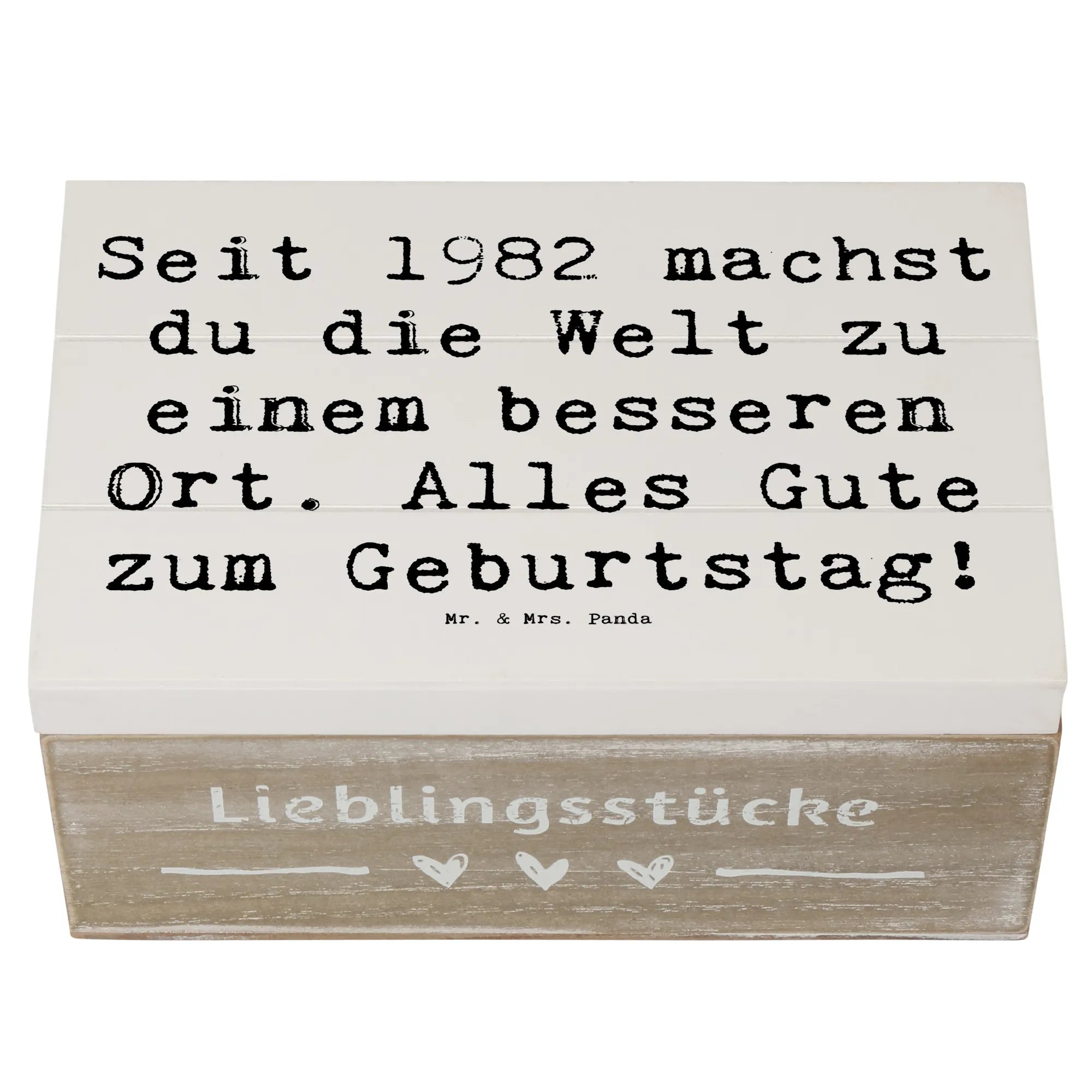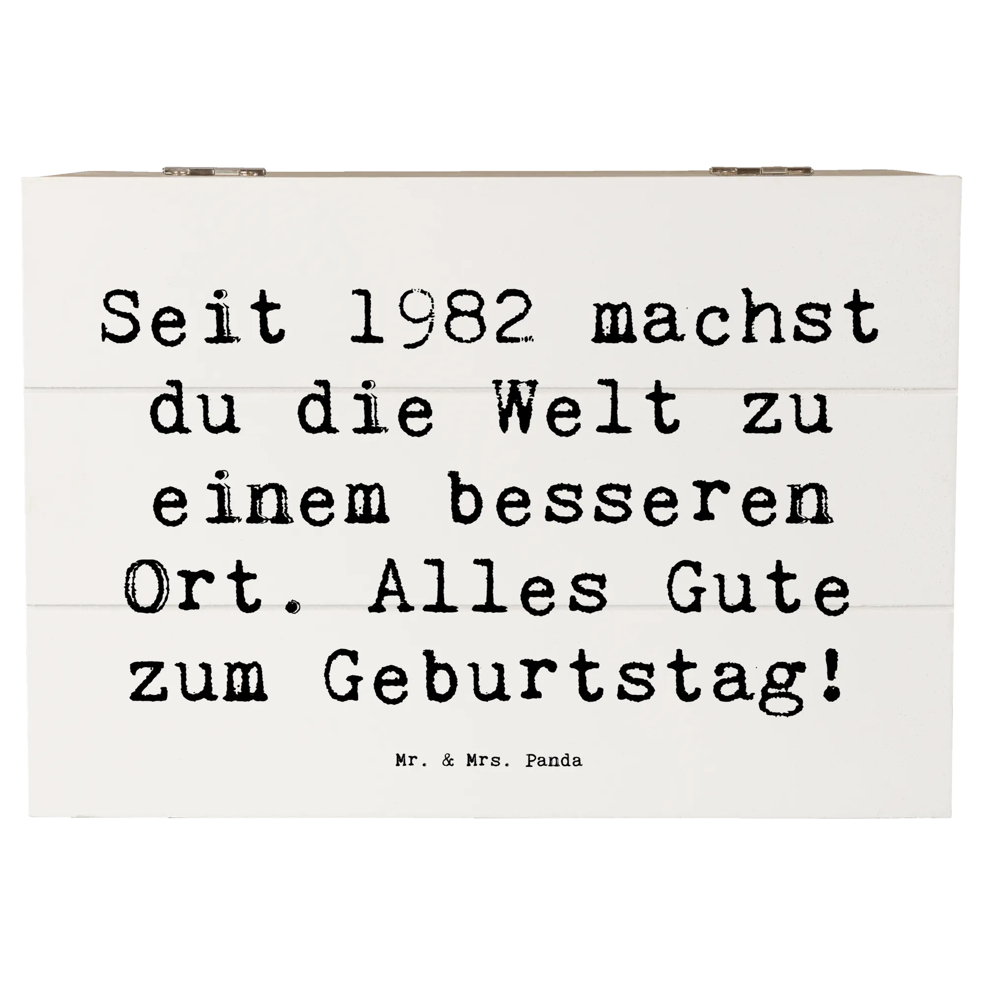 Die wunderschöne Holzkiste von Mr. & Mrs. Panda ist das perfekte Geschenk für alle, die im Jahr 1982 geboren wurden. Sie wurde mit viel Liebe entworfen und ist mit dem Spruch 'Seit 1982 machst du die Welt zu einem besseren Ort. Alles Gute zum Geburtstag!' versehen. Diese Erinnerungskiste ist nicht nur ein echter Hingucker, sondern auch äußerst praktisch. Ob als Aufbewahrungsort für besondere Schätze, als Dekokiste oder als originelle Geschenkbox, sie erfüllt viele Zwecke.
