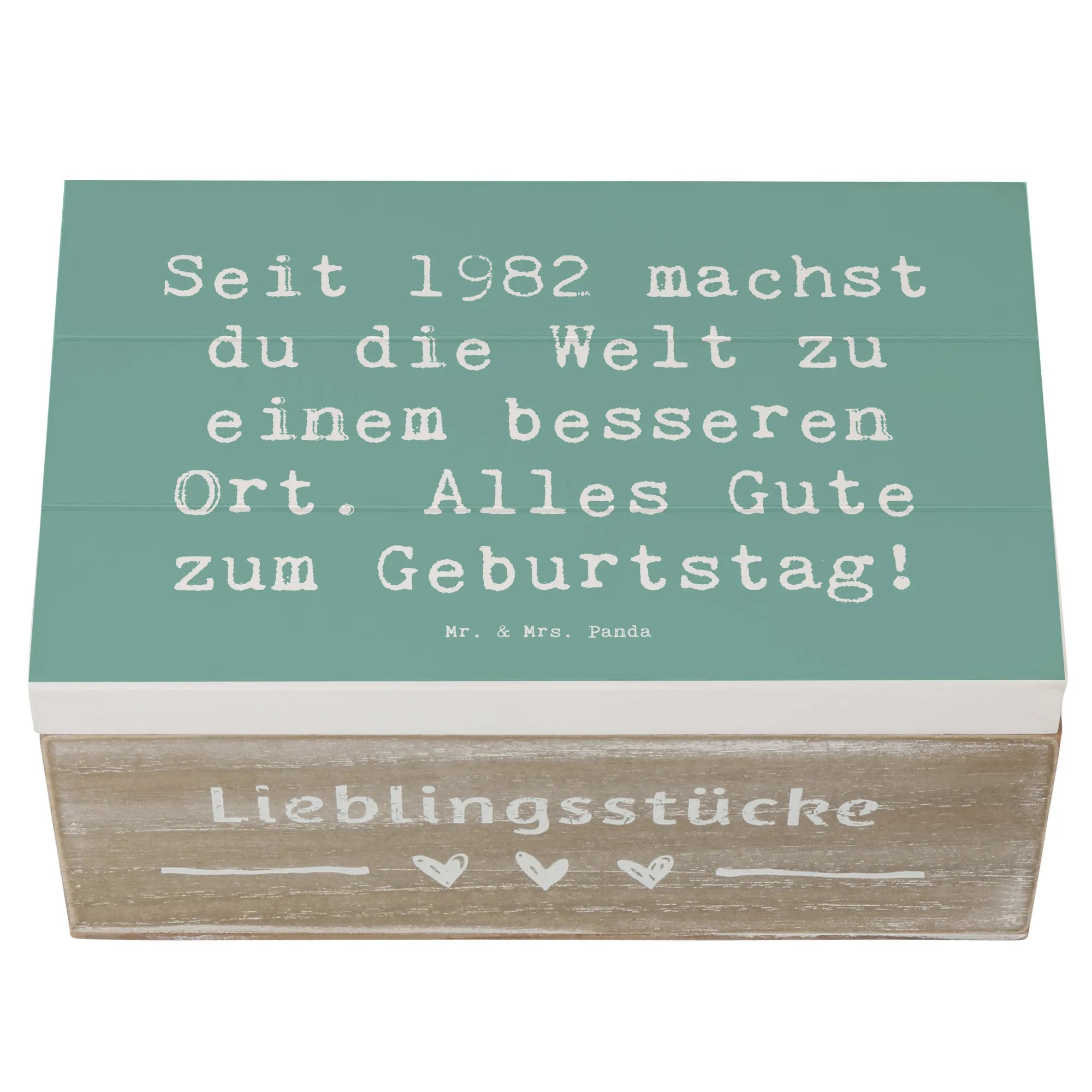 Die wunderschöne Holzkiste von Mr. & Mrs. Panda ist der perfekte Begleiter für jeden, der etwas Besonderes aufbewahren möchte! Ob für Deine Schätze, Erinnerungen oder kleine Geschenke, diese Erinnerungskiste ist nicht nur praktisch, sondern auch ein echter Blickfang. Mit dem liebevollen Motiv „1982 Geburtstag“ und dem fröhlichen Slogan „Seit 1982 machst du die Welt zu einem besseren Ort. Alles Gute zum Geburtstag!“ sorgt sie für ein Lächeln auf jedem Gesicht.