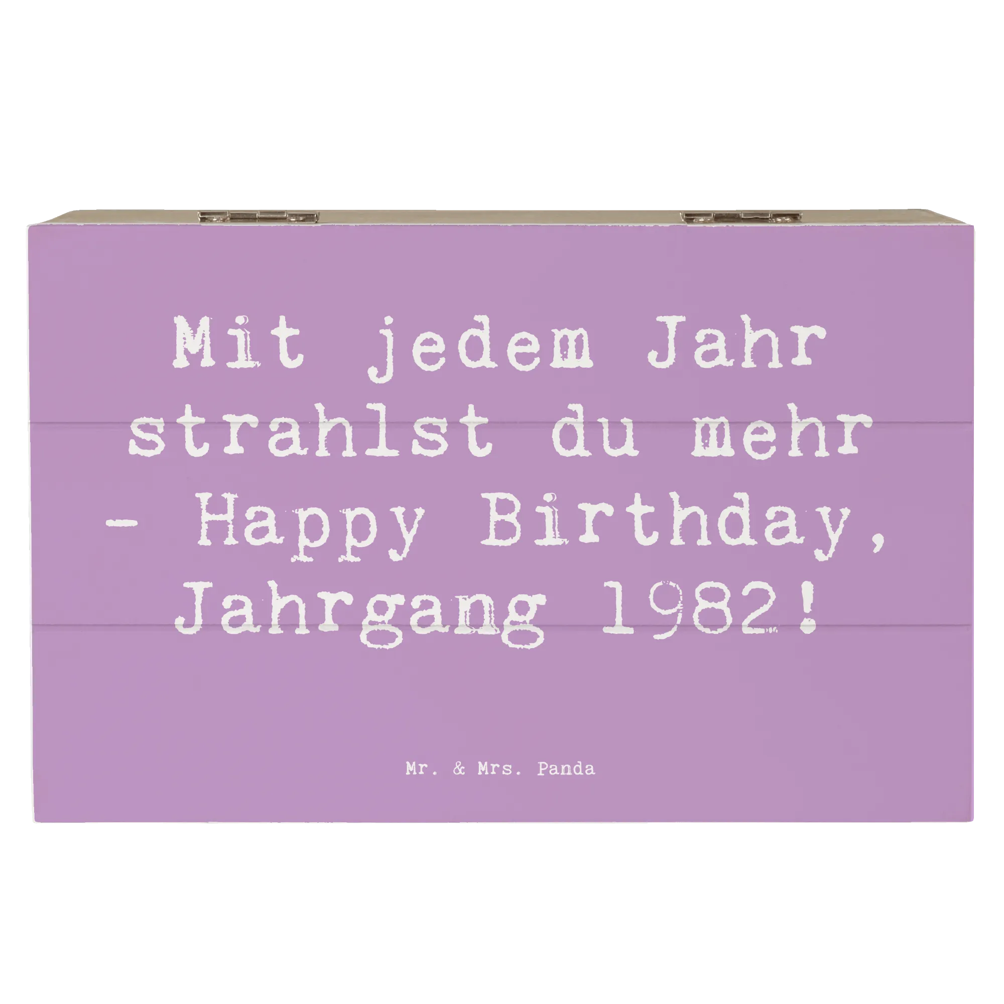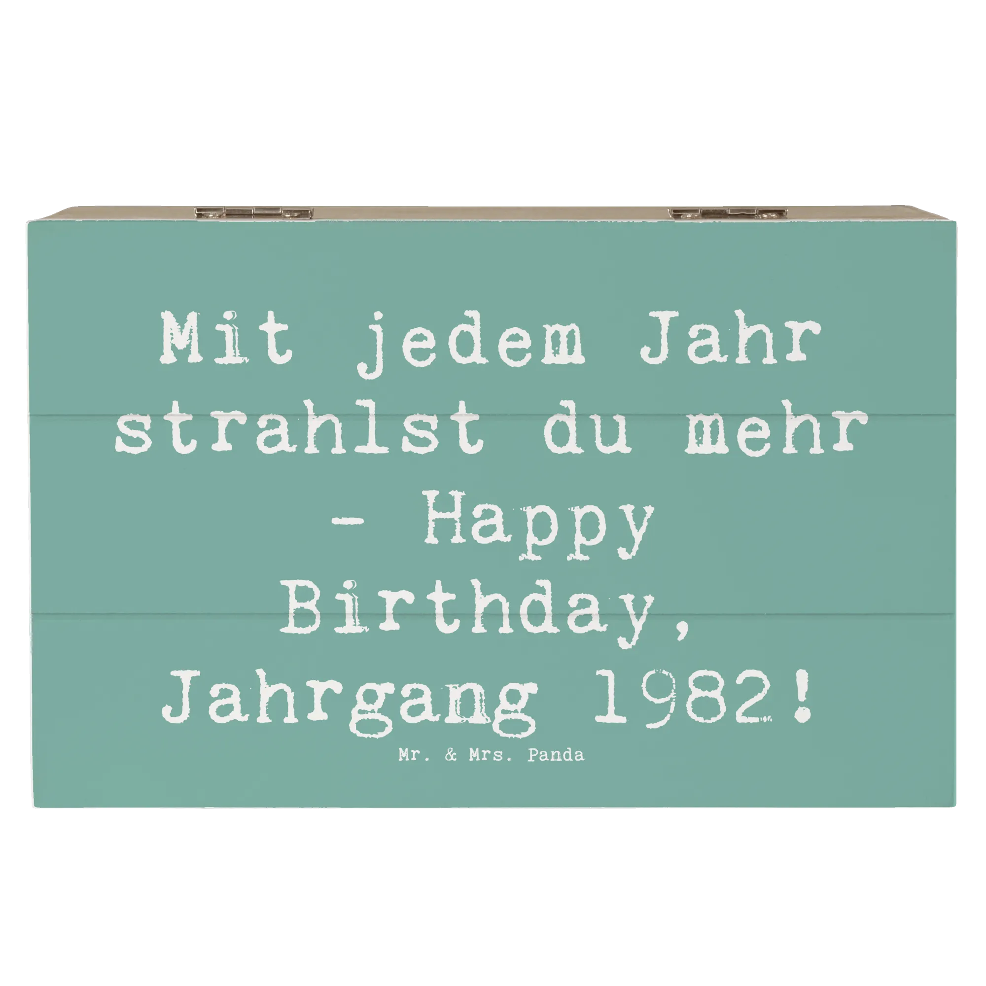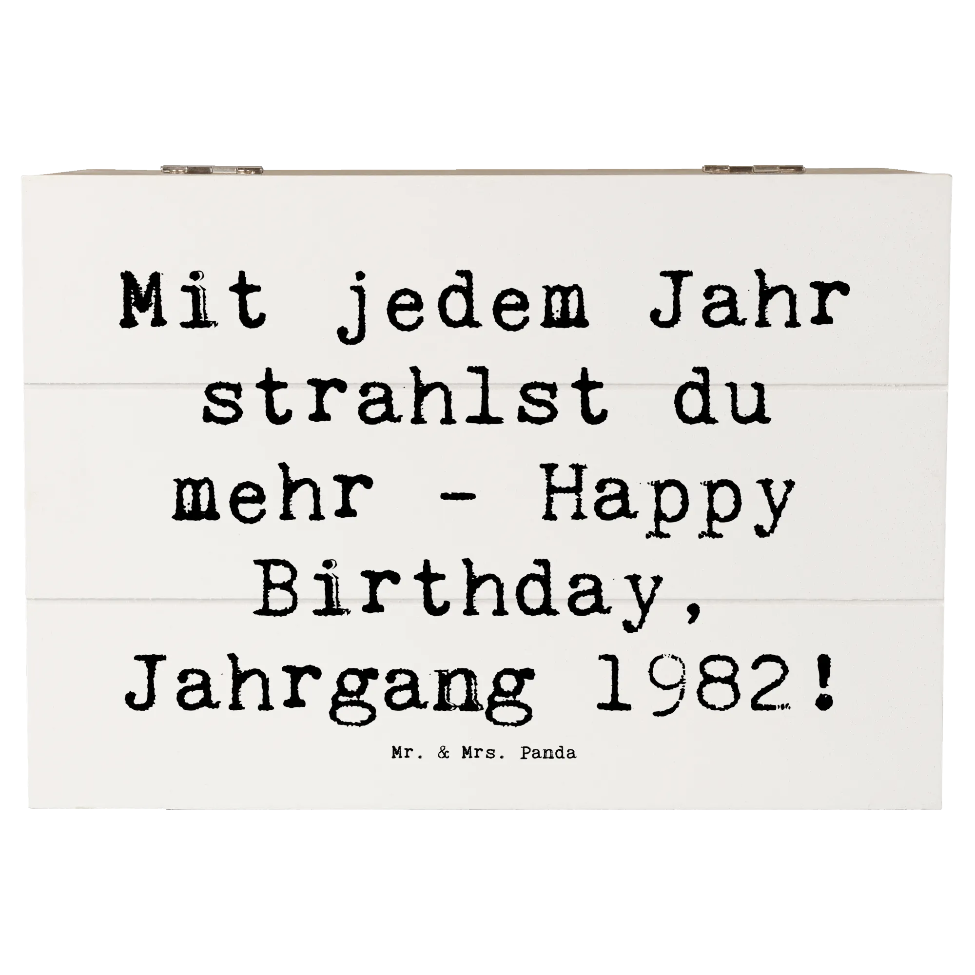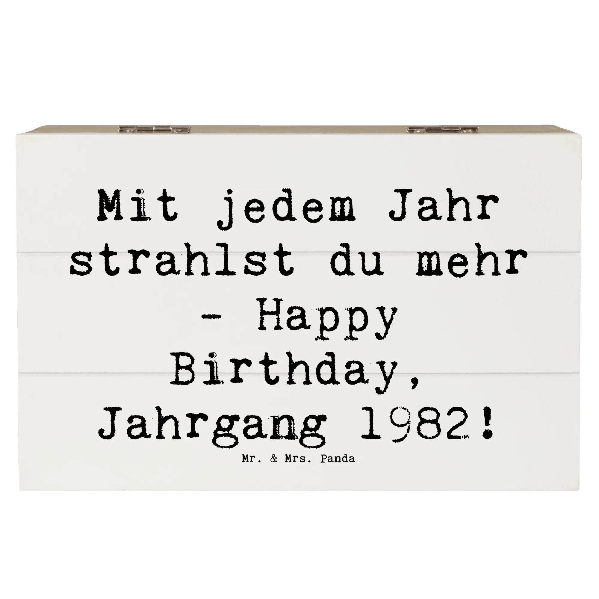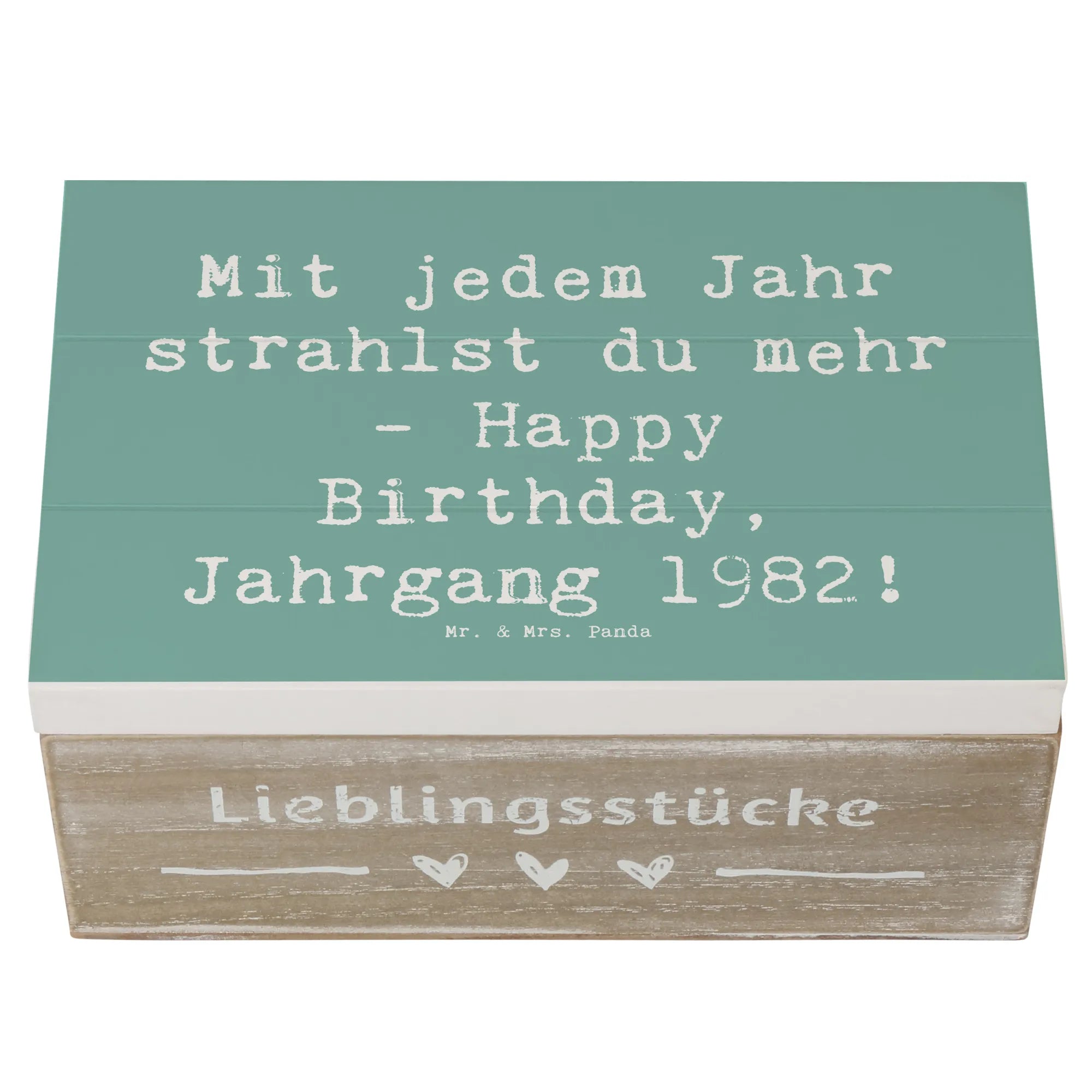 Diese wunderschöne Holzkiste von Mr. & Mrs. Panda ist das perfekte Geschenk für alle, die 1982 geboren wurden! Mit dem liebevollen Spruch "Mit jedem Jahr strahlst du mehr - Happy Birthday, Jahrgang 1982!" ist diese Erinnerungskiste ein ganz besonderer Schatz.