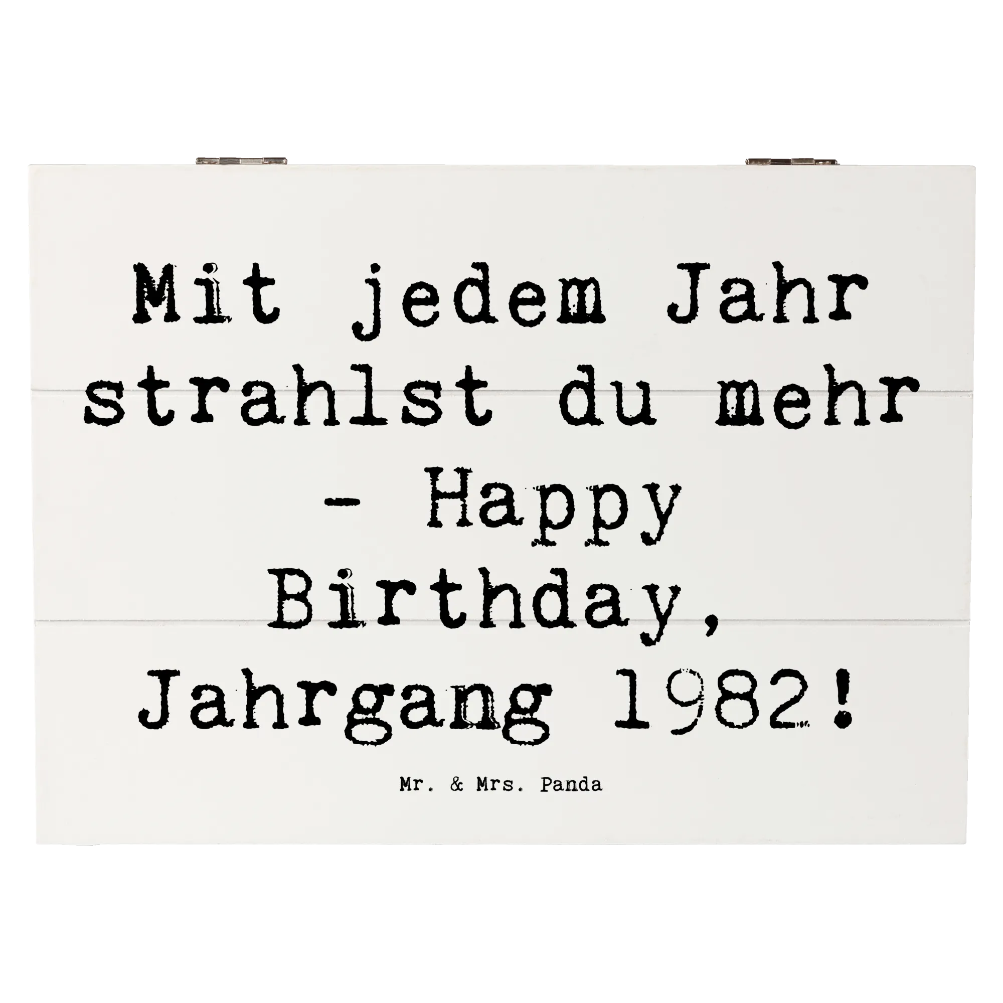 Die perfekte Geschenkidee für alle, die 1982 geboren wurden! Die wunderschöne Holzkiste von Mr. & Mrs. Panda ist nicht nur ein praktischer Aufbewahrungsort, sondern auch ein liebevolles Erinnerungsstück. Mit dem tollen Spruch „Mit jedem Jahr strahlst du mehr - Happy Birthday, Jahrgang 1982!“, zaubert sie jedem Geburtstagskind ein Lächeln ins Gesicht.