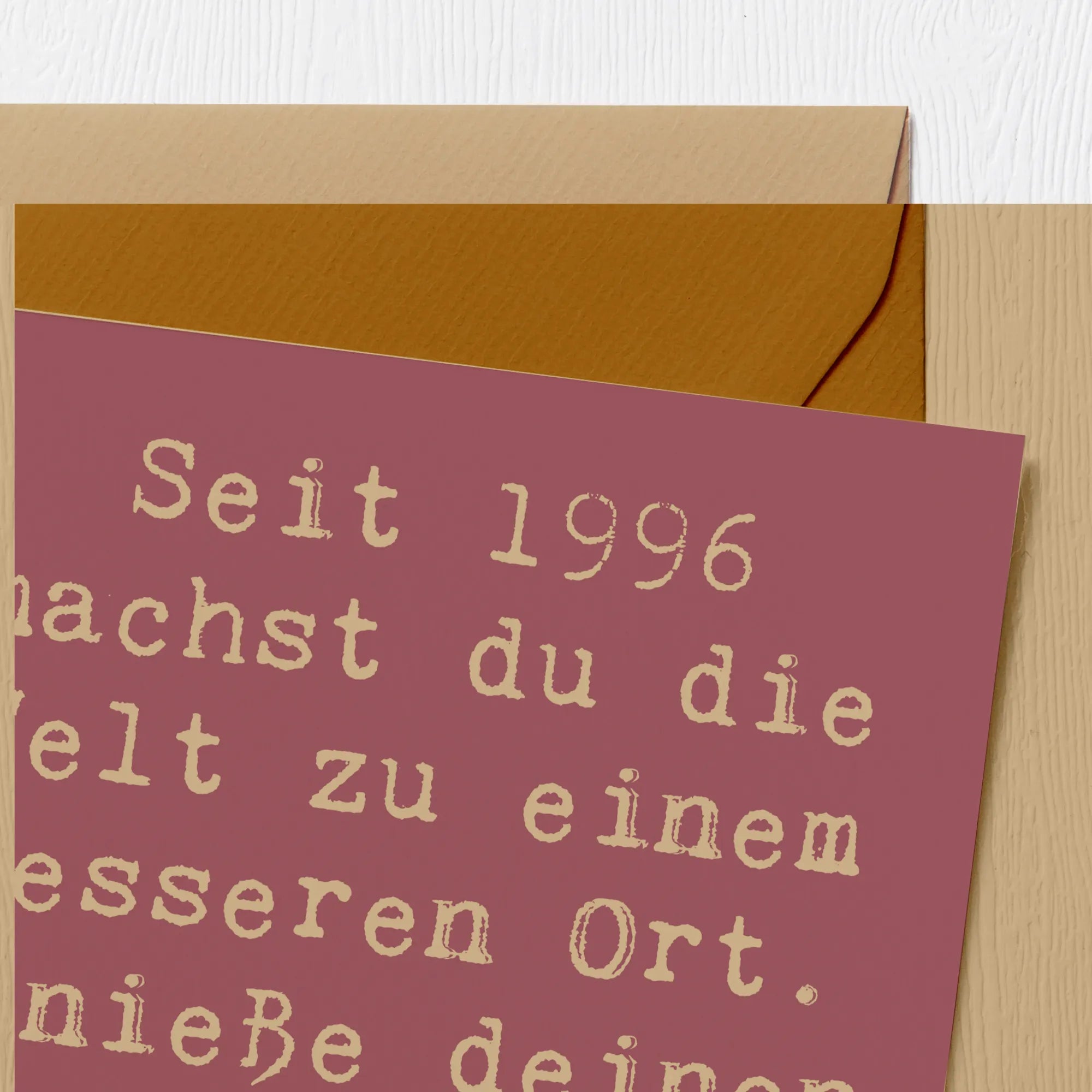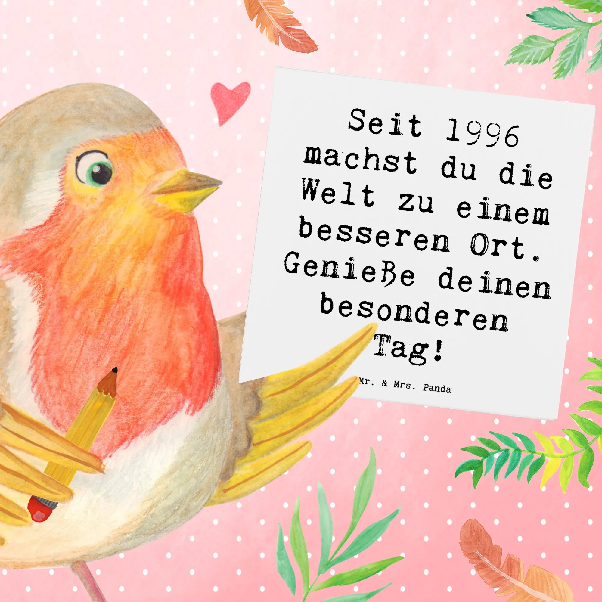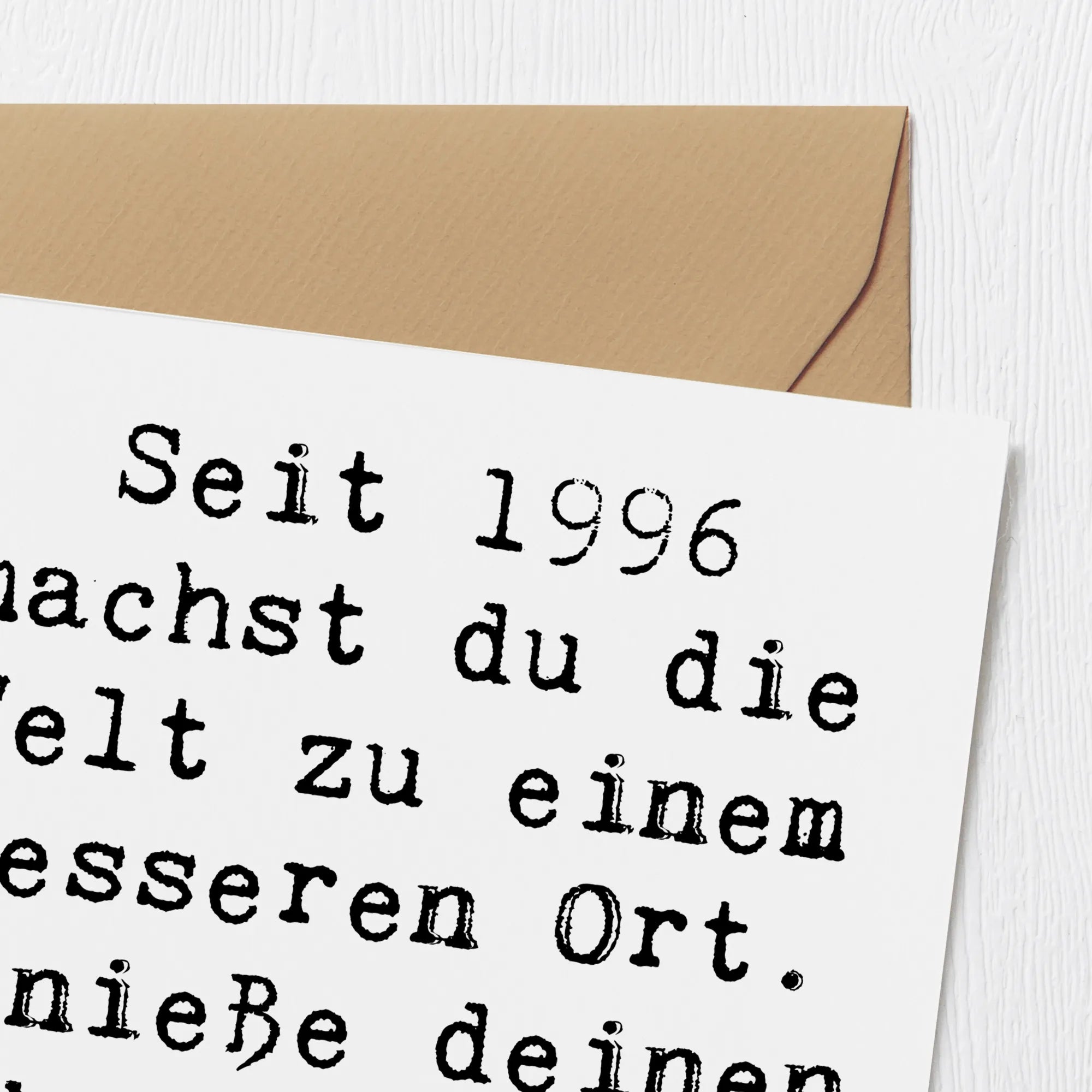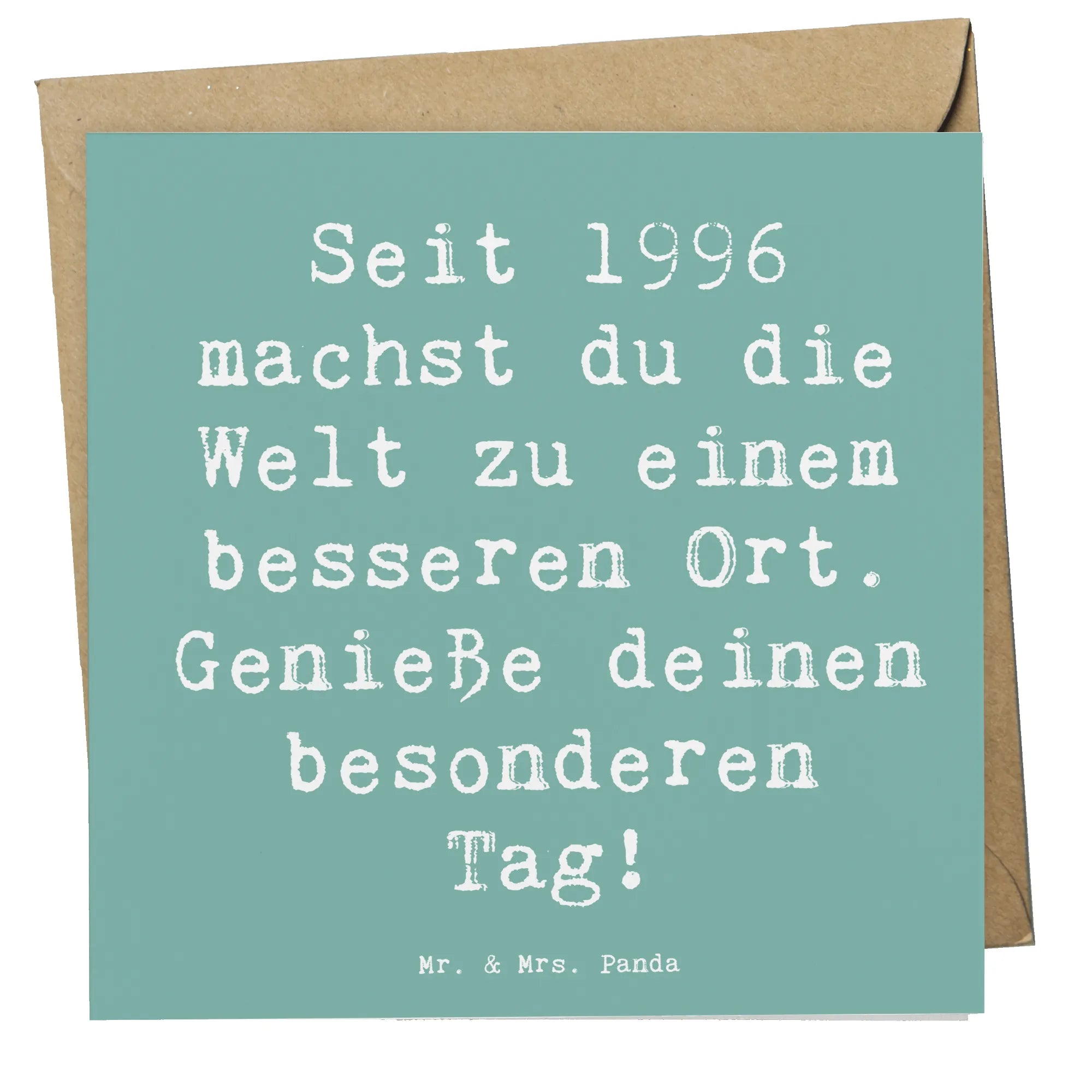 Der liebevolle Spruch "Seit 1996 machst du die Welt zu einem besseren Ort. Genieße deinen besonderen Tag!" verleiht der Karte eine persönliche Note, die den Empfänger garantiert erfreuen wird.