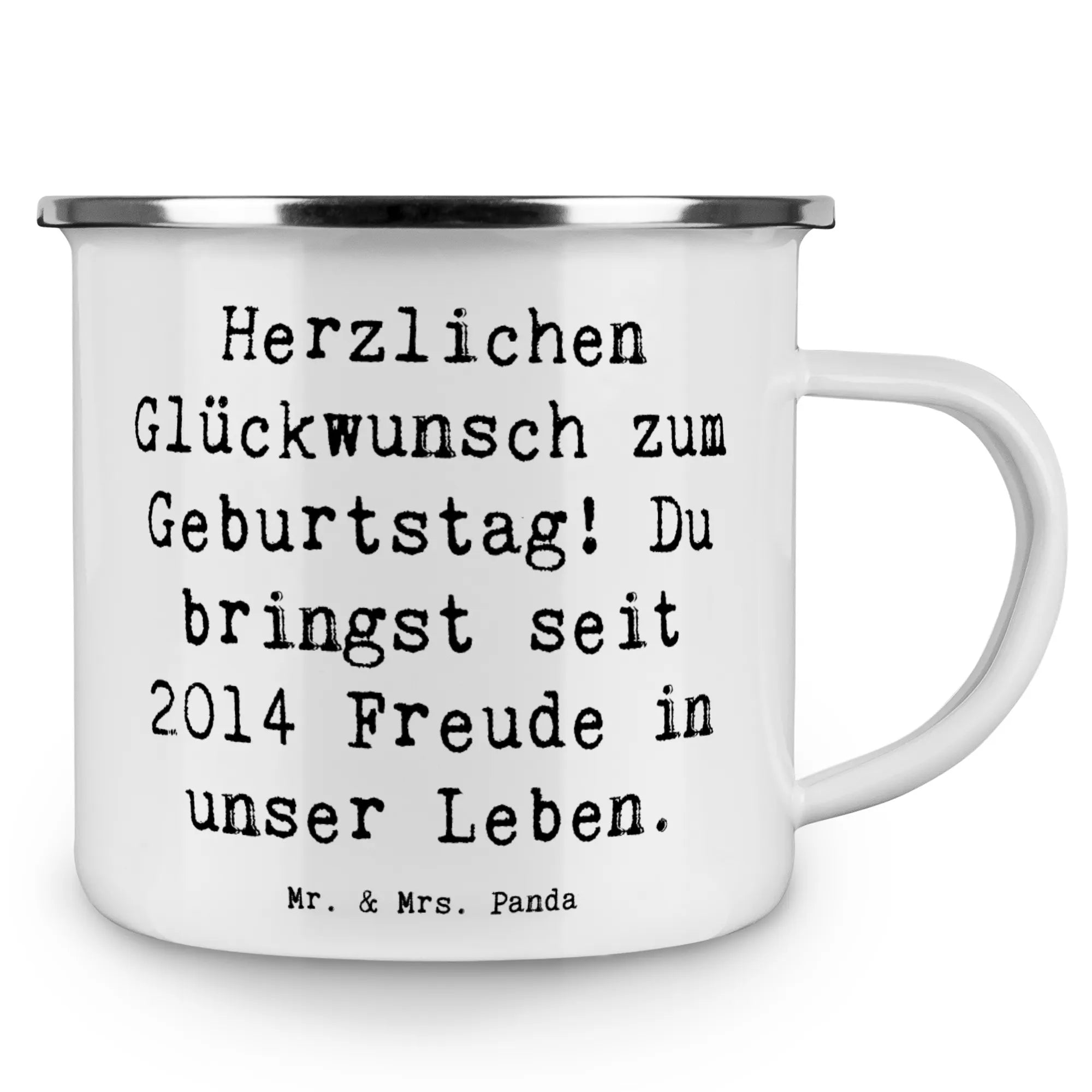 Die Camping Emaille Tasse von Mr. & Mrs. Panda mit dem besonderen Motiv "2014 Geburtstag" ist das perfekte Geschenk für all jene, die ihren Geburtstag lieben und unvergessliche Momente im Freien schätzen. Diese wunderschöne und beständige Metalltasse ist ideal für Campingausflüge oder entspannte Wanderungen in der Natur. Sie vereint nicht nur Funktionalität und Stil, sondern bringt auch Freude mit einem süßen Design. Egal, ob du heiße Getränke wie Kaffee oder kalte Erfrischungen genießt – die Tasse hält sie beide perfekt temperiert!