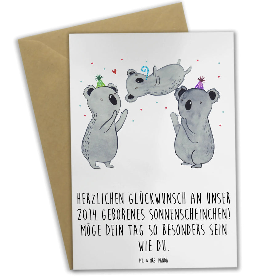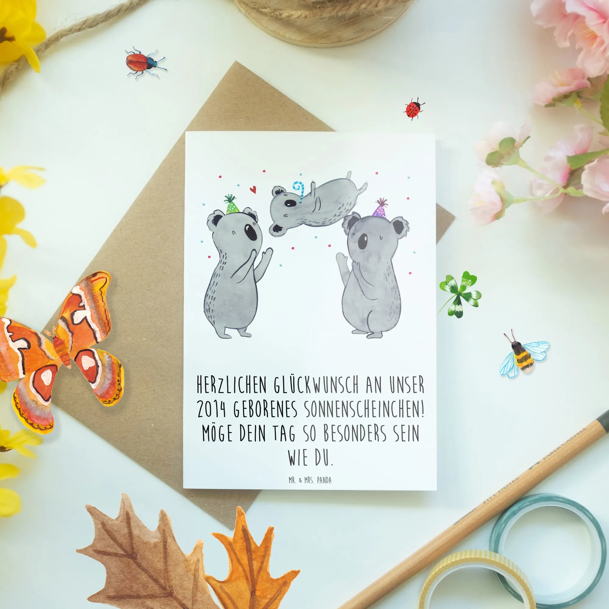 Herzlich Willkommen in der bunten Welt von Mr. & Mrs. Panda! Unsere wunderschöne Grußkarte zum Geburtstag, speziell für das Geburtsjahr 2014, ist das perfekte Geschenk für kleine Sonnenscheinchen! Egal ob für die liebe Tochter, den süßen Sohn, die Nichte oder den Neffen – mit dieser Karte bringst du garantiert ein Lächeln in ihr Gesicht!