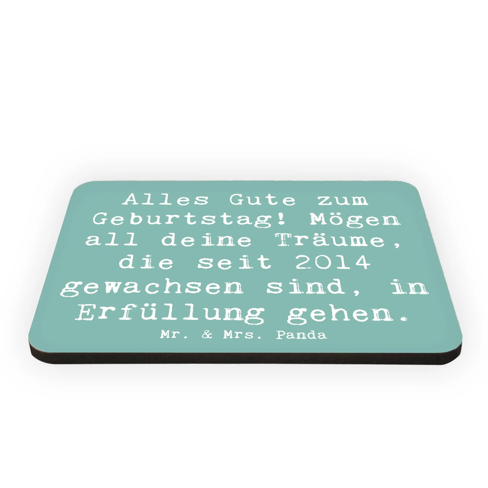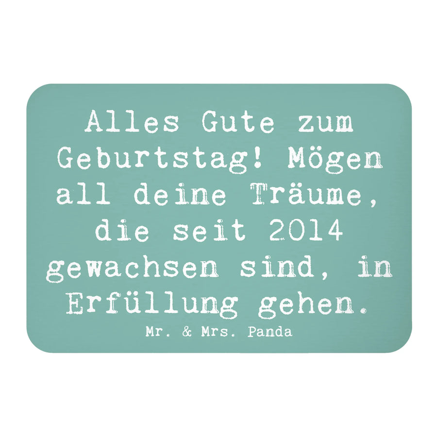 Entdecke den perfekten Kühlschrankmagneten von Mr. & Mrs. Panda, designt mit liebevollen Sprüchen und bunten Motiven für jeden Anlass! 🎉 Dieser Magnet aus feinem Holz ist die ideale Kühlschrankdekoration und ein wunderbares Geschenk. Besonders zur Geburtstagsfeier ist der Magnet mit dem Slogan "Alles Gute zum Geburtstag! Mögen all deine Träume, die seit 2014 gewachsen sind, in Erfüllung gehen." ein Highlight.