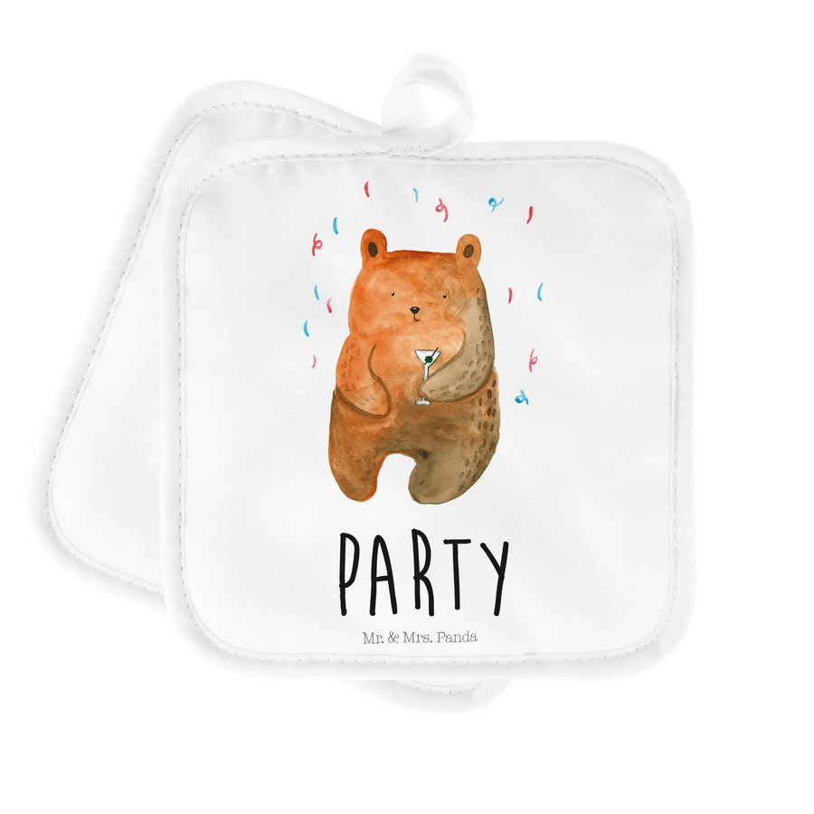 2er Set Topflappen Bär Party - mit Spruch - Weiß