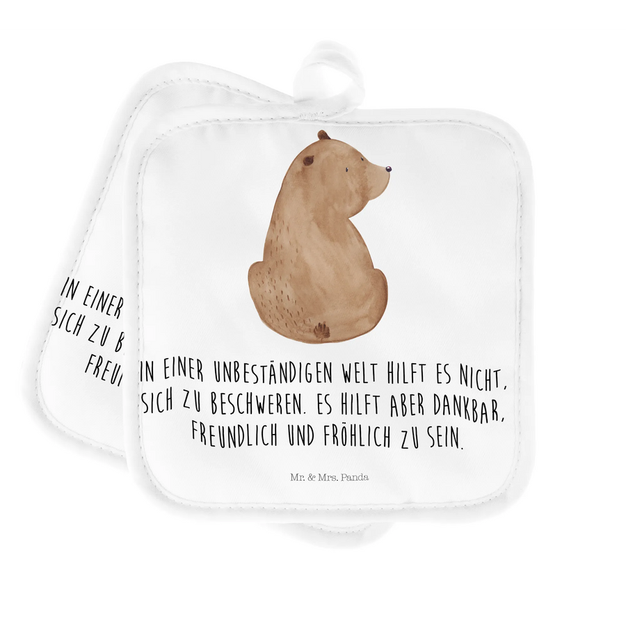 2er Set Topflappen Bär Schulterblick - mit Spruch - Weiß