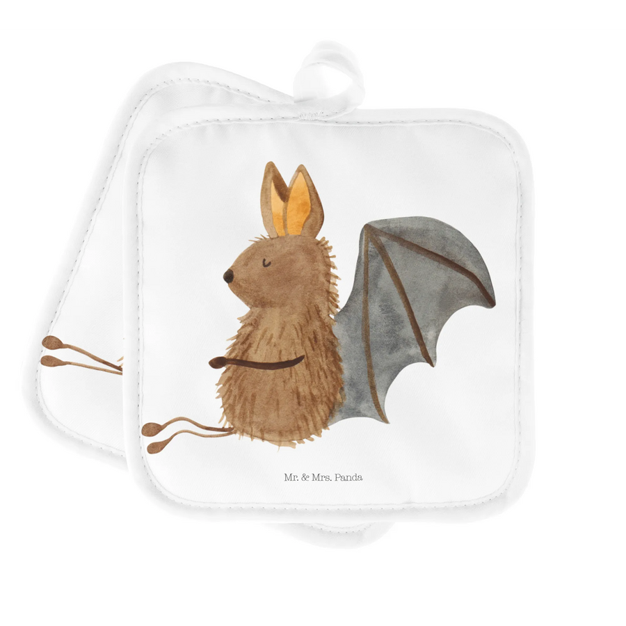2er Set Topflappen Fledermaus Sitzen - ohne Spruch - Weiß