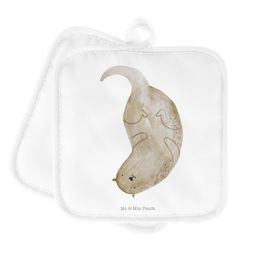 Entdecke das perfekte Geschenk für alle Otter-Liebhaber – unser 2er Set Topflappen mit dem süßen Motiv "Otter kopfüber" aus der Otter-Kollektion von Mr. & Mrs. Panda!