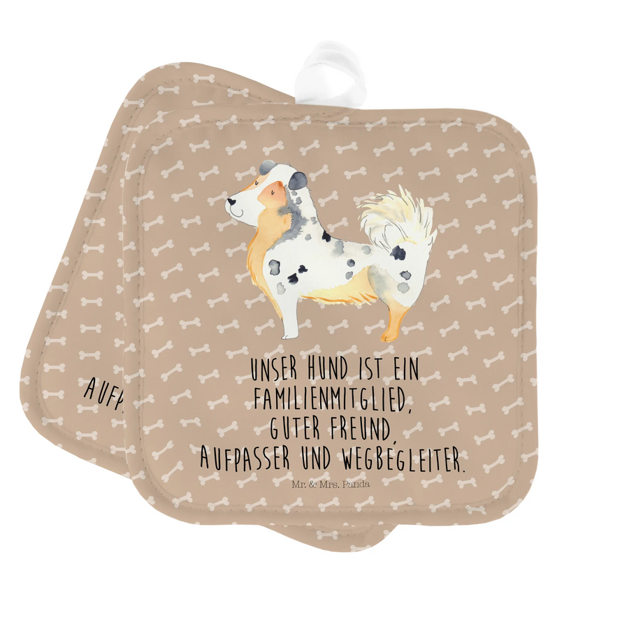 Topflappen Hund Australien Shepherd - mit Spruch - Hundeglück