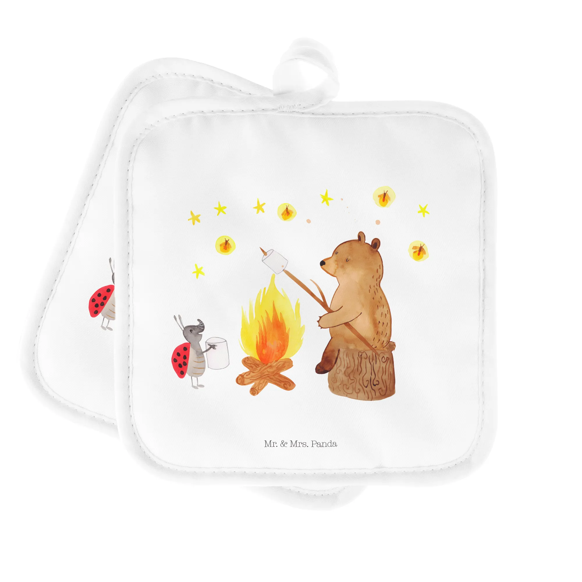 2er Set Topflappen Bär & Marienkäfer Lagerfeuer - mit Spruch