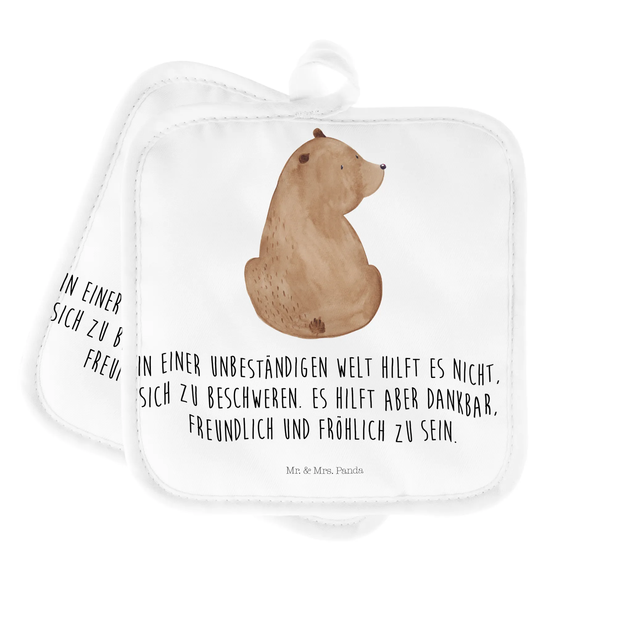 Entdecke die zauberhaften 2er Set Topflappen mit dem niedlichen Motiv 'Bär Schulterblick' aus der Bär Kollektion von Mr. & Mrs. Panda! Diese topaktuellen Topflappen sind nicht nur praktisch, sondern bringen auch ein Lächeln in Deine Küche. Der süße Bär, der verschmitzt über seine Schulter schaut, erinnert uns daran, in einer unbeständigen Welt wertschätzend, freundlich und fröhlich zu sein.