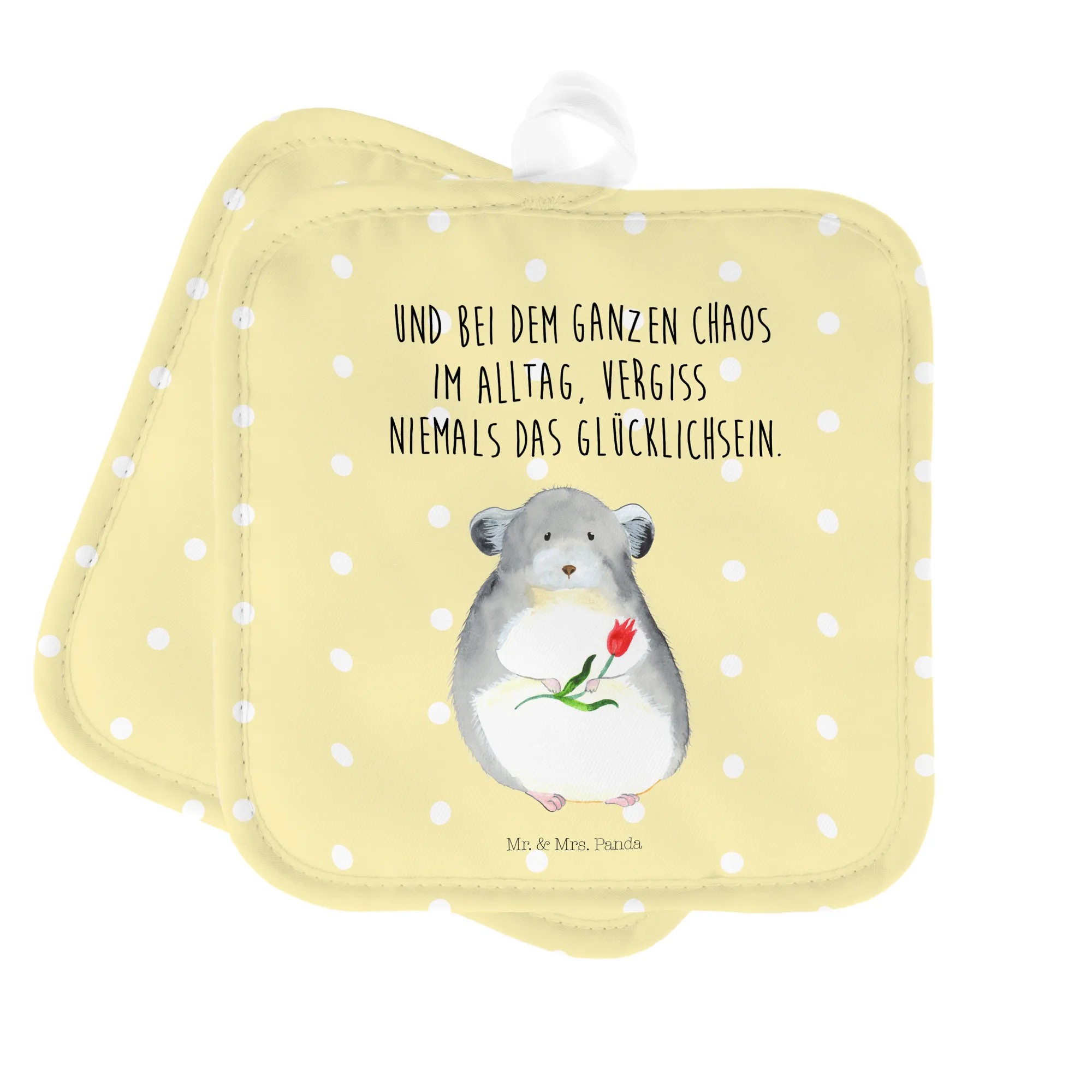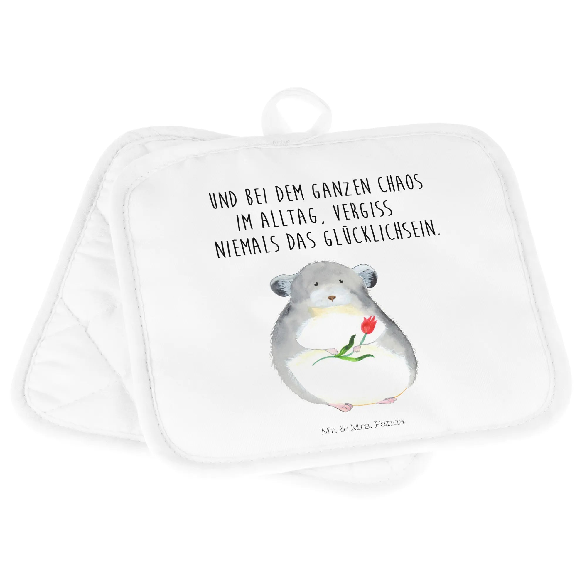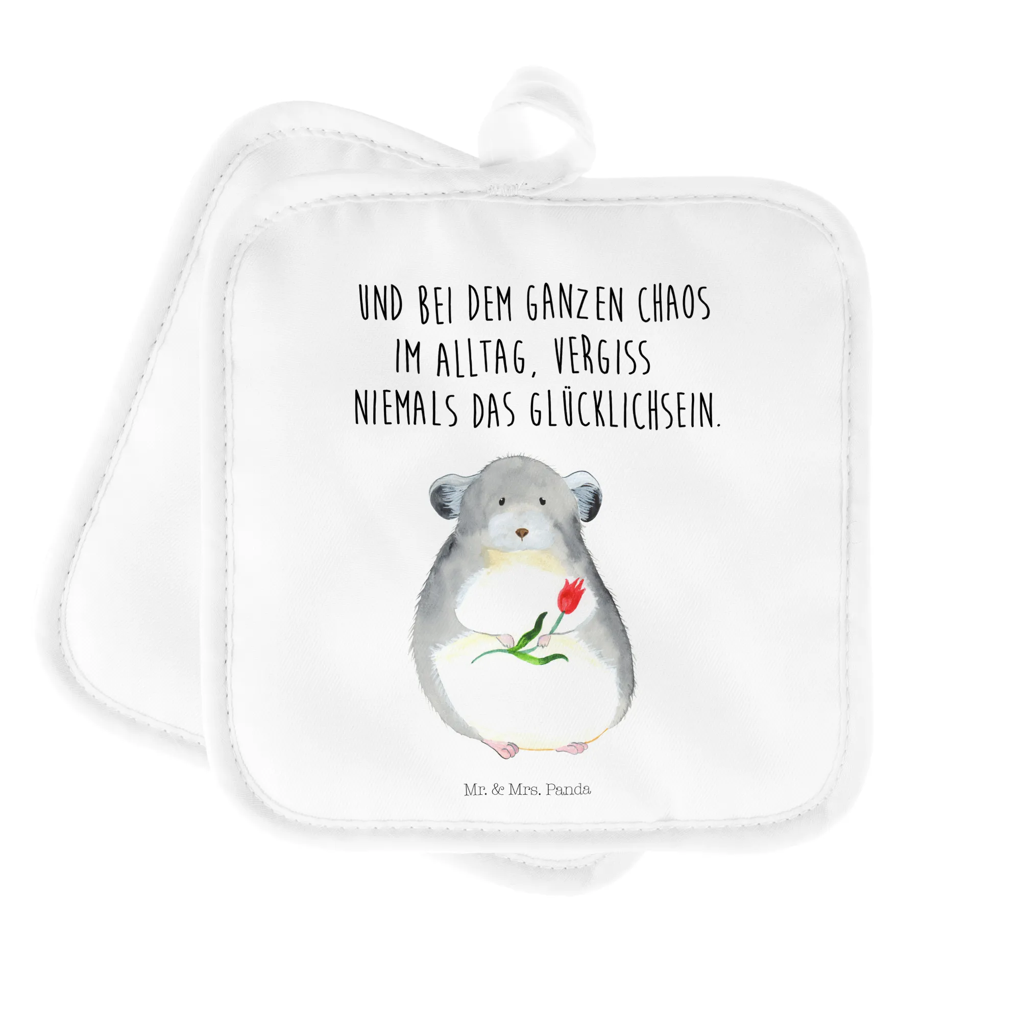 Verschenke ein Lächeln in der Küche! Unser 2er Set Topflappen „Chinchilla mit Blume" aus der Small World Kollektion von Mr. & Mrs. Panda verbindet praktische Funktion mit zauberhafter Optik. Das süße Chinchilla-Motiv hält eine Blume und wird von dem liebevollen Spruch begleitet: „Und bei dem ganzen Chaos im Alltag, vergiss niemals das Glücklichsein." 🌸