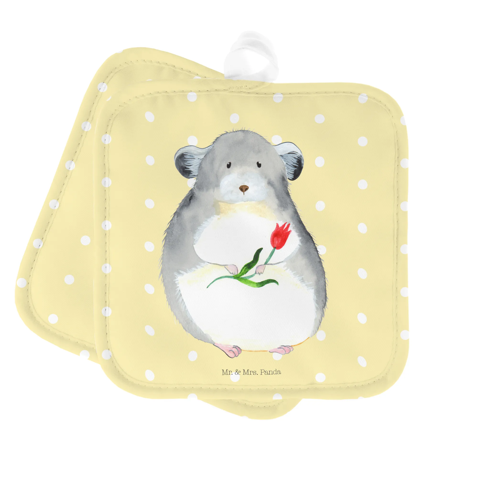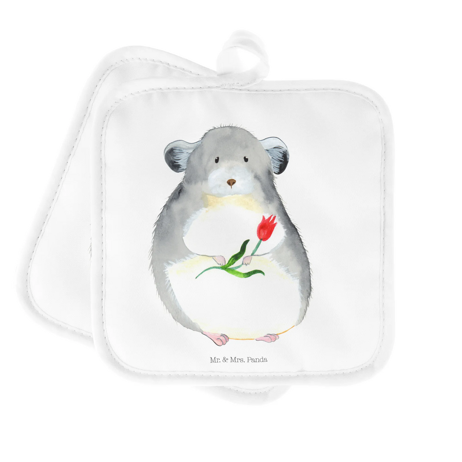 Zweier-Set Topflappen „Chinchilla mit Blume" – Small World Kollektion von Mr. & Mrs. Panda