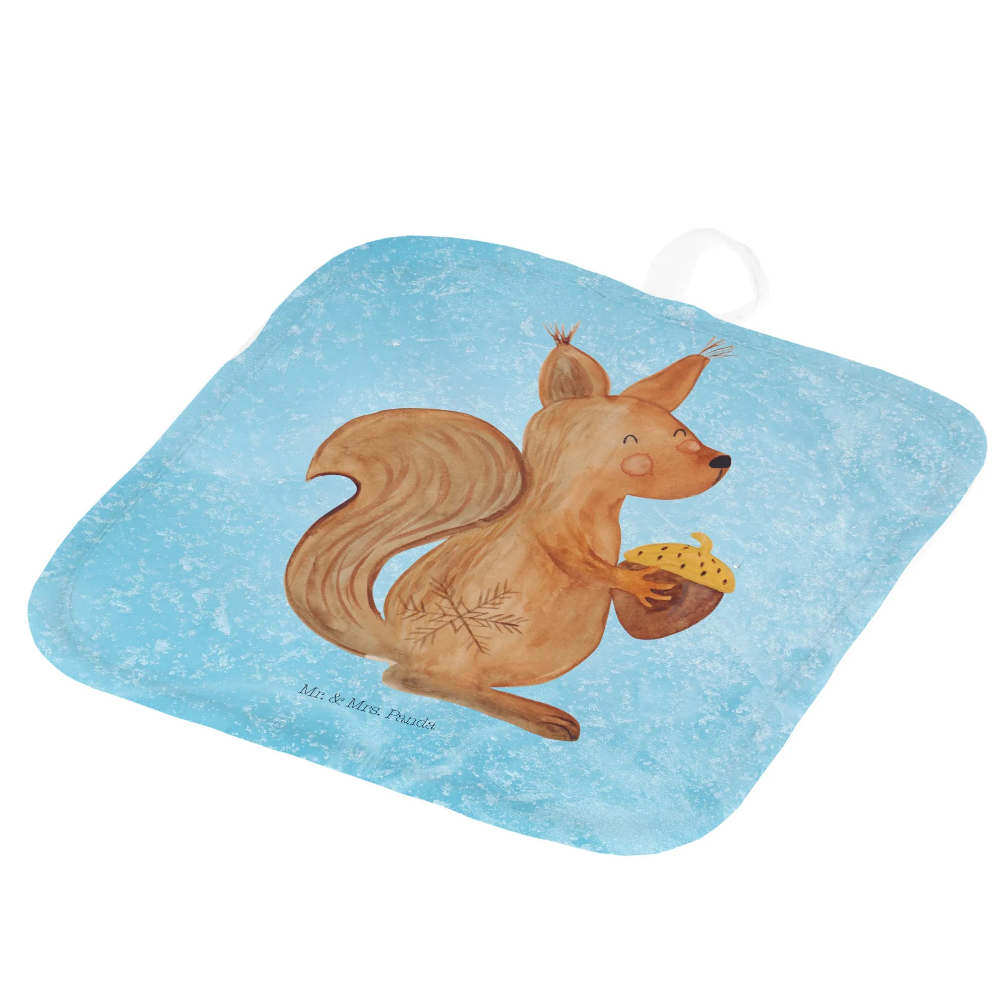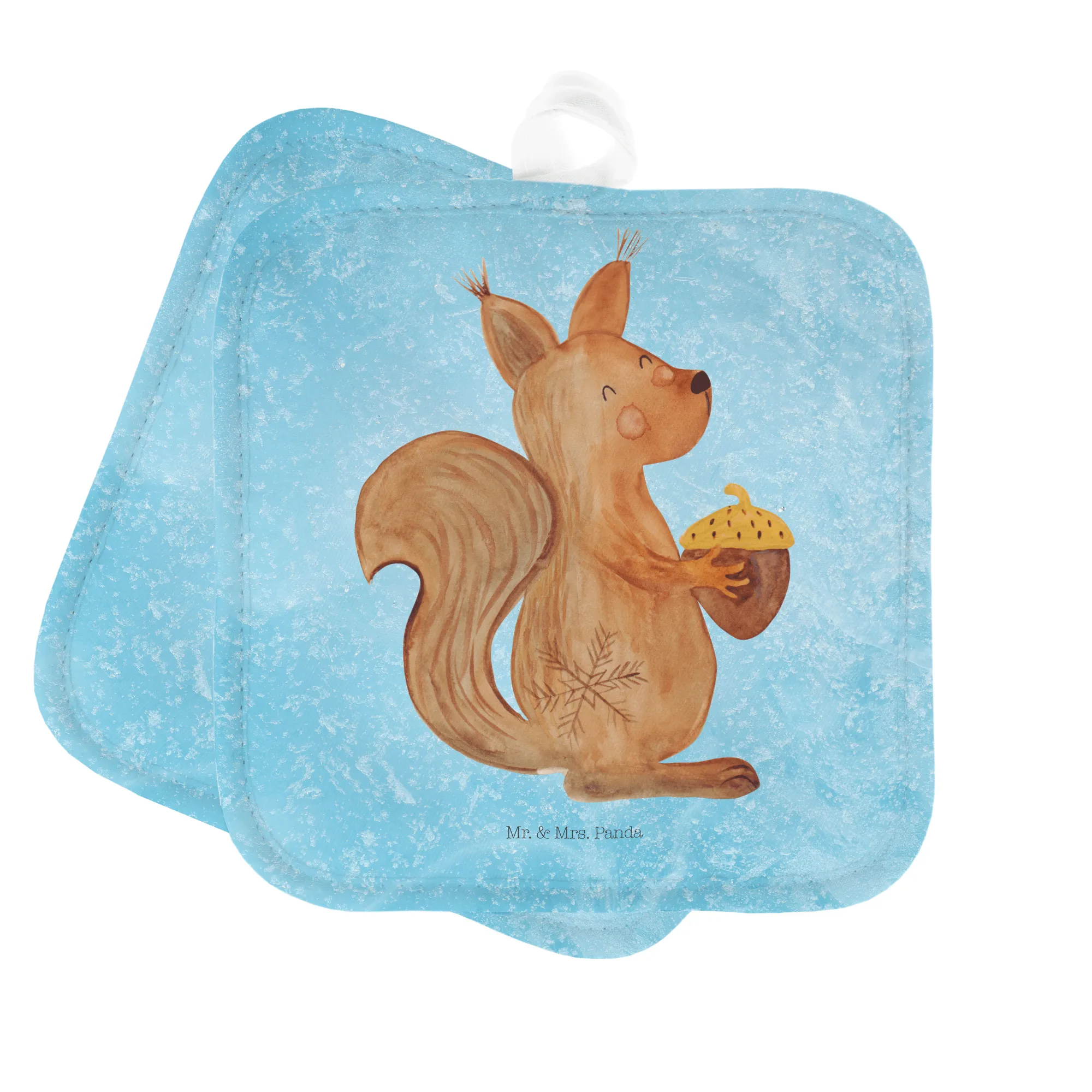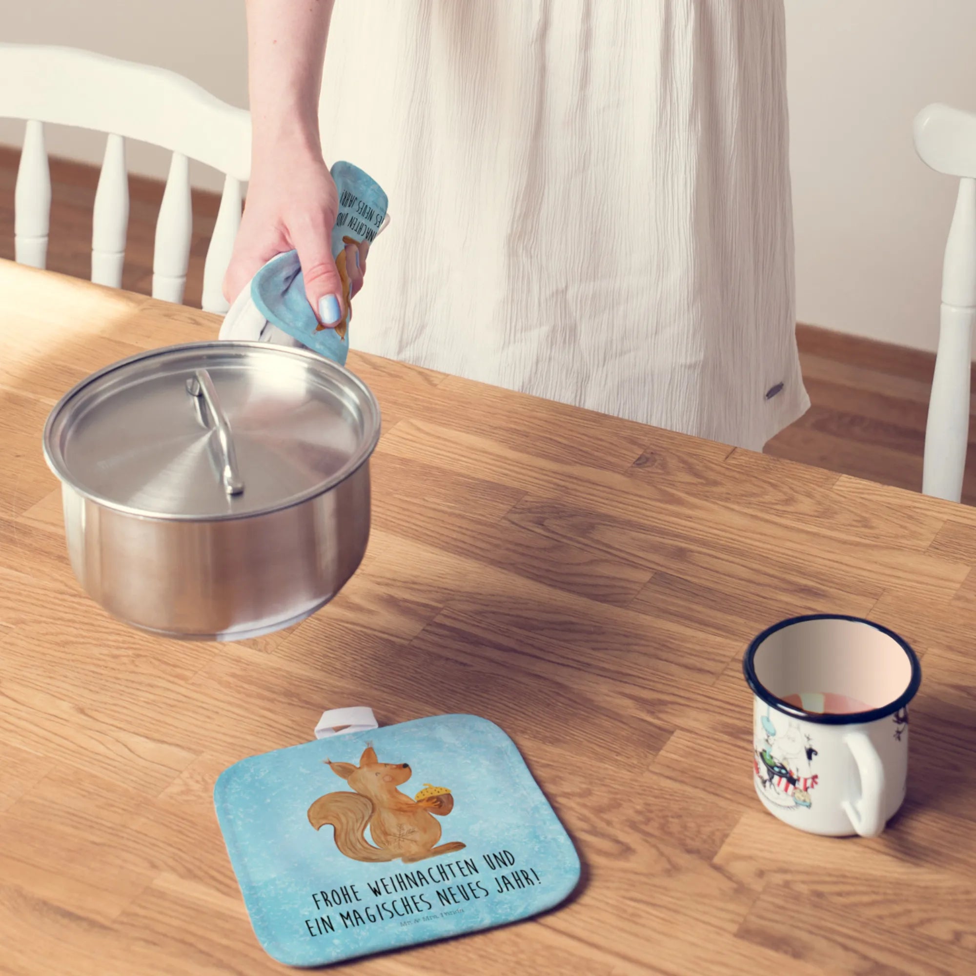2er Set Topflappen Eichhörnchen Weihnachtszeit - mit Spruch - Eisblau