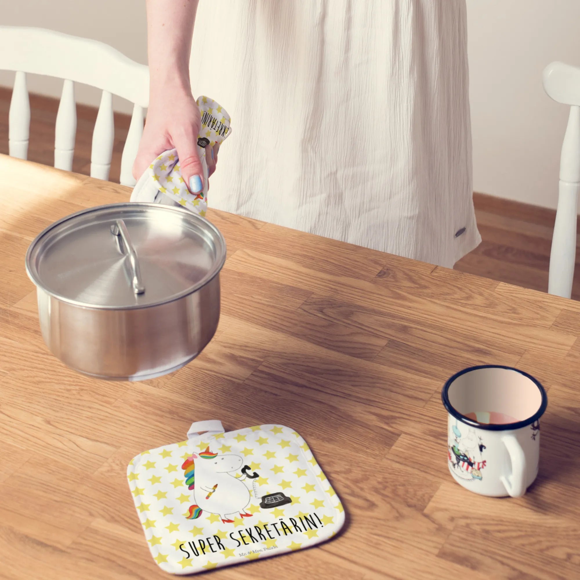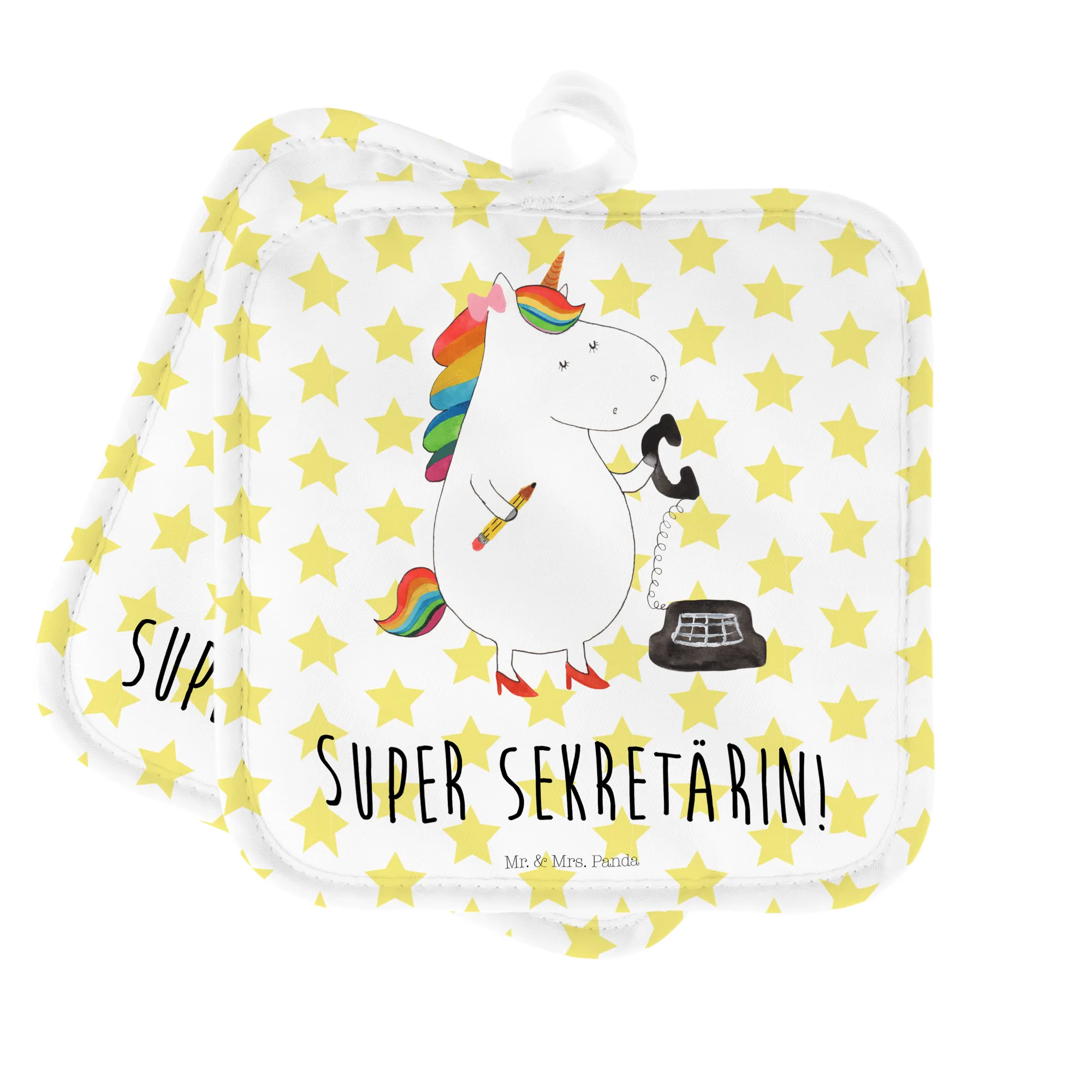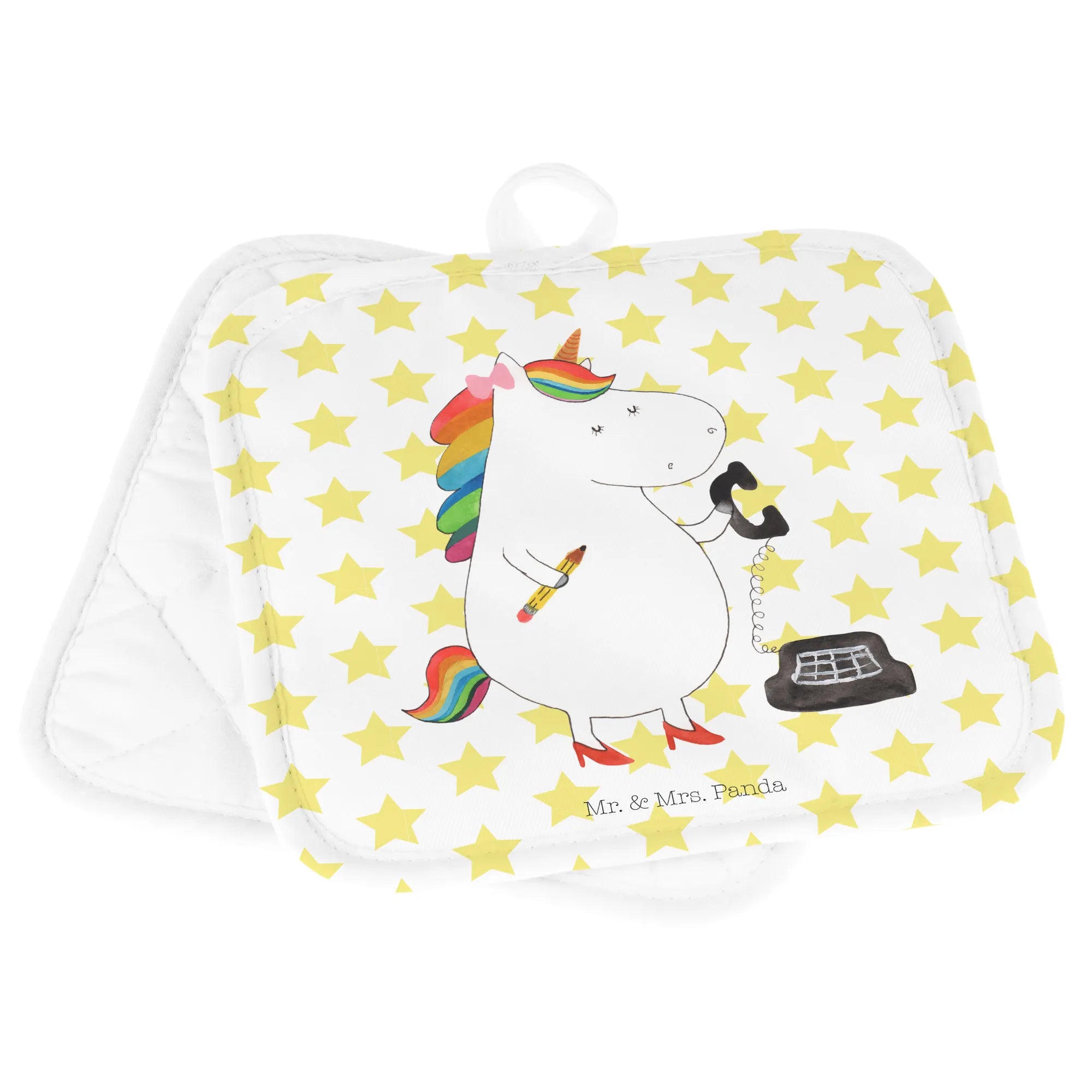 Entdecke die zauberhaften Mr. & Mrs. Panda Topflappen im 2er Set mit dem liebevollen Motiv "Einhorn Sekretärin"! Diese einzigartigen Topflappen sind perfekt für alle, die die magische Welt der Einhörner lieben und gleichzeitig stilvolle Küchenhelfer suchen.