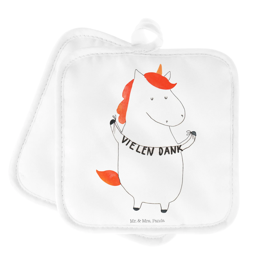 2er Set Topflappen Einhorn Dankeschön - mit Spruch - Weiß