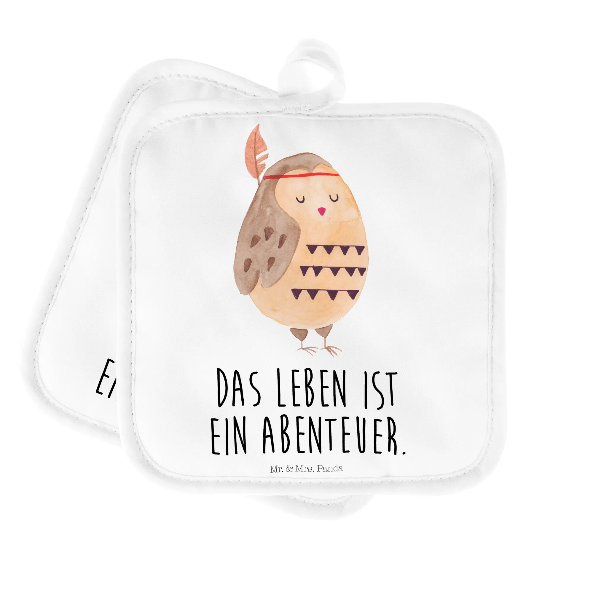 Entdecke die zauberhaften 2er Set Topflappen mit dem süßen Eulenmotiv von Mr. & Mrs. Panda! Diese hochwertig bedruckten Topflappen sind nicht nur ein praktisches Küchenutensil, sondern auch ein echter Blickfang in Deiner Küche. Mit dem Spruch 'Das Leben ist ein Abenteuer' zaubern sie jedem beim Kochen ein Lächeln ins Gesicht. Die Eule steht dabei pulsierend und fröhlich da, während sie mit ihrer Feder das Design perfekt ergänzt.