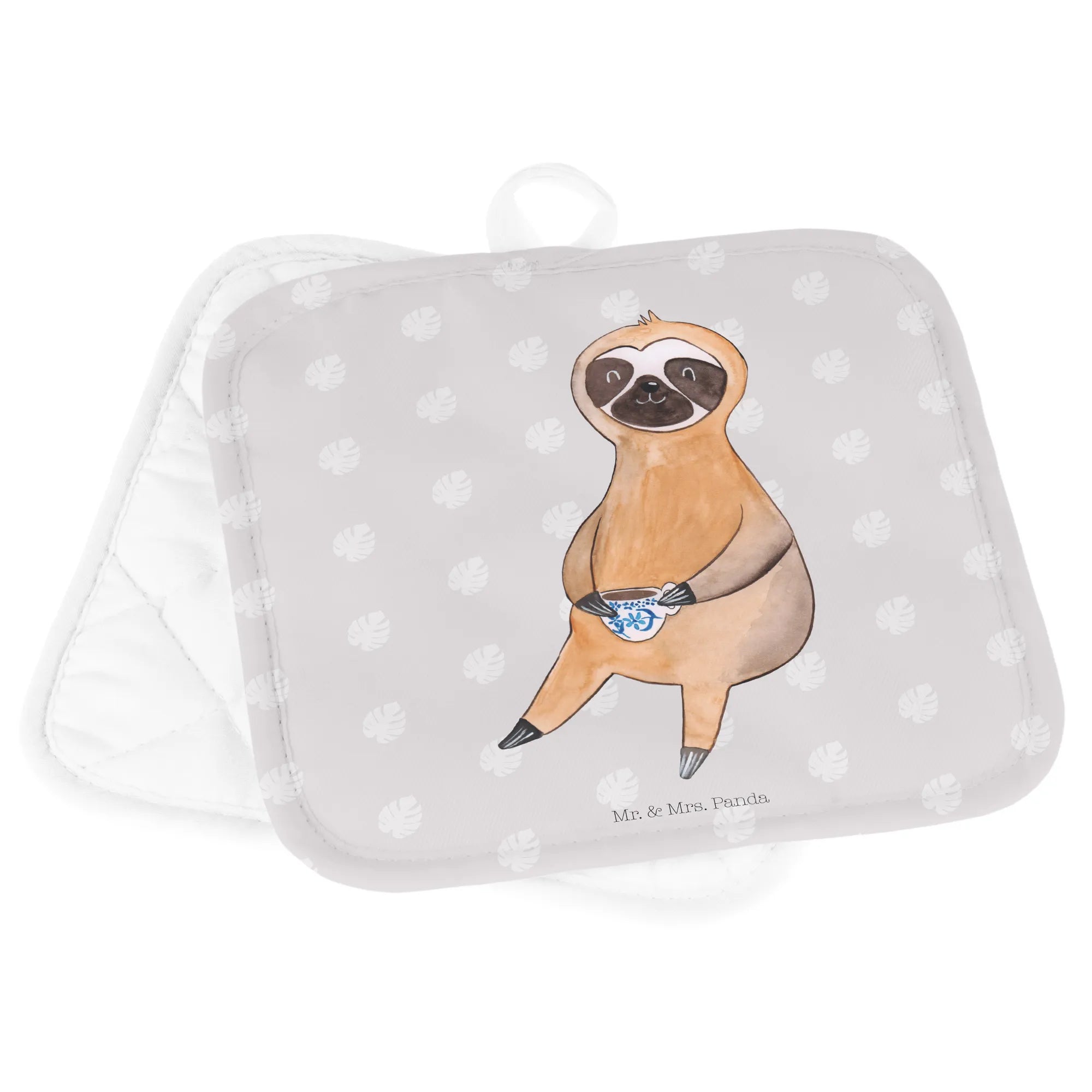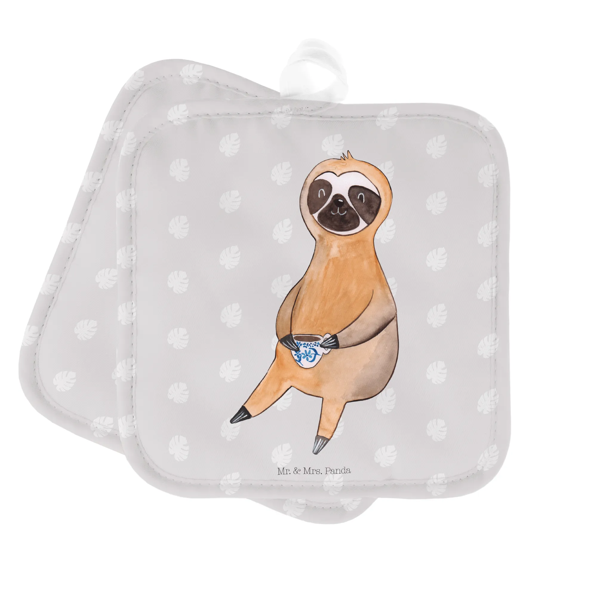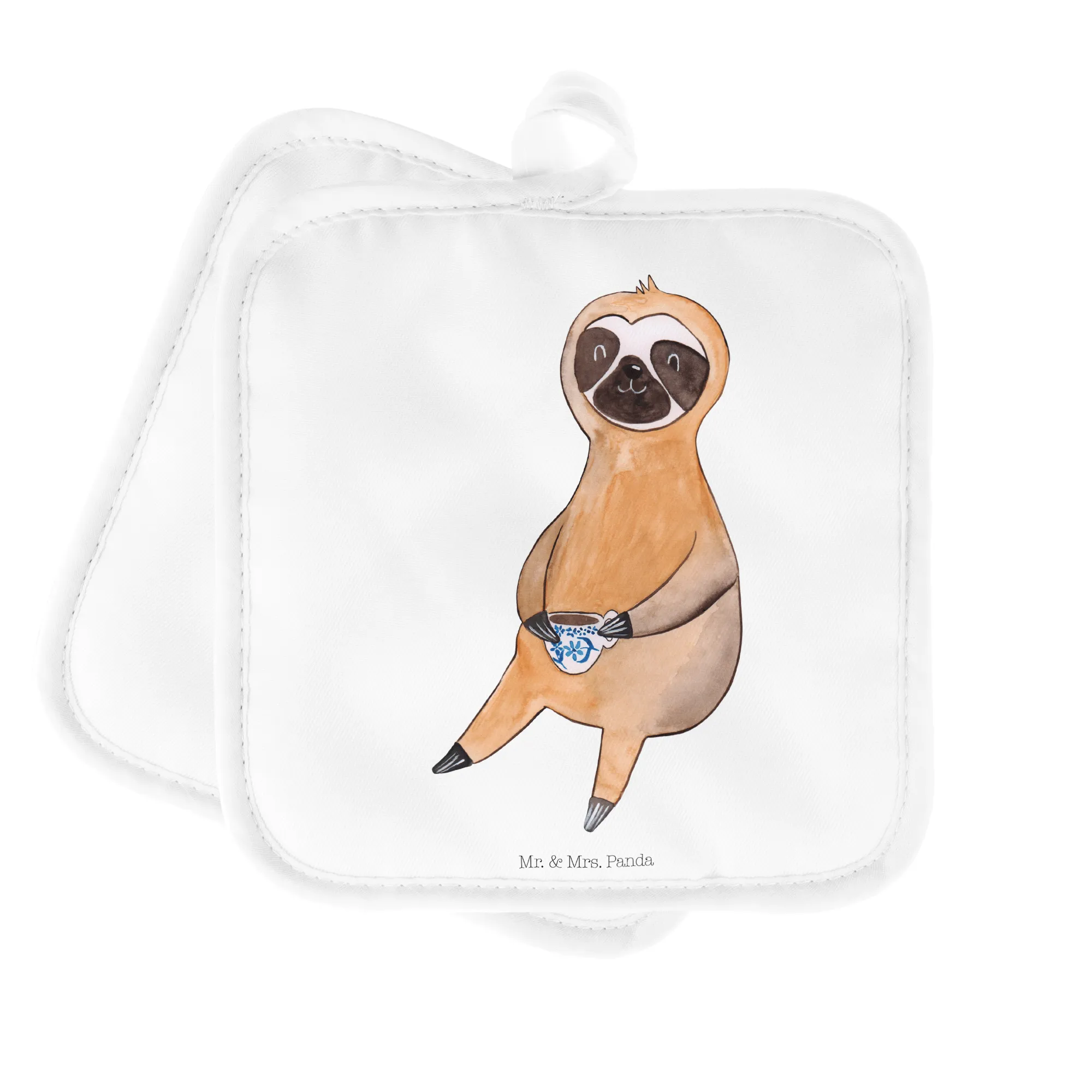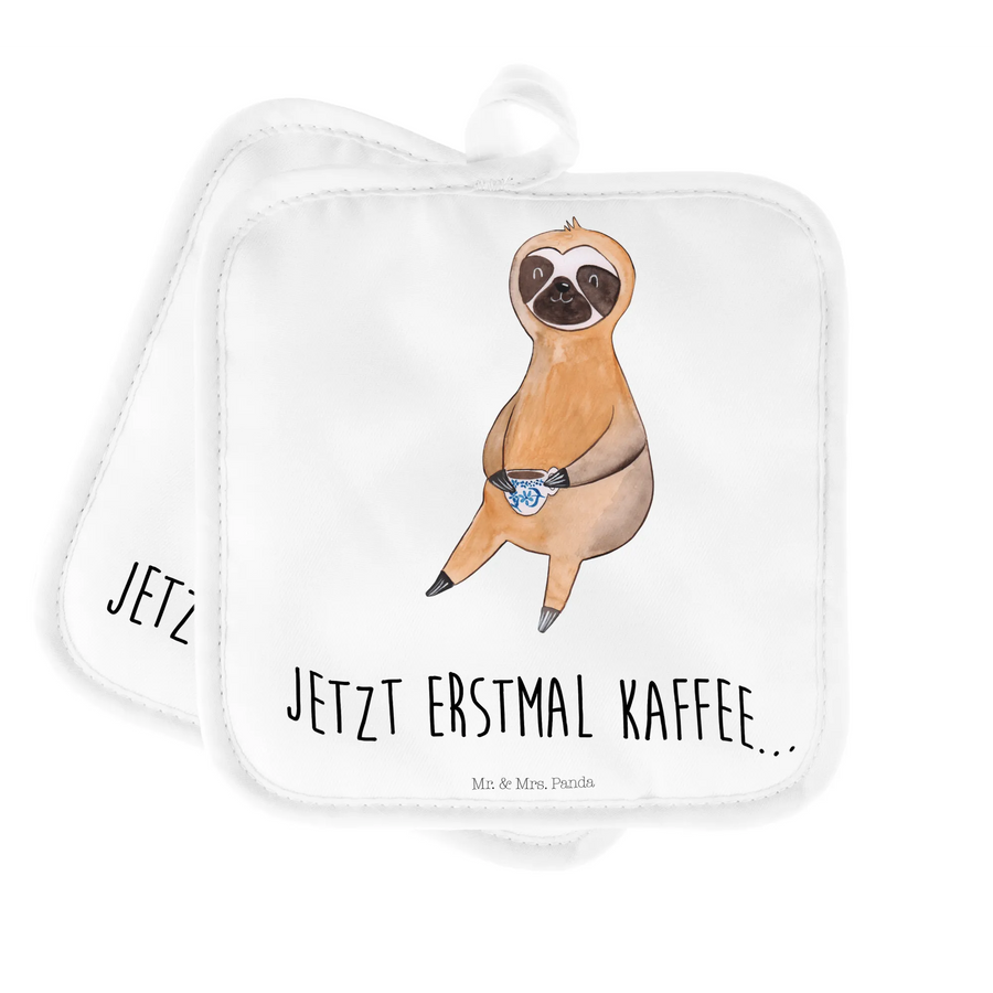 2er Set Topflappen Faultier Kaffee - mit Spruch - Weiß