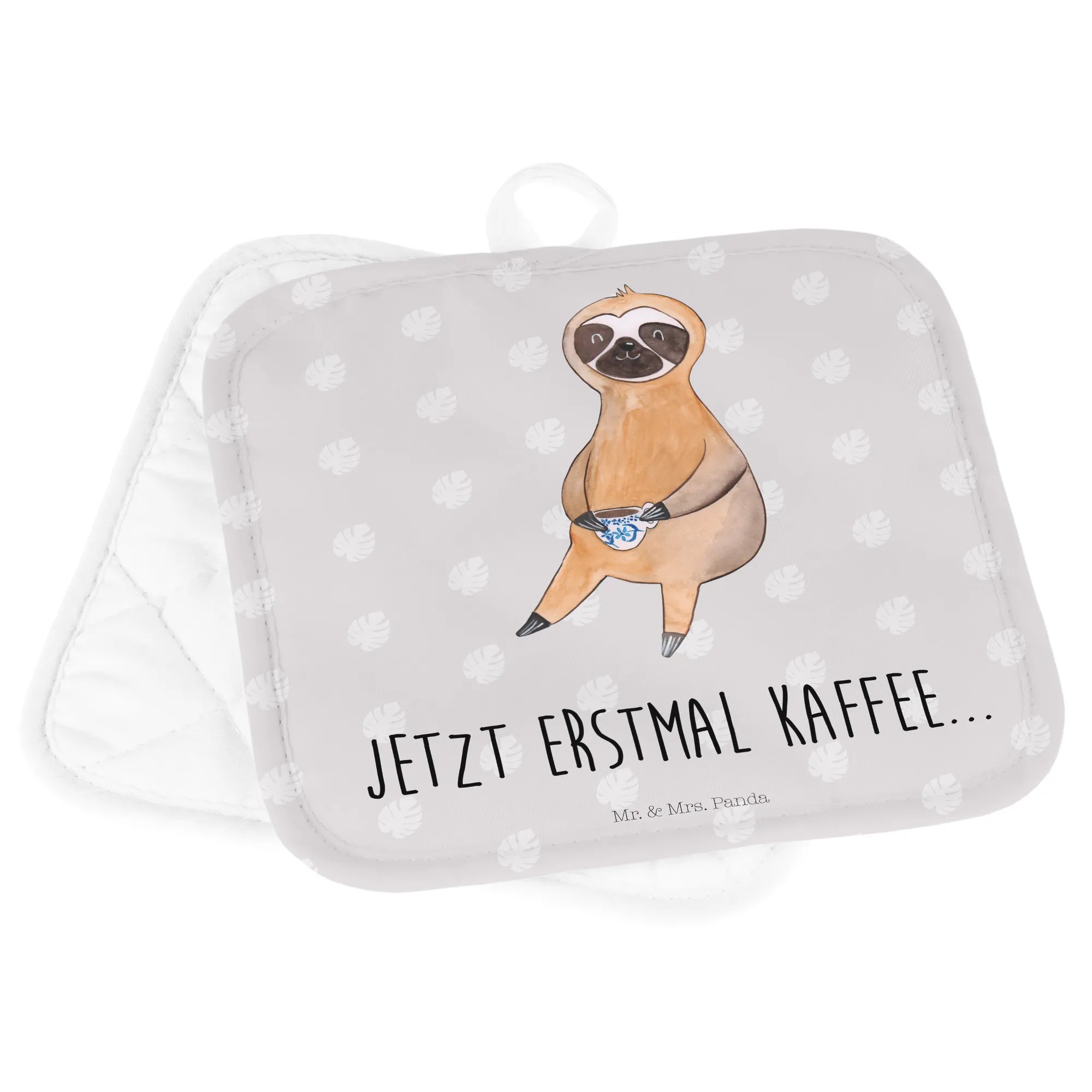 Die Topflappen sind hochwertig bedruckt mit einem charmanten Faultier, das genüsslich seinen Kaffee schlürft. Der Spruch 'Jetzt erstmal Kaffee...' wird dir jeden Morgen ein Lächeln ins Gesicht zaubern und dich daran erinnern, wie wichtig es ist, sich auch mal eine Auszeit zu gönnen.