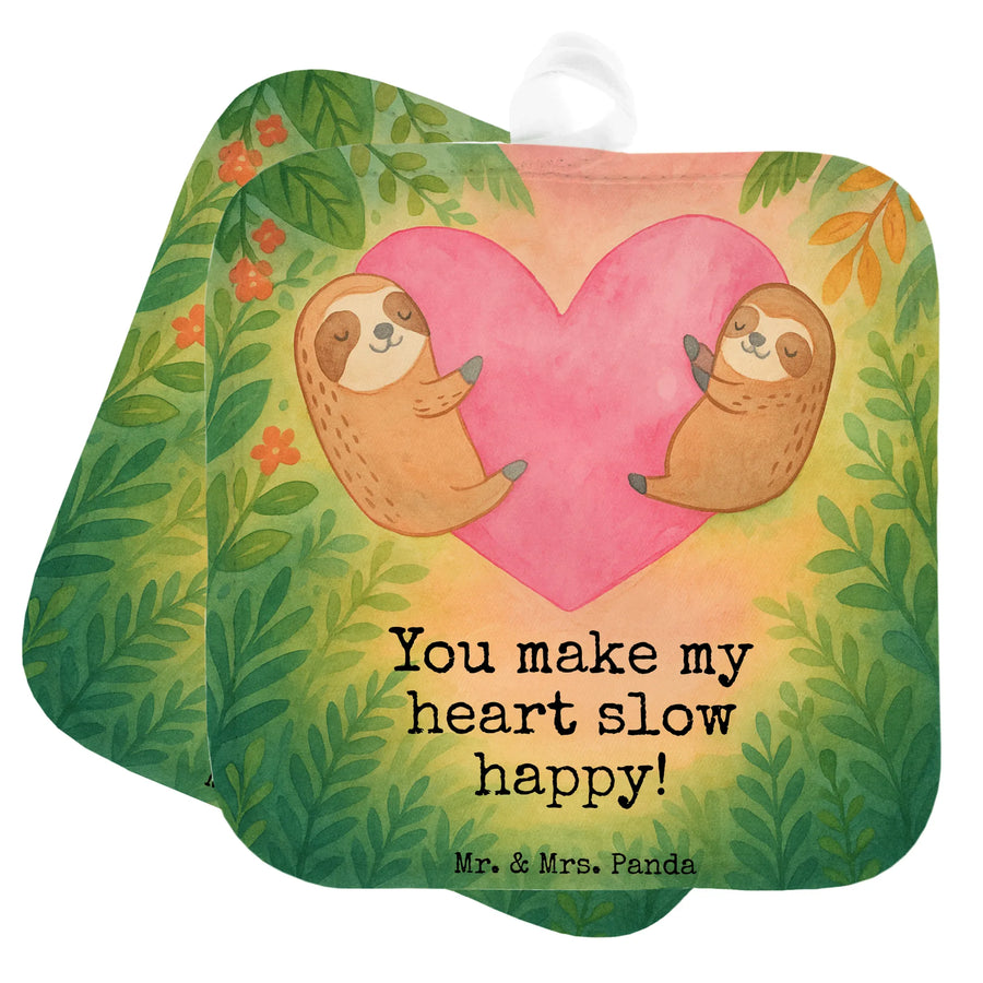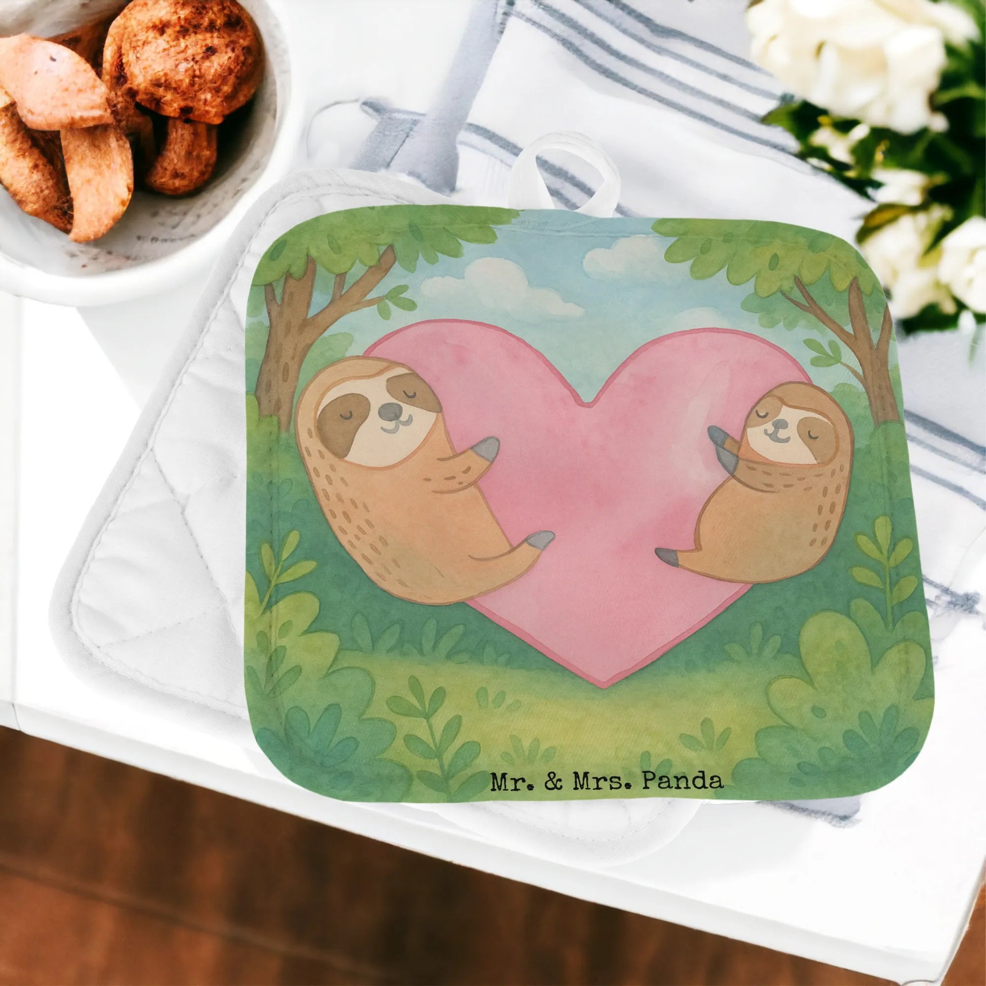 2er Set Topflappen Faultiere Herz Design - mit Spruch