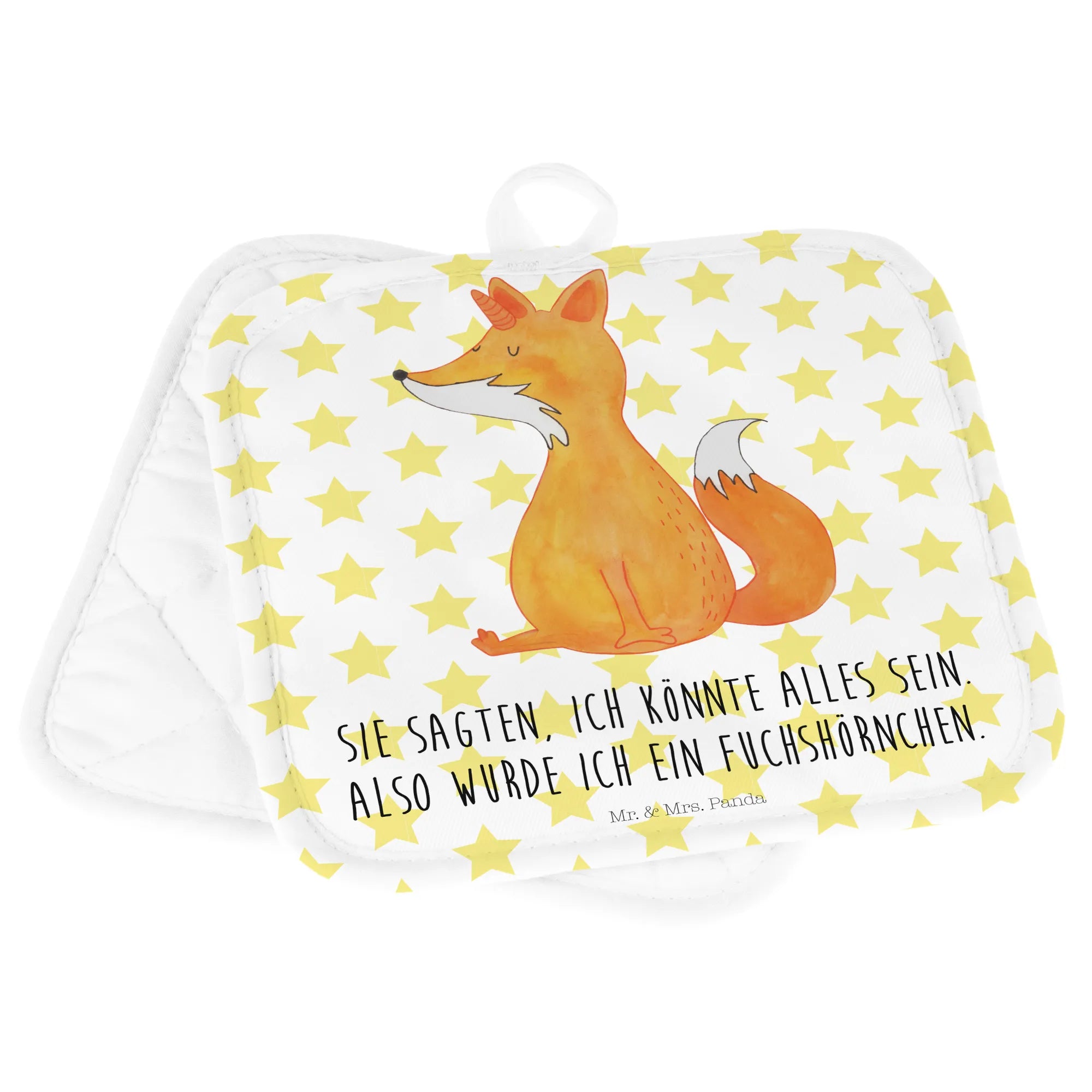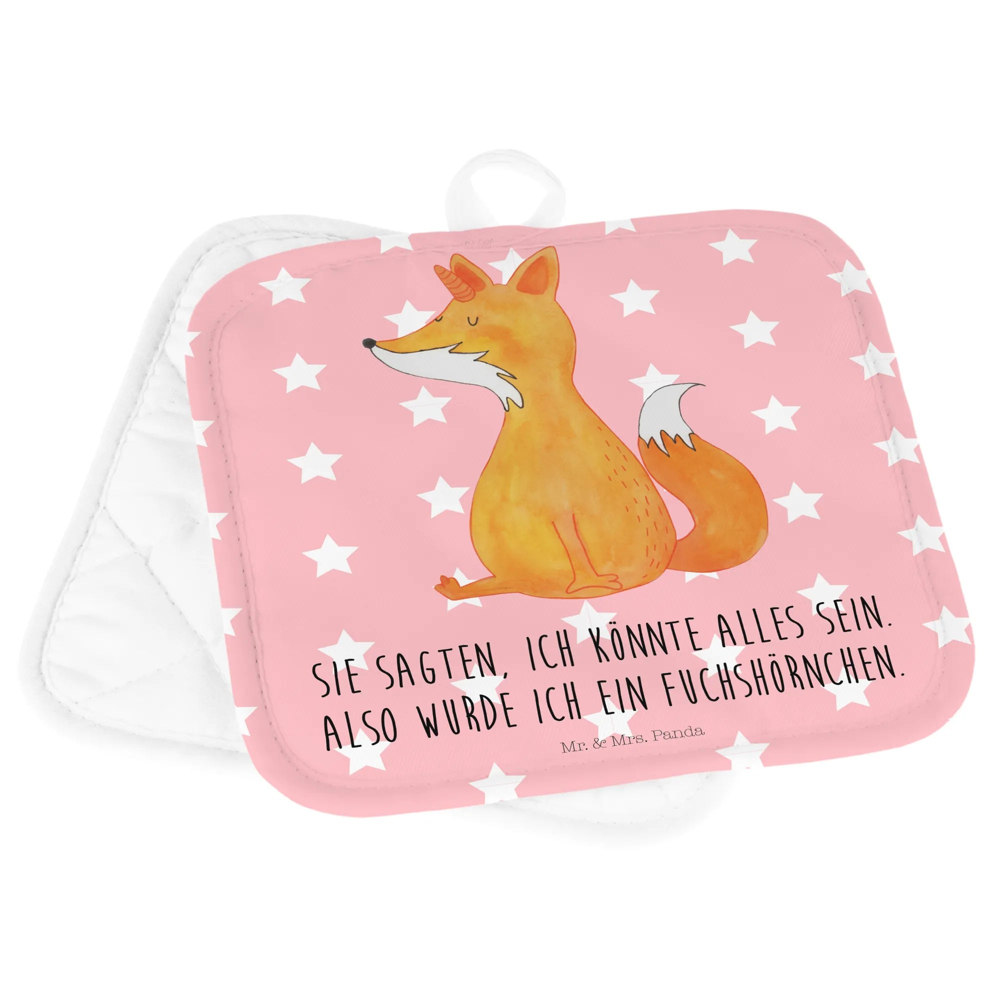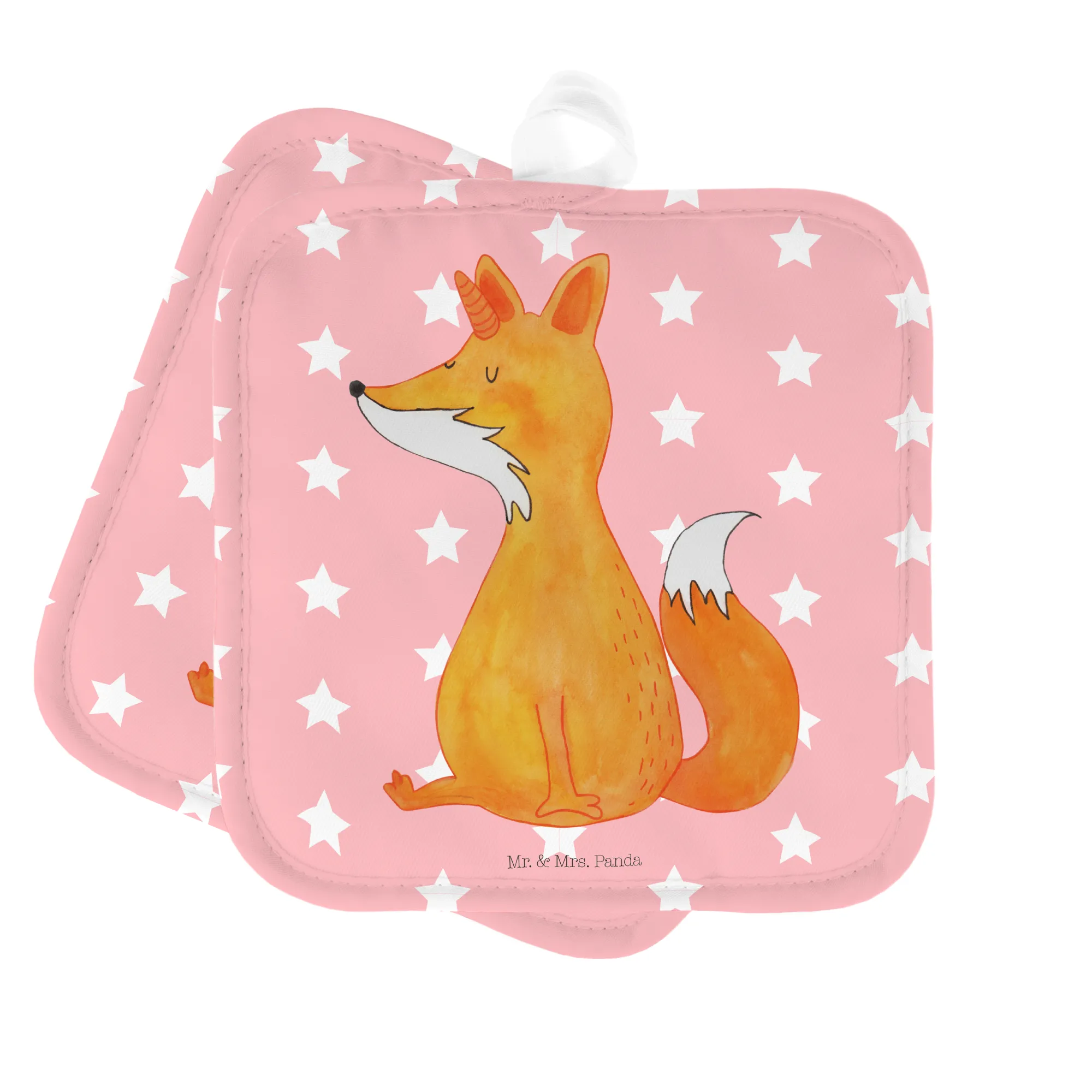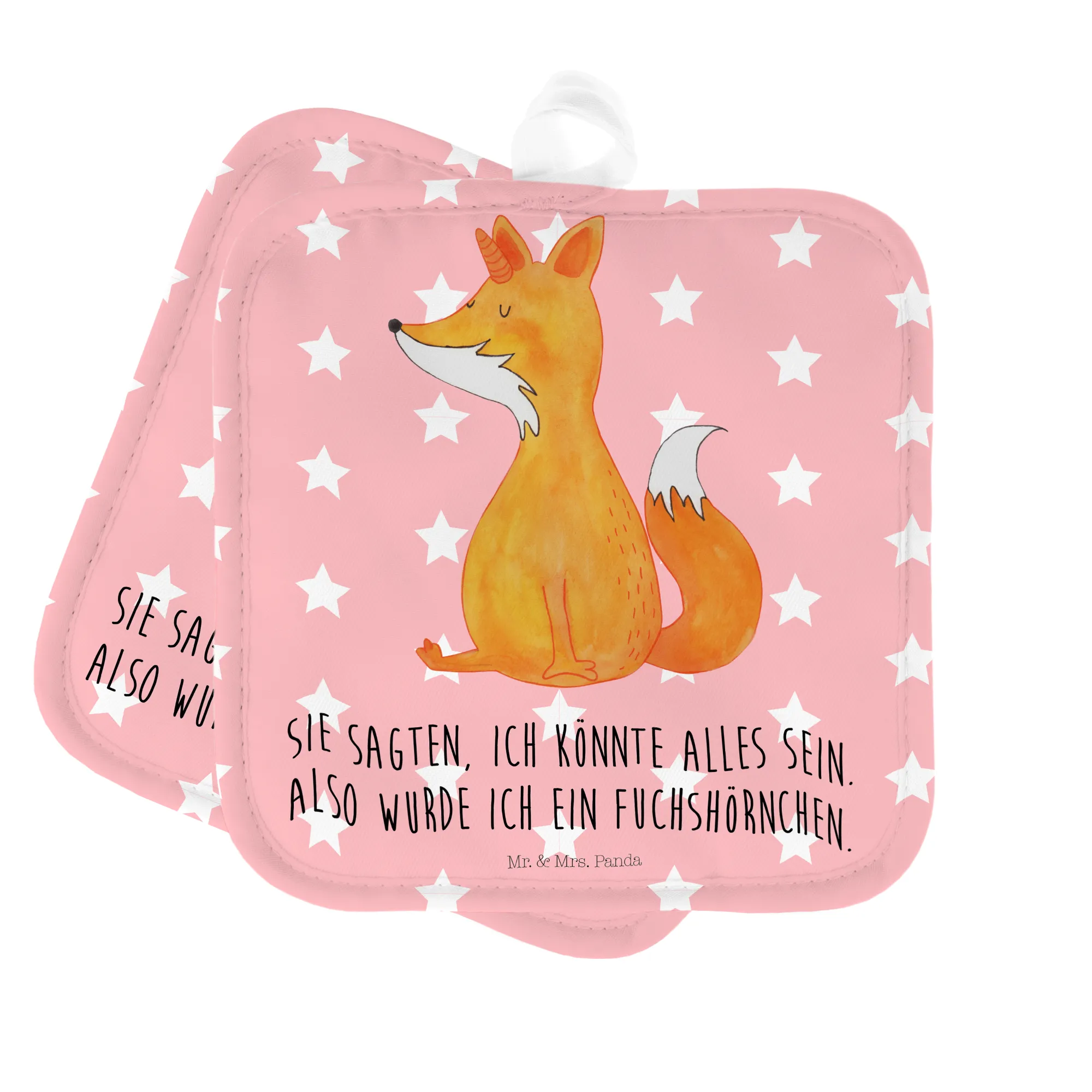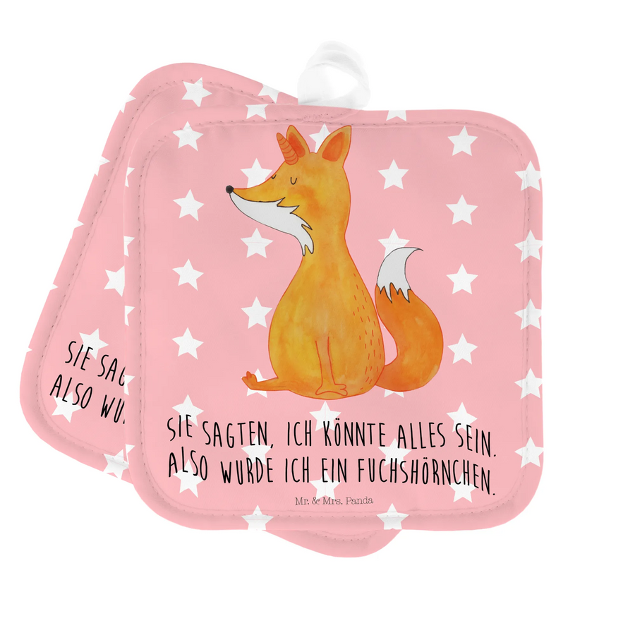 2er Set Topflappen Fuchshörnchen - mit Spruch - Rot Pastell