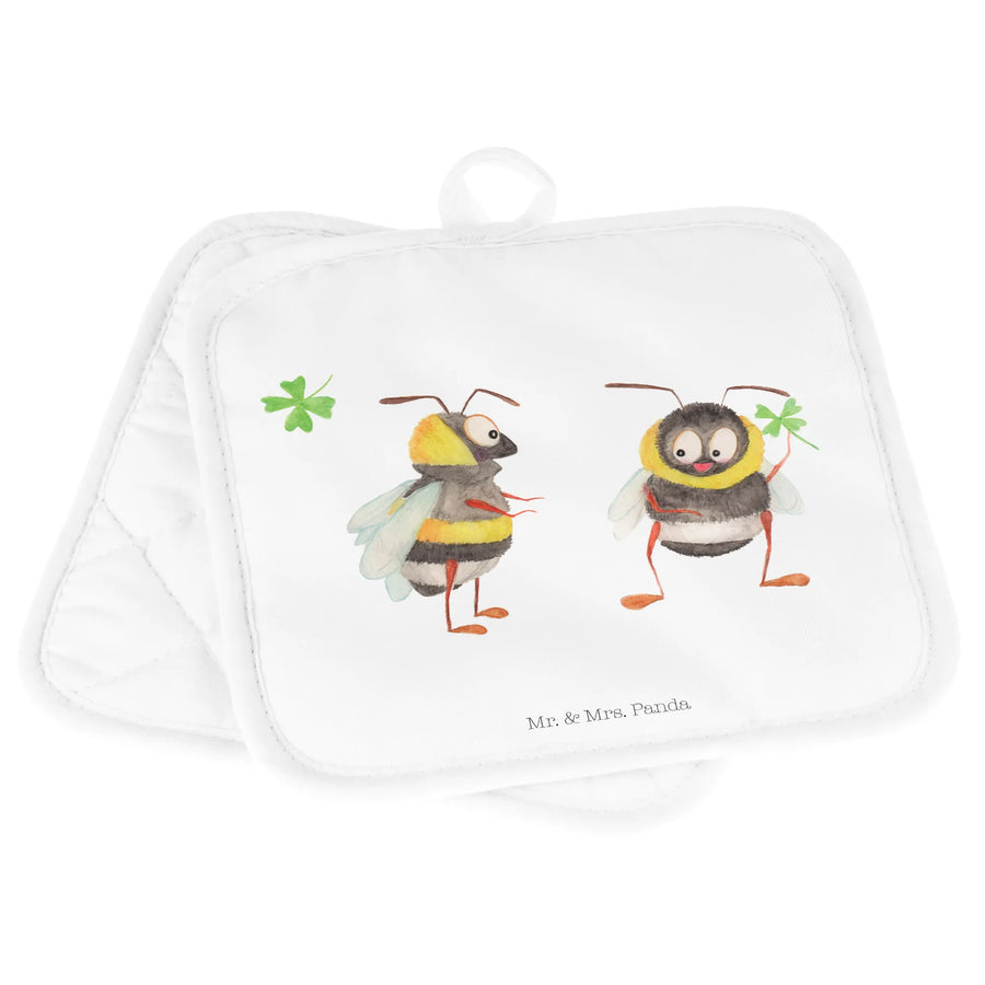 2er Set Topflappen Hummeln Kleeblatt - ohne Spruch - Weiß