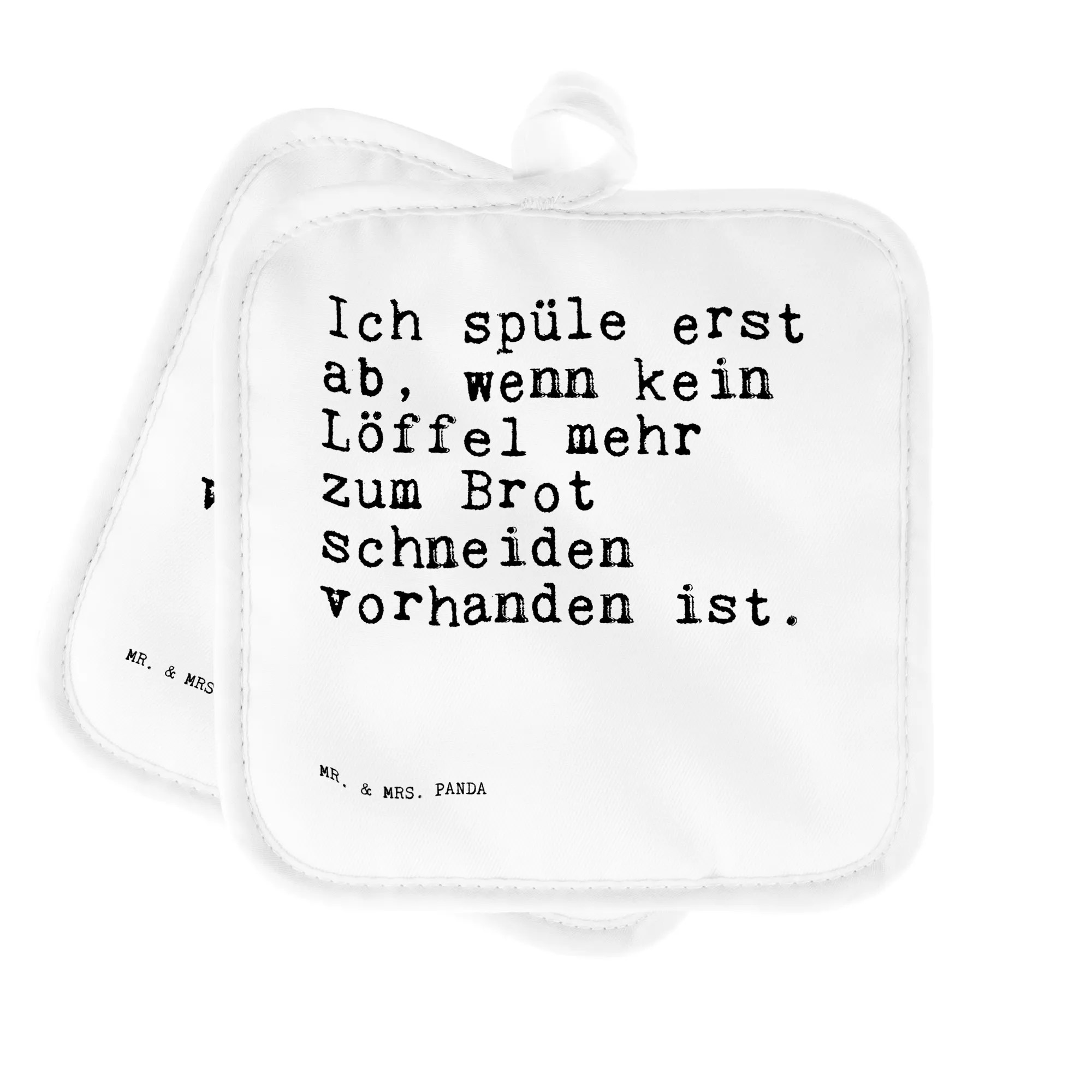 Das 2er Set Topflappen "Ich spüle erst ab, wenn kein Löffel mehr zum Brot schneiden vorhanden ist." von Mr. & Mrs. Panda ist die perfekte Geschenkidee für viele Anlässe! Egal ob für den besten Freund, den Junggesellen, als witziges Mitbringsel zur Einweihung der ersten eigenen Wohnung oder einfach nur als süße Überraschung für den Singlehaushalt – diese Topflappen sorgen nicht nur dafür, dass Du Dir beim Kochen und Backen nicht die Finger verbrennst, sondern bringen auch eine humorvolle Note in Deine Küche!