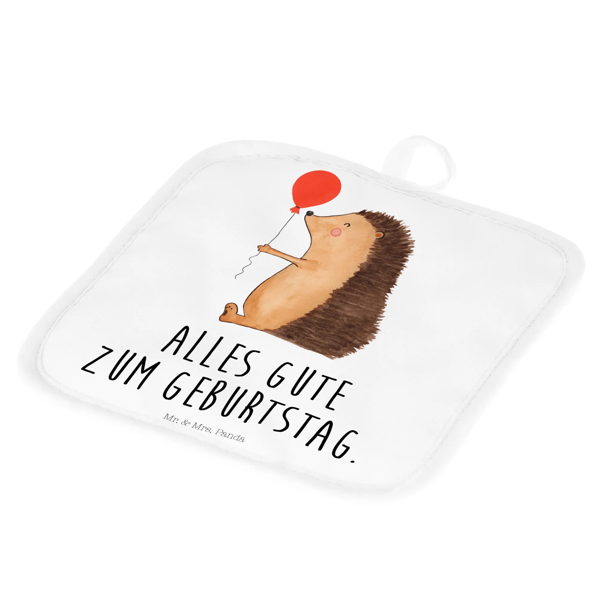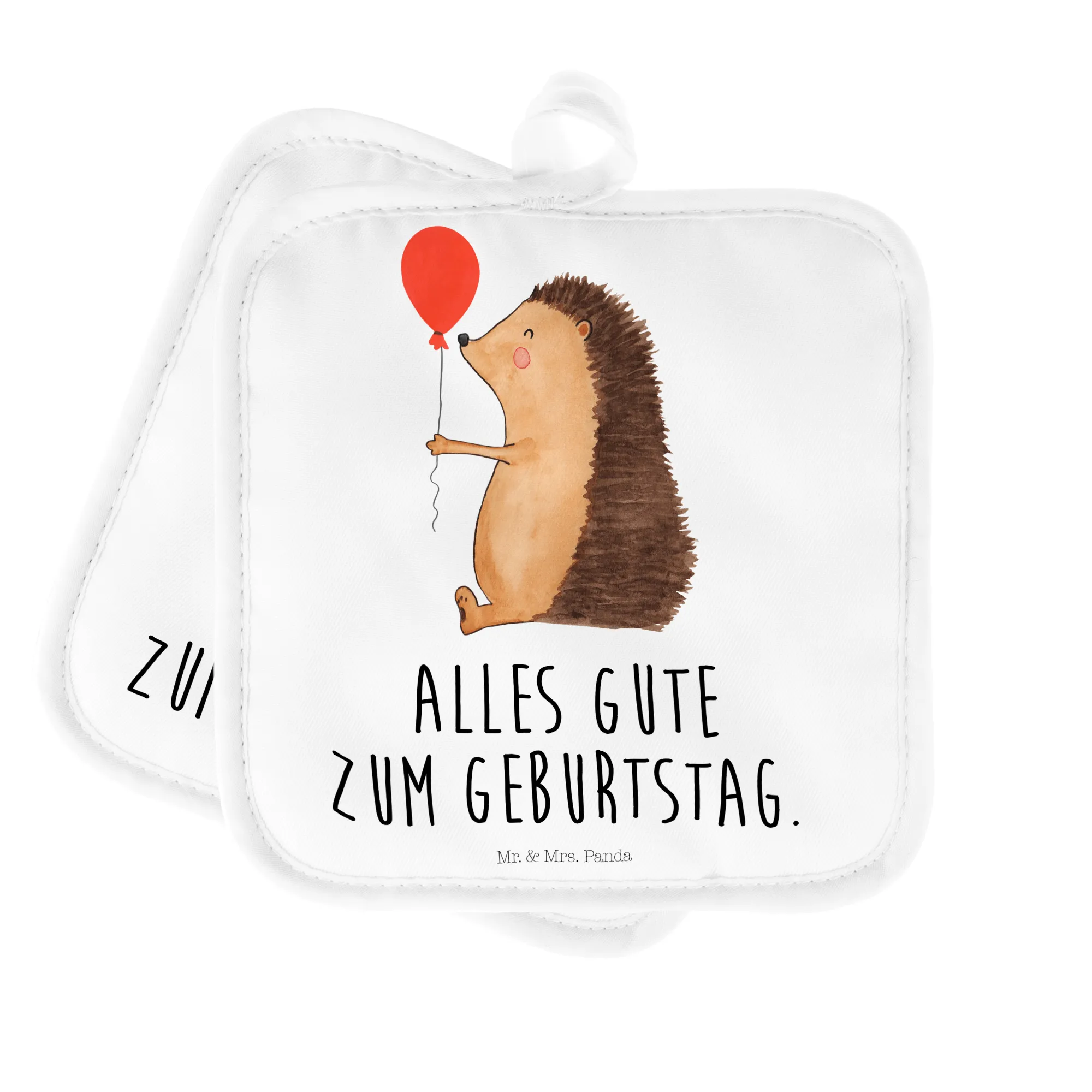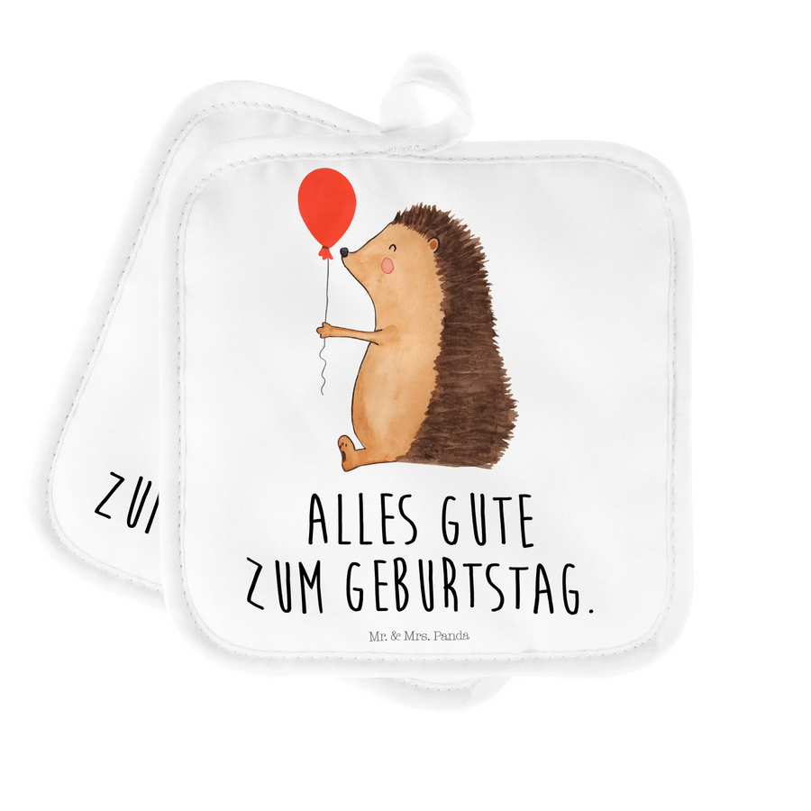 2er Set Topflappen Igel Luftballon - mit Spruch - Weiß