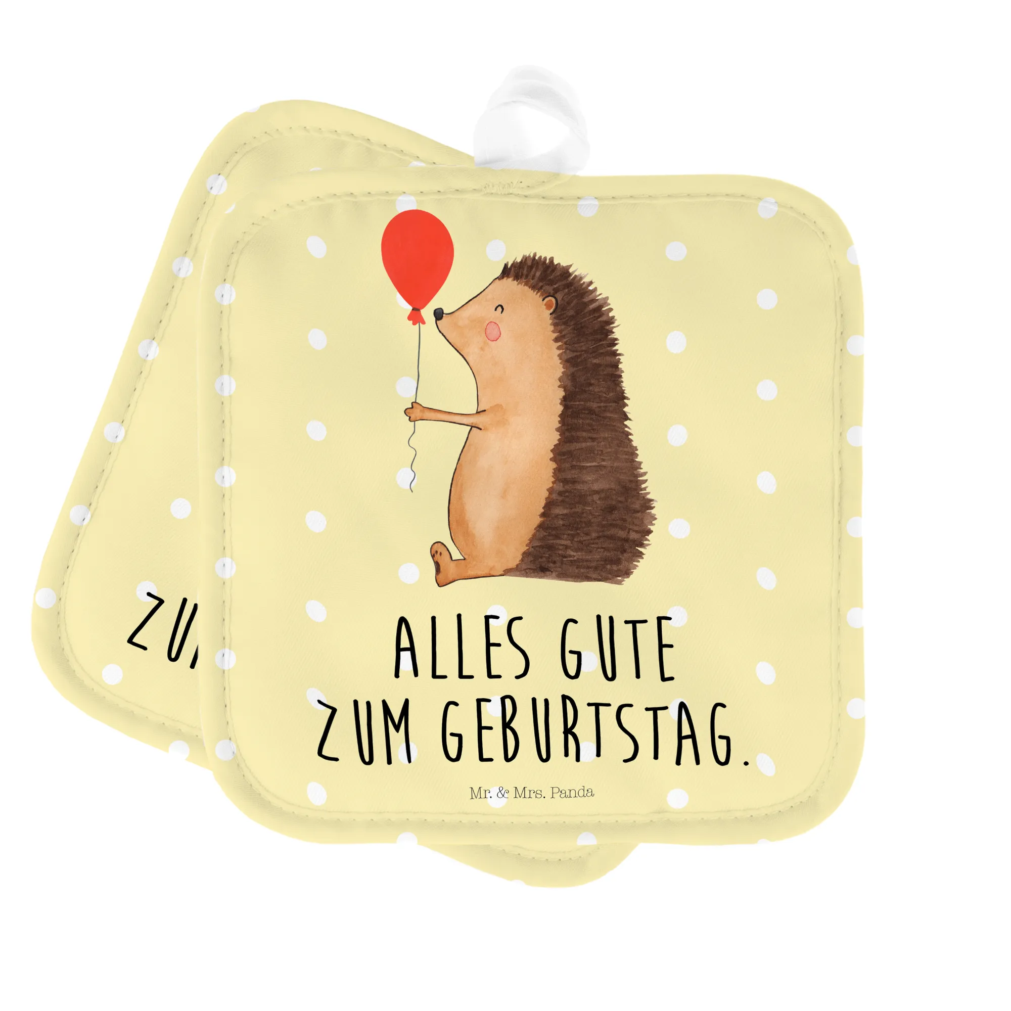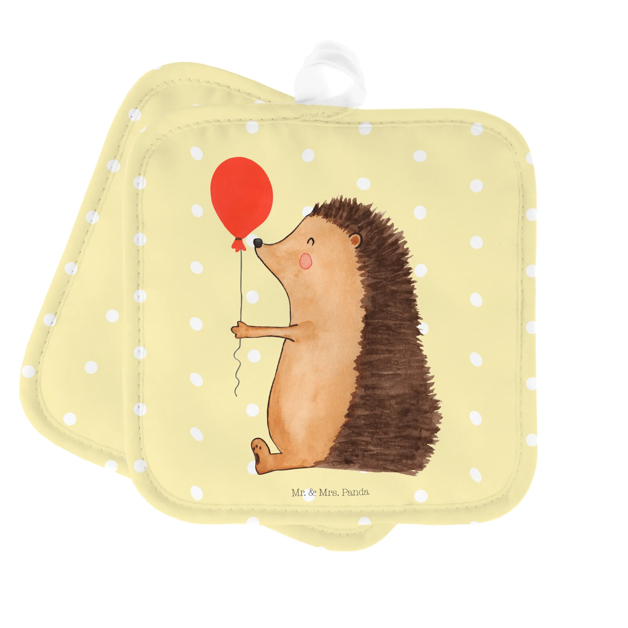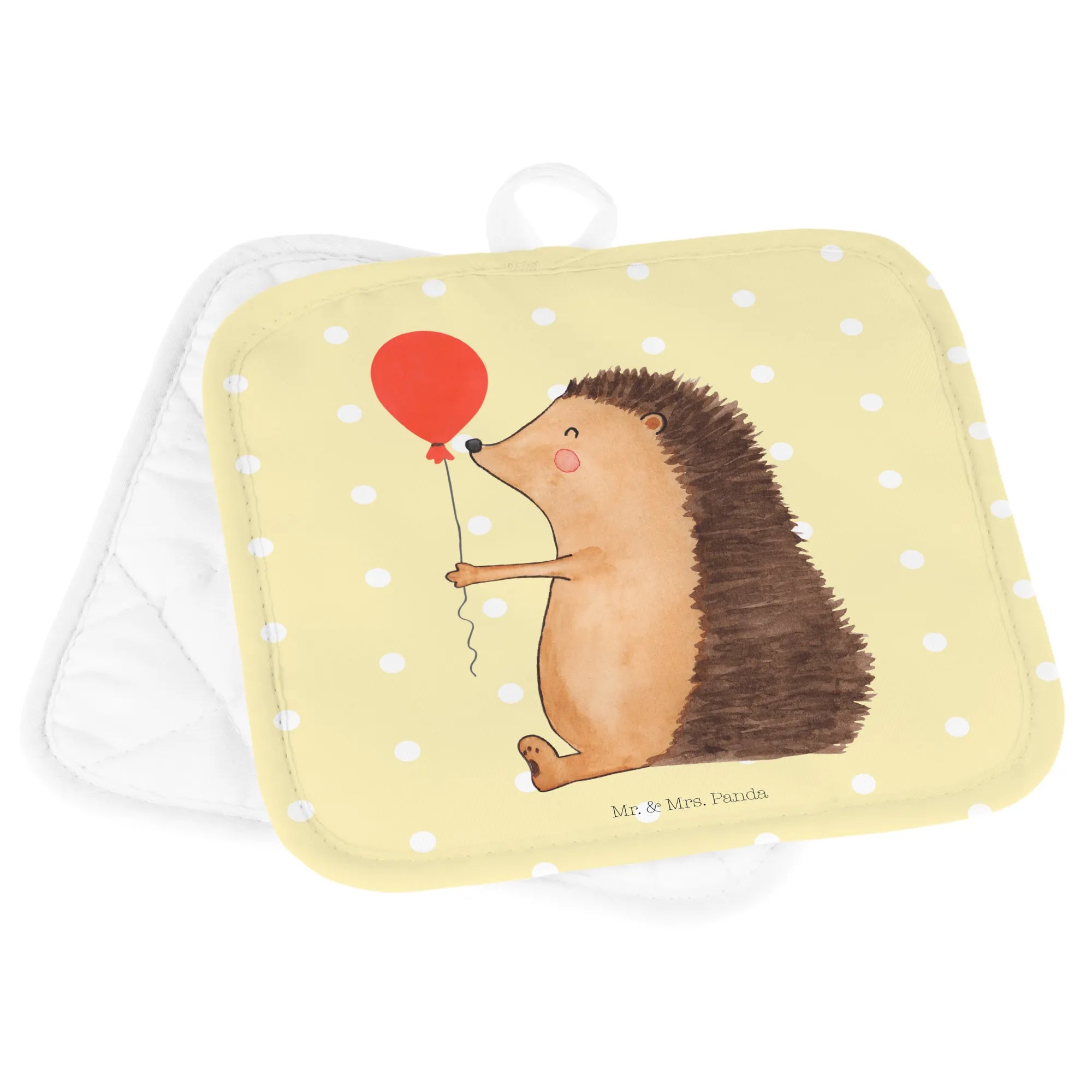 2er Set Topflappen Igel Luftballon - mit Spruch - Weiß