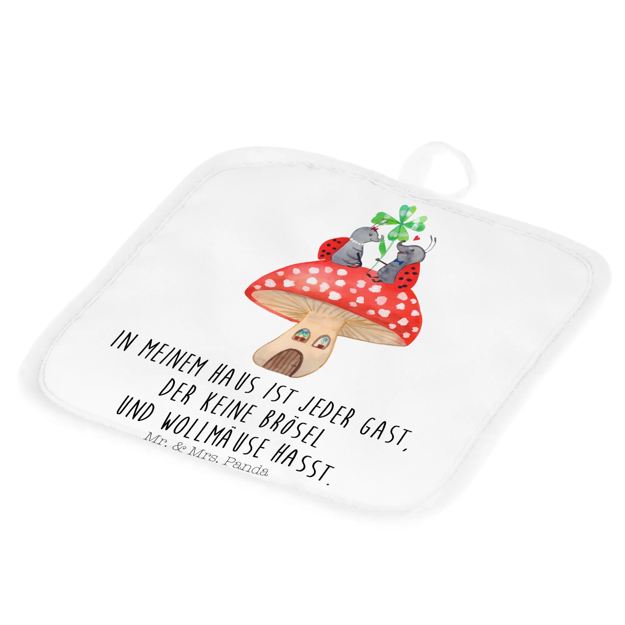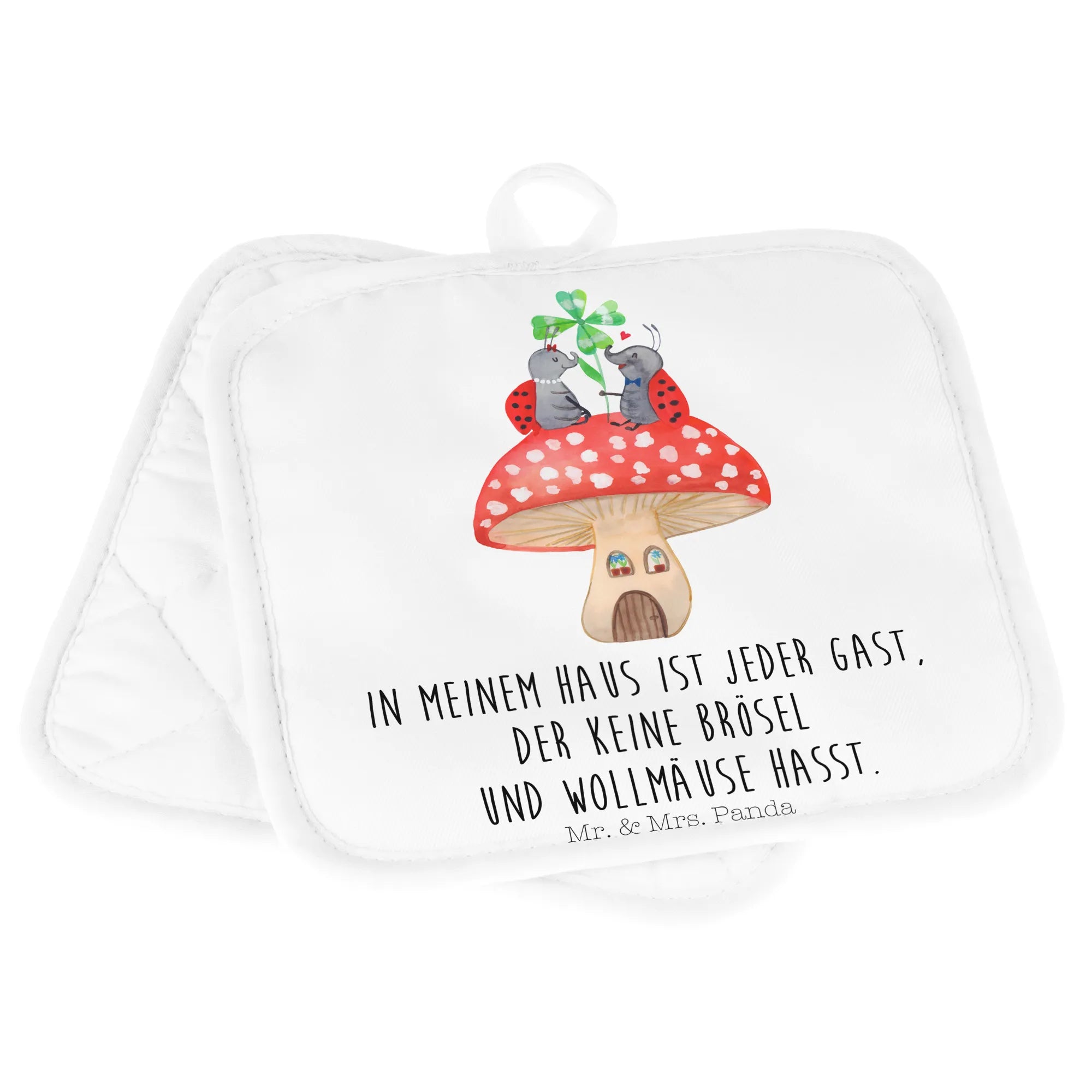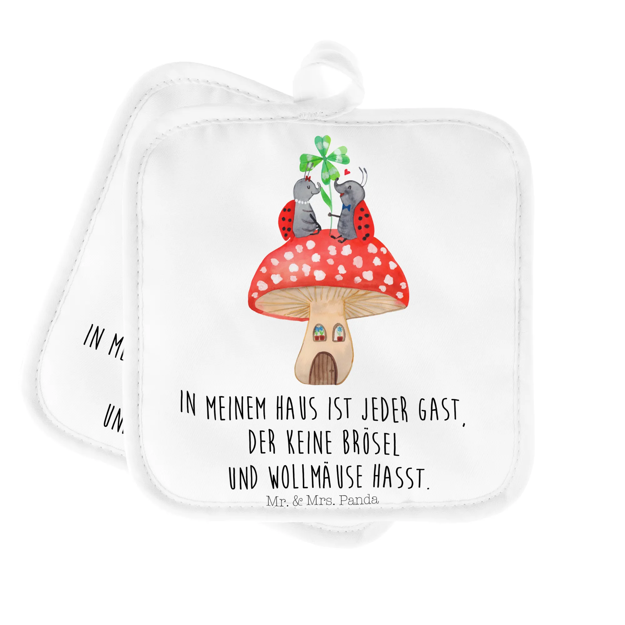 2er Set Topflappen Marienkäfer Fliegenpilz - mit Spruch - Gelb Pastell