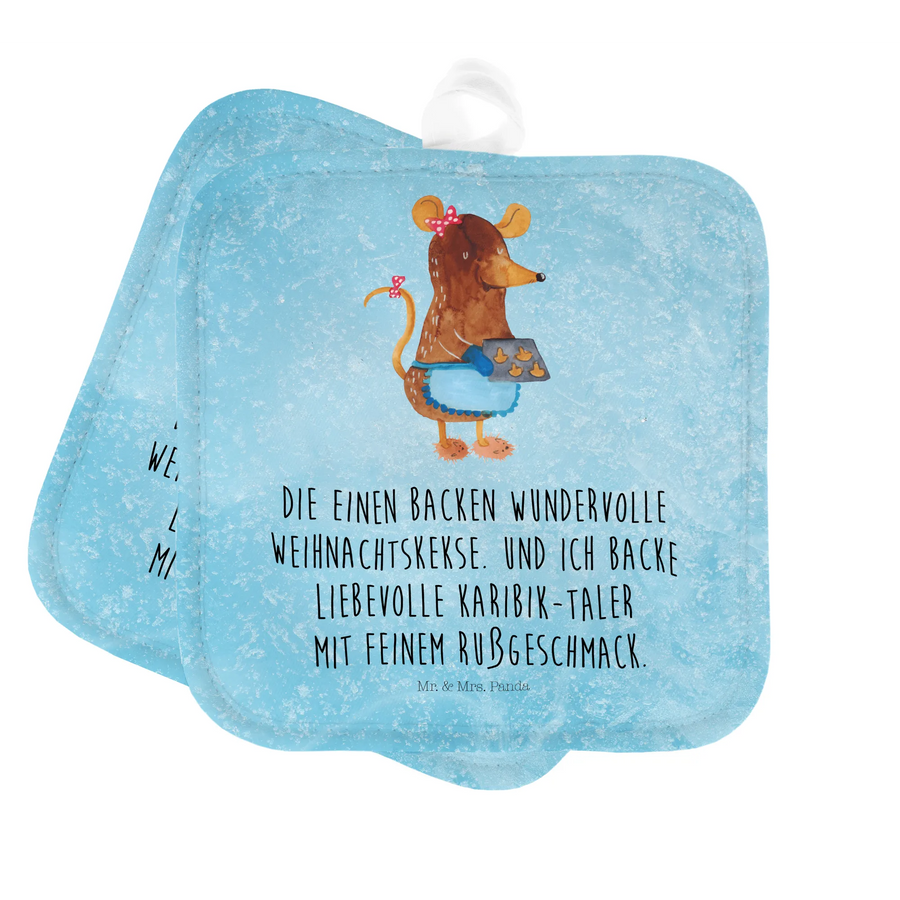 2er Set Topflappen Maus Kekse - mit Spruch - Eisblau