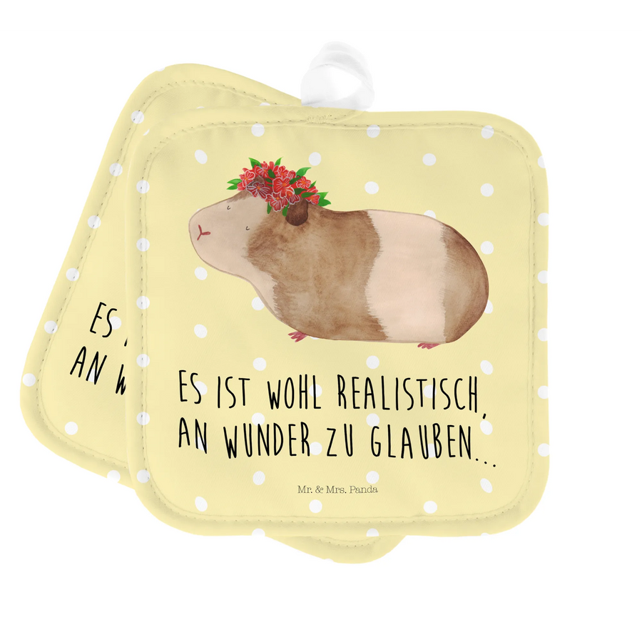 2er Set Topflappen Meerschweinchen Weisheit - mit Spruch - Gelb Pastell