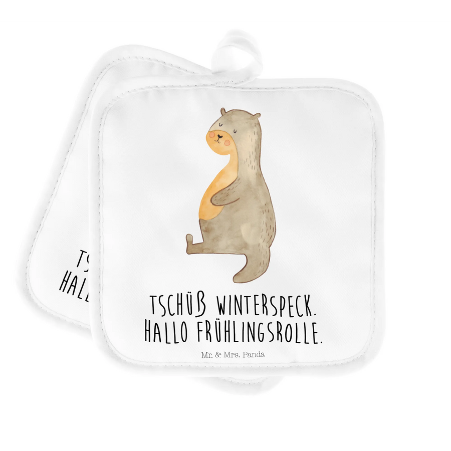 2er Set Topflappen Otter Bauch - mit Spruch - Weiß