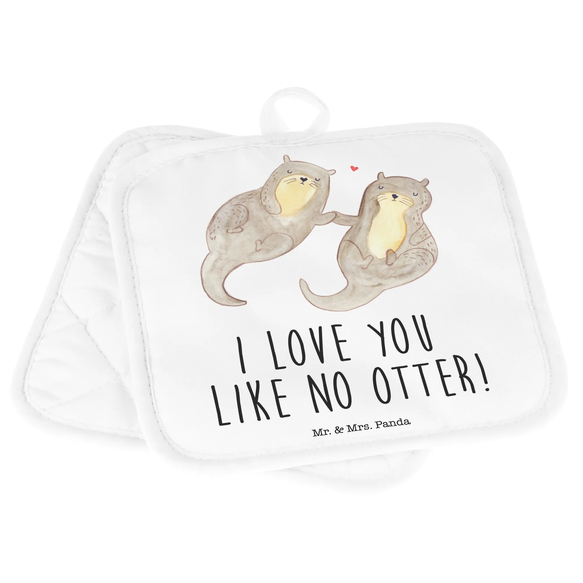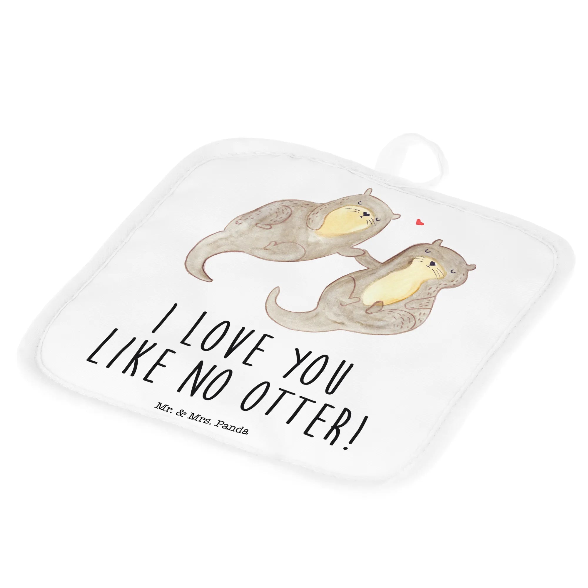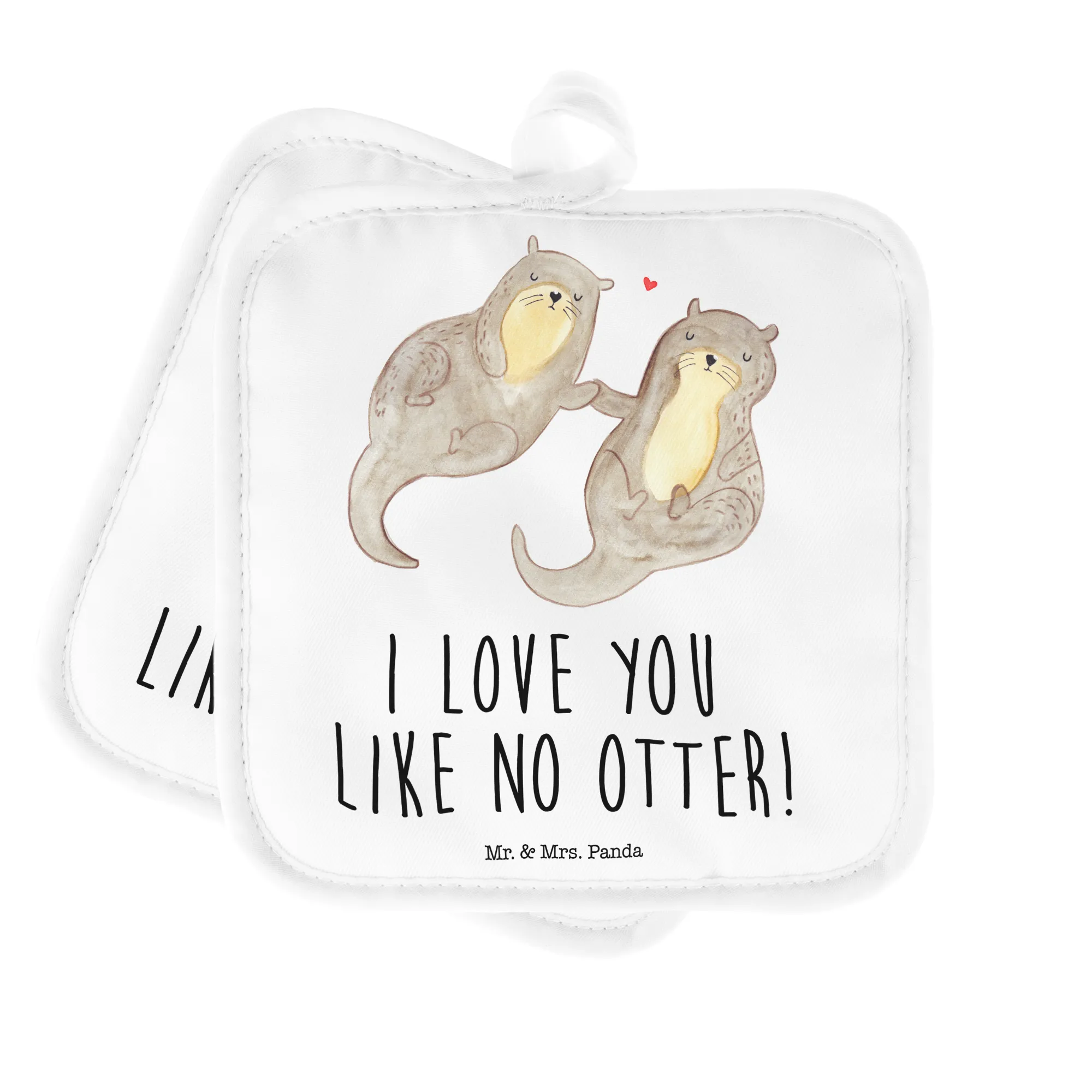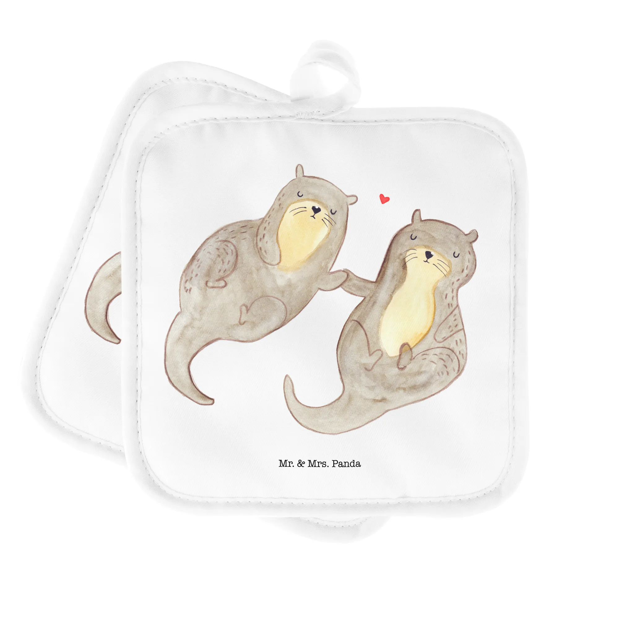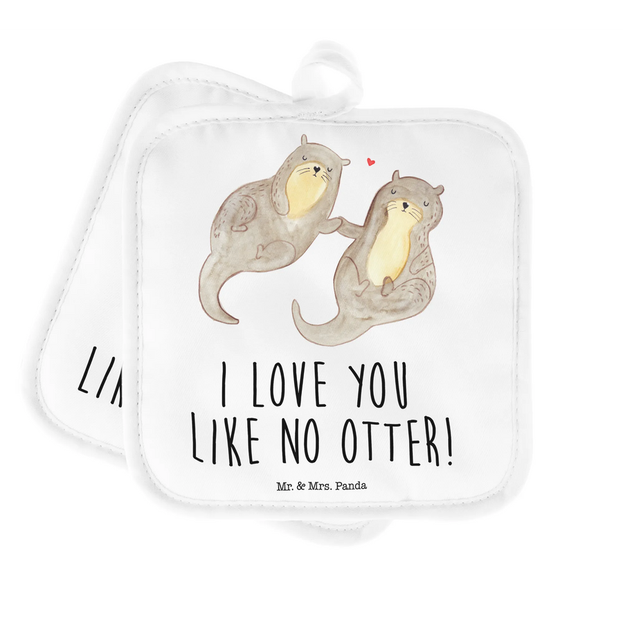 2er Set Topflappen Otter händchenhaltend - mit Spruch - Weiß