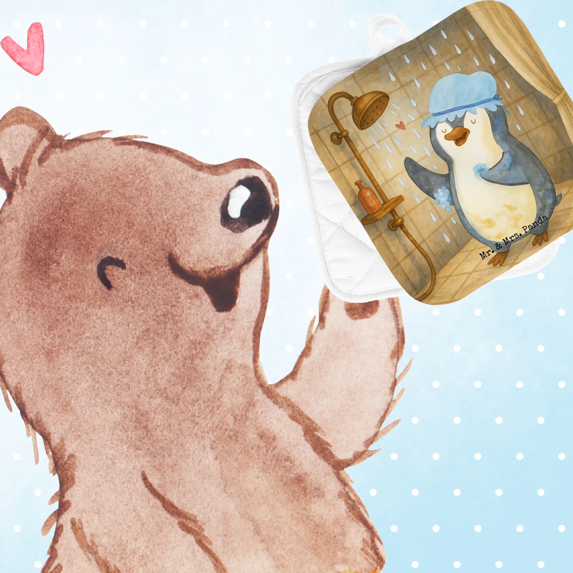 2er Set Topflappen Pinguin Duschen Design - mit Spruch