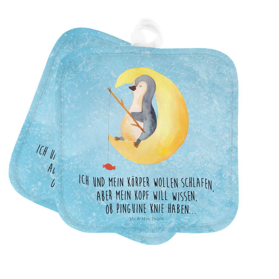 2er Set Topflappen Pinguin Mond - mit Spruch - Eisblau