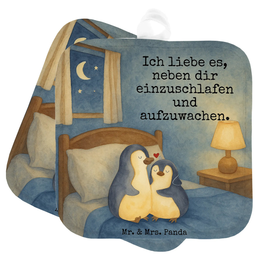 2er Set Topflappen Pinguine Einschlafen Design - mit Spruch