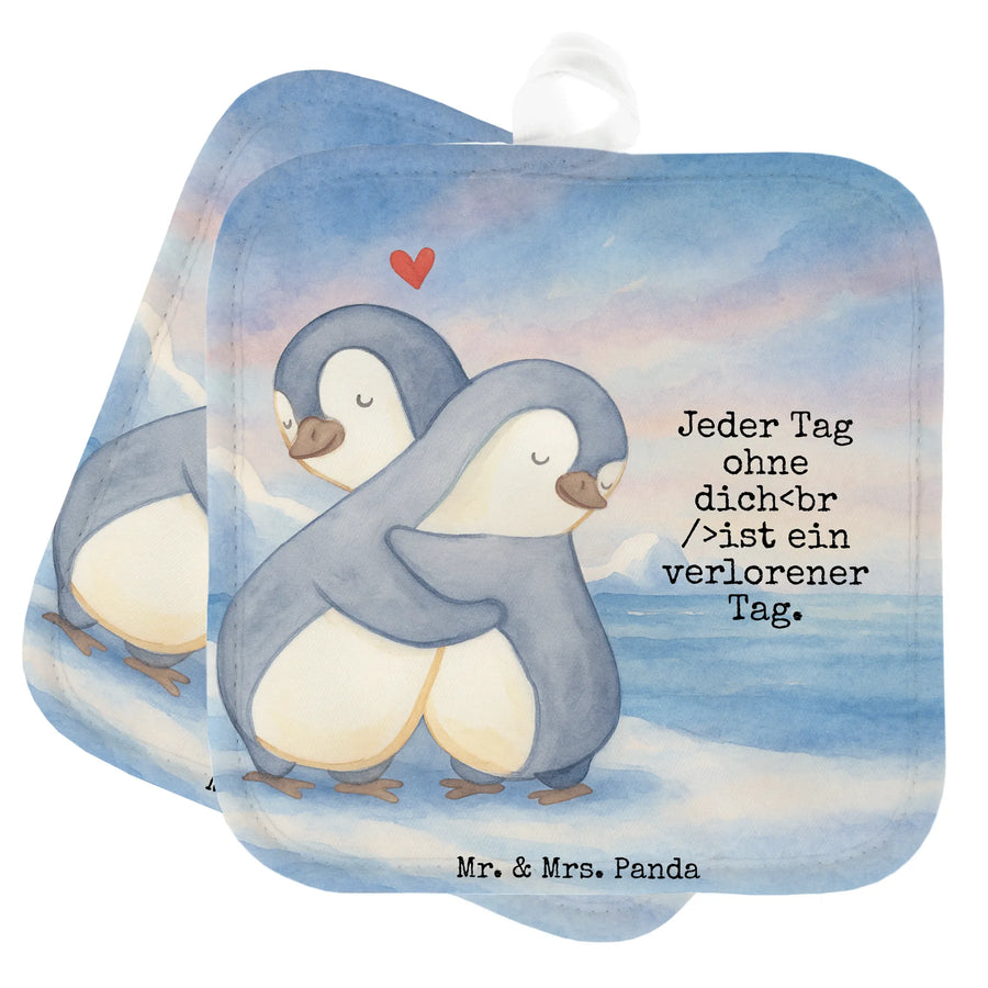 2er Set Topflappen Pinguine Kuscheln Design - mit Spruch
