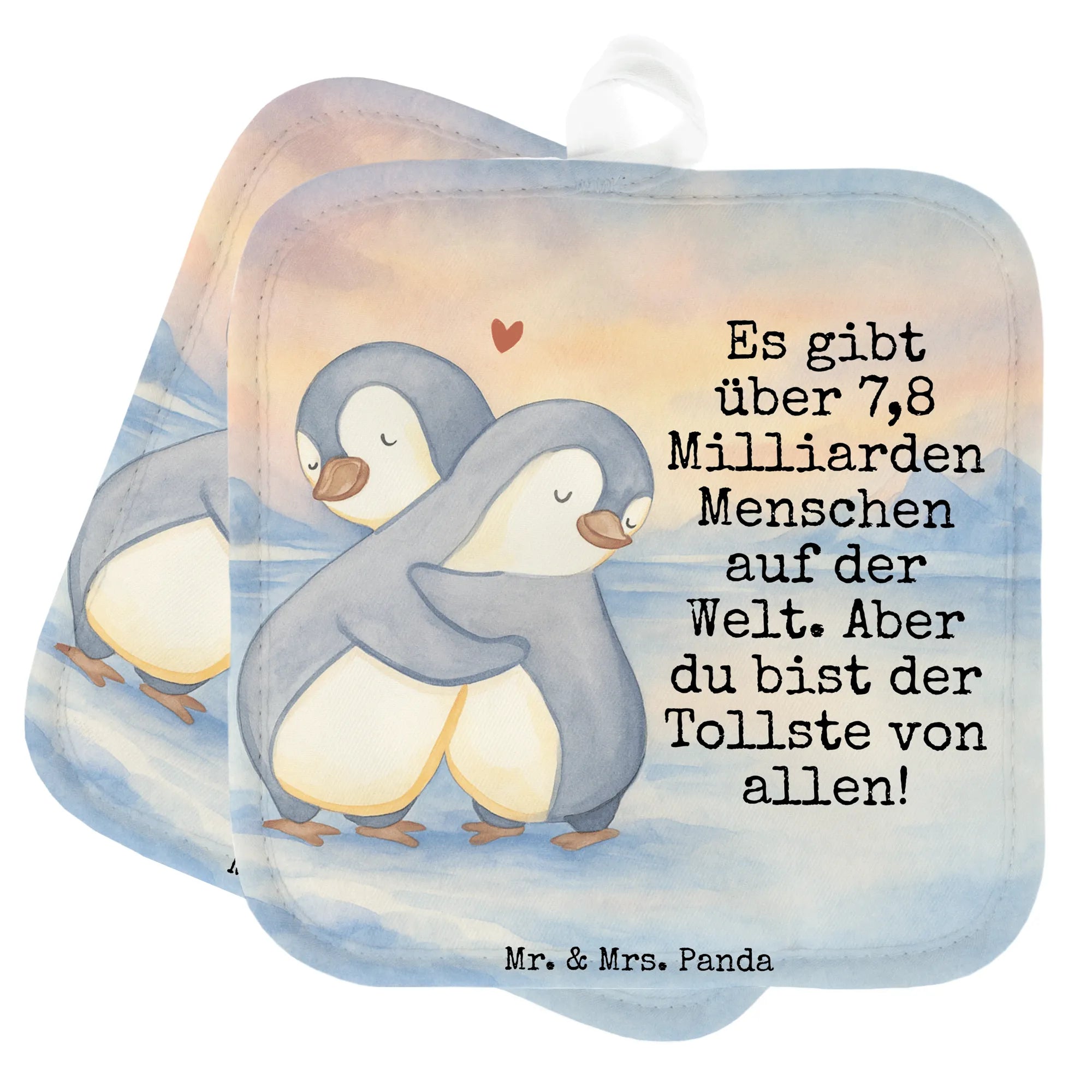 2er Set Topflappen Pinguine Kuscheln Design - mit Spruch