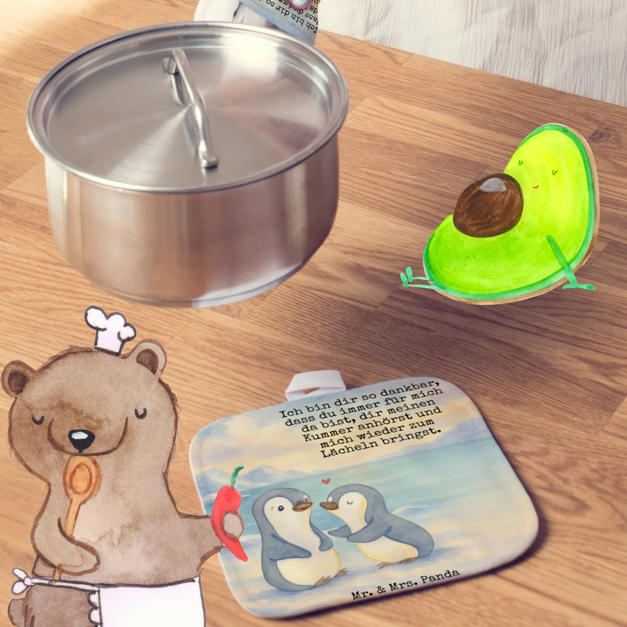 Freue Dich auf das exklusive Topflappen Set von Mr. & Mrs. Panda, das mit Liebe und Sorgfalt für Deine Küche entworfen wurde. Diese Topflappen messen jeweils 170 mm x 170 mm und besitzen eine ideale Dicke von 5 mm, womit sie hervorragend vor Hitze isolieren. Gefertigt aus 100% Polyester, zeichnen sie sich durch ihre besondere Strapazierfähigkeit und die leichte Reinigungsmöglichkeit bei 30°C aus. Die einzigartigen Druckmotive und Sprüche auf jedem Topflappen spiegeln den unverwechselbaren Charme und die Kreativität von Mr. & Mrs. Panda wider. Dank der praktischen Aufhängeschlaufen lassen sie sich spielend leicht in jeder Küche integrieren. Egal ob als stilvoller Topfuntersetzer oder als praktischer Ofenhandschuh genutzt – dieses Set ist ein absolutes Must-have für jede küchenliebende Person, die Wert auf Design und Funktionalität legt.