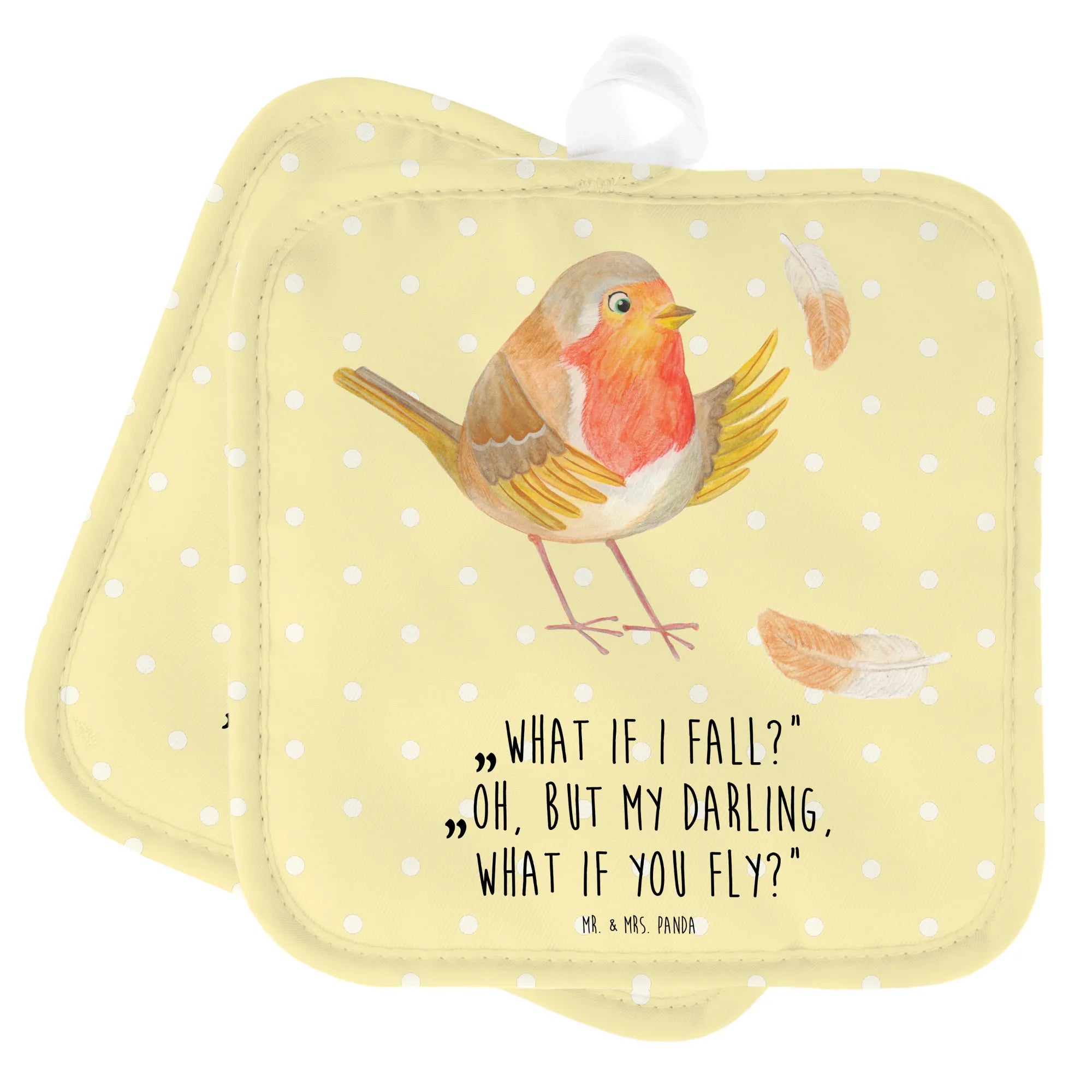 Entdecke das bezaubernde 2er Set Topflappen mit dem liebevoll gestalteten Rotkehlchen-Motiv aus der Small World Kollektion von Mr. & Mrs. Panda!