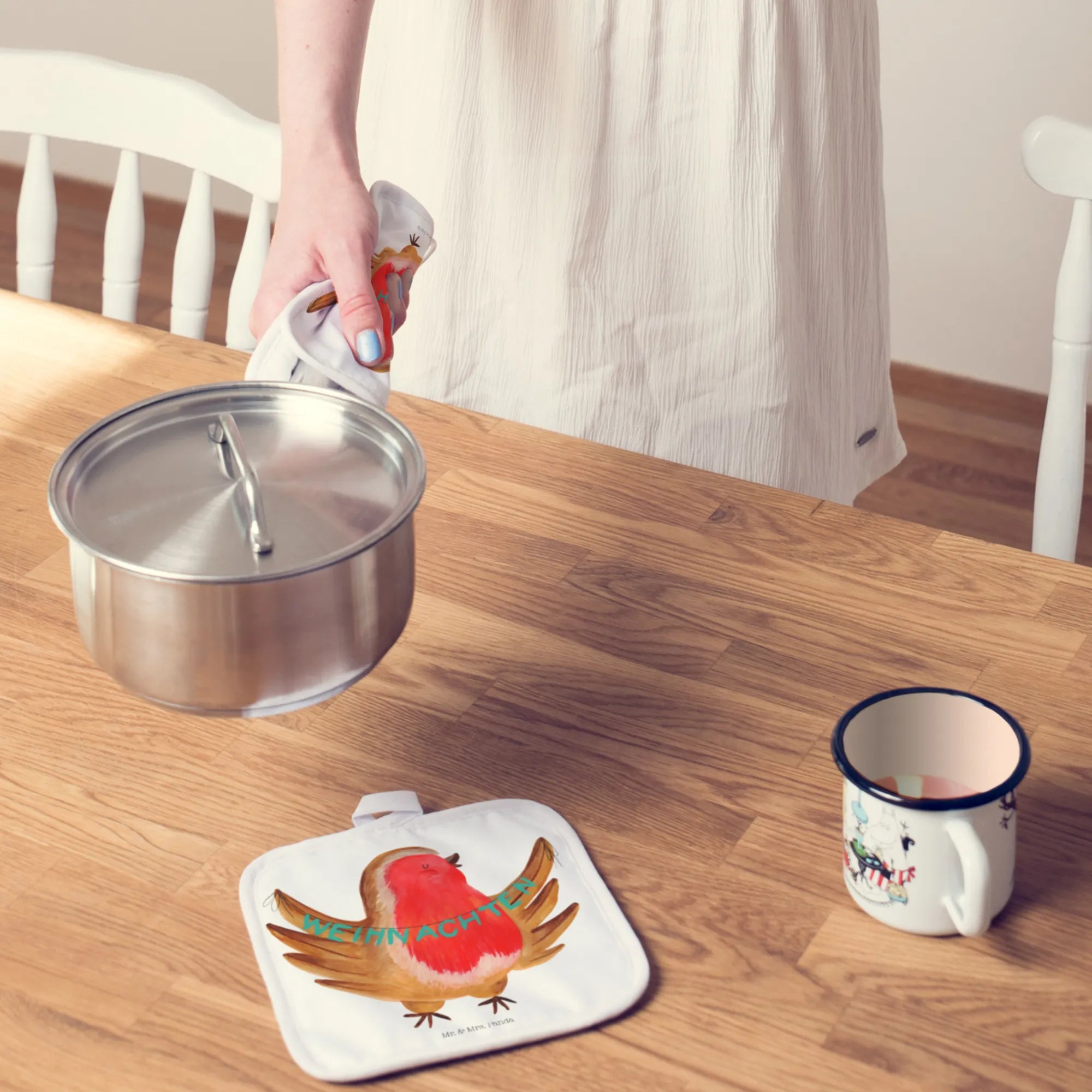 Erlebe die zauberhafte Winterzeit mit unserem 2er Set Topflappen "Rotkehlchen Weihnachten" von Mr. & Mrs. Panda! Diese wunderschönen Topflappen sind ein absolutes Muss in jeder Weihnachtsküche. Sie sind nicht nur praktisch, sondern bringen auch ein charmantes Weihnachtsmotiv in dein Zuhause.