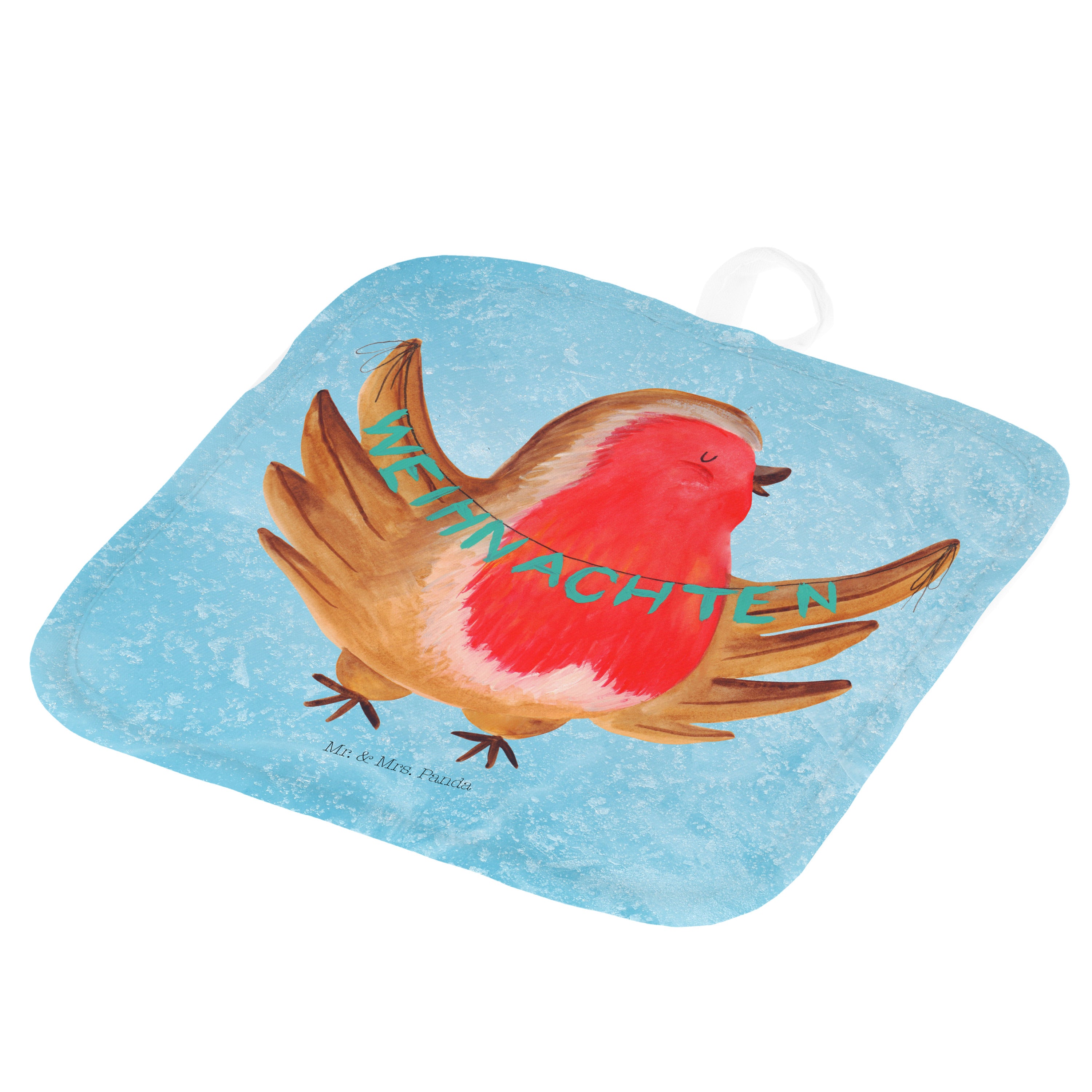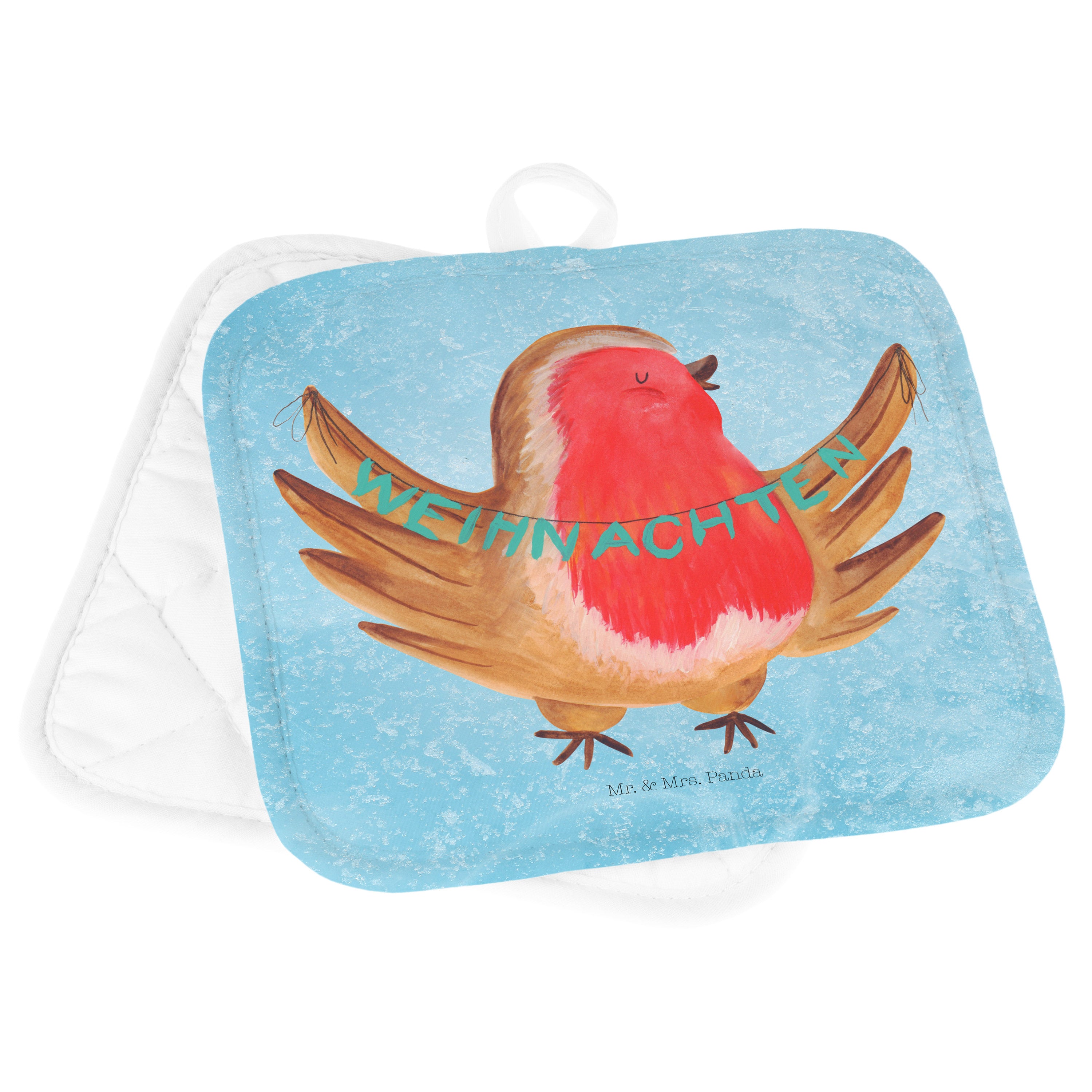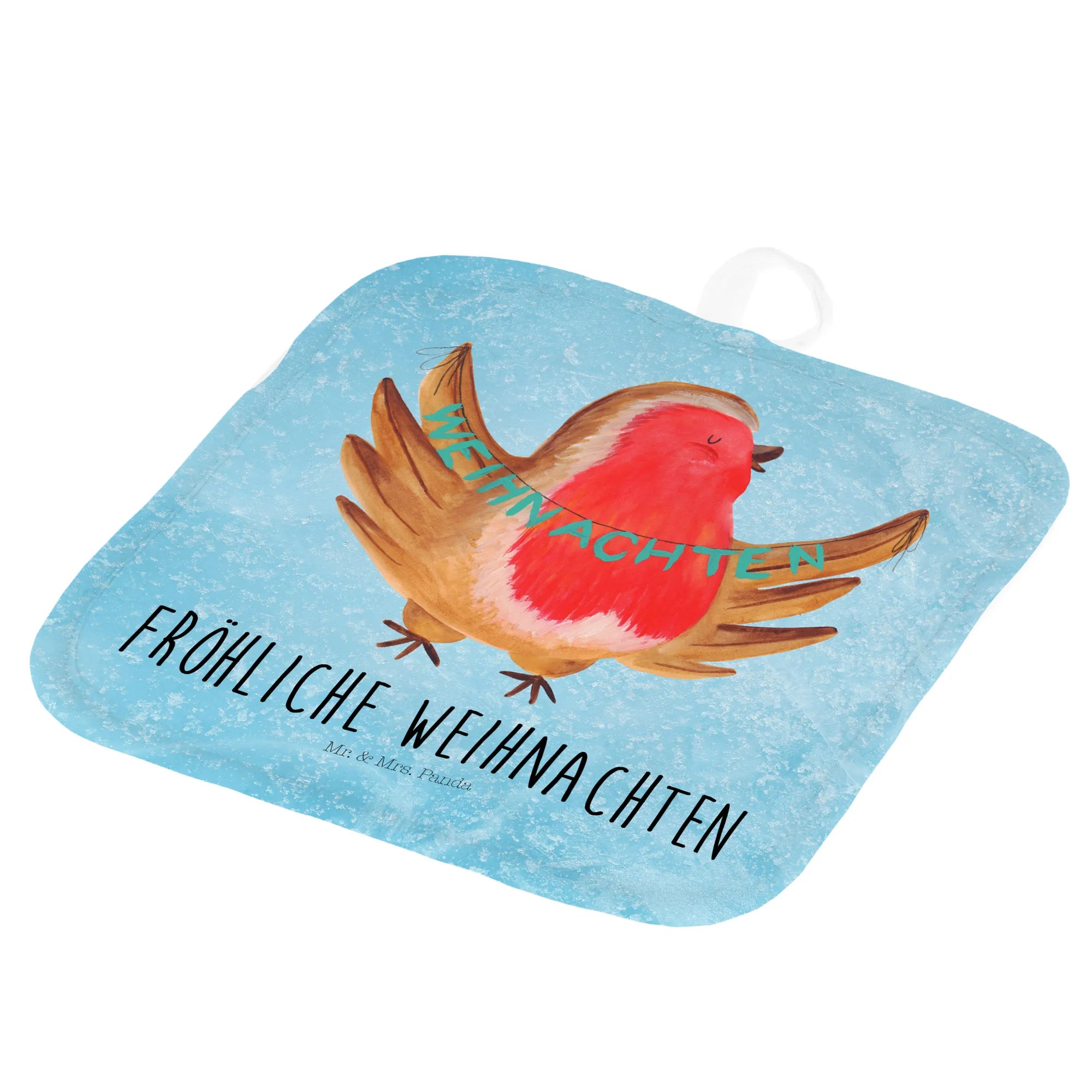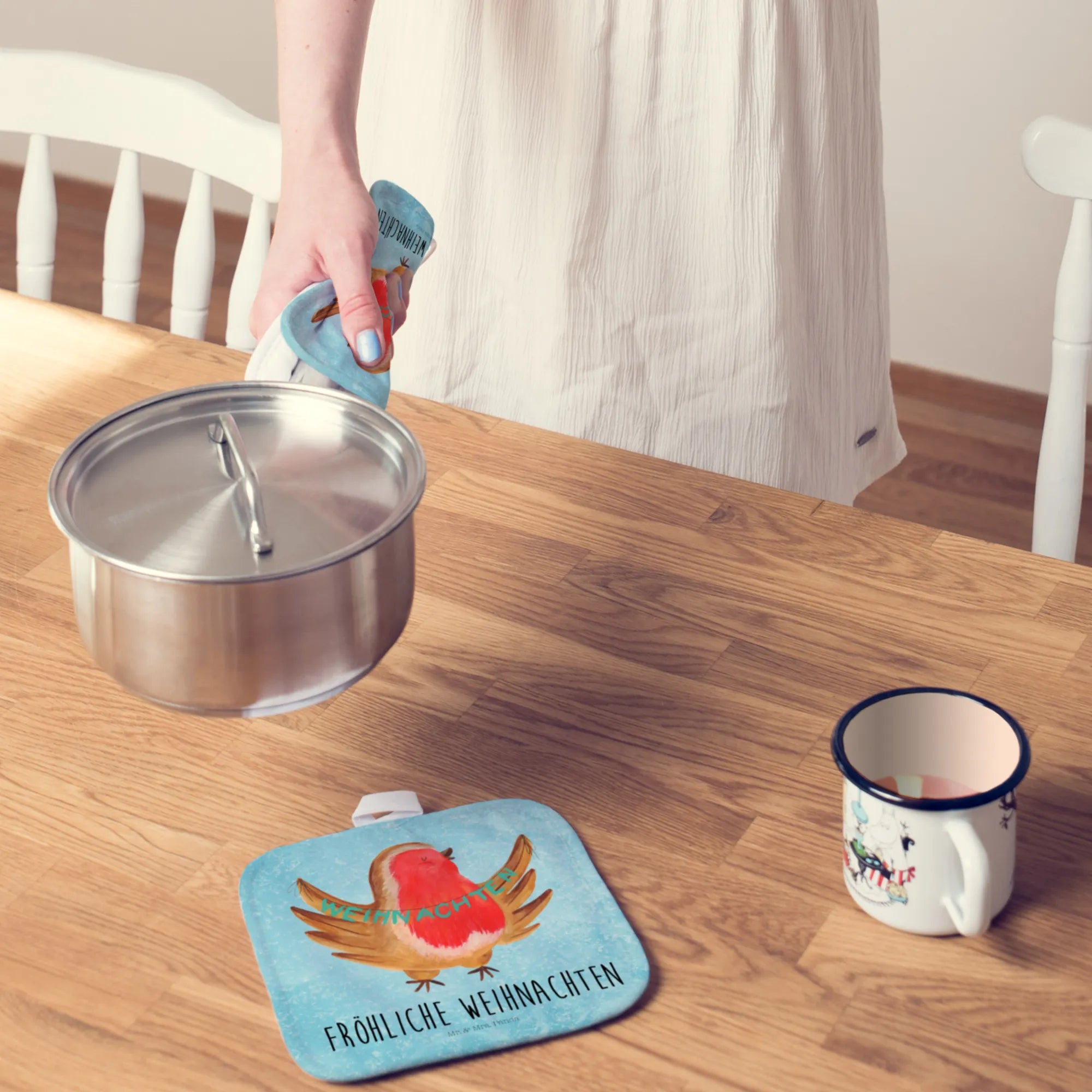 2er Set Topflappen Rotkehlchen Weihnachten - mit Spruch - Eisblau