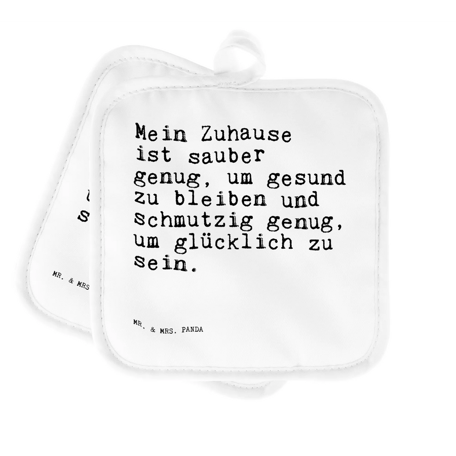 2er Set Topflappen Sprüche und Zitate Mein Zuhause ist sauber genug, um gesund zu bleiben und schmutzig genug, um glücklich zu sein.
