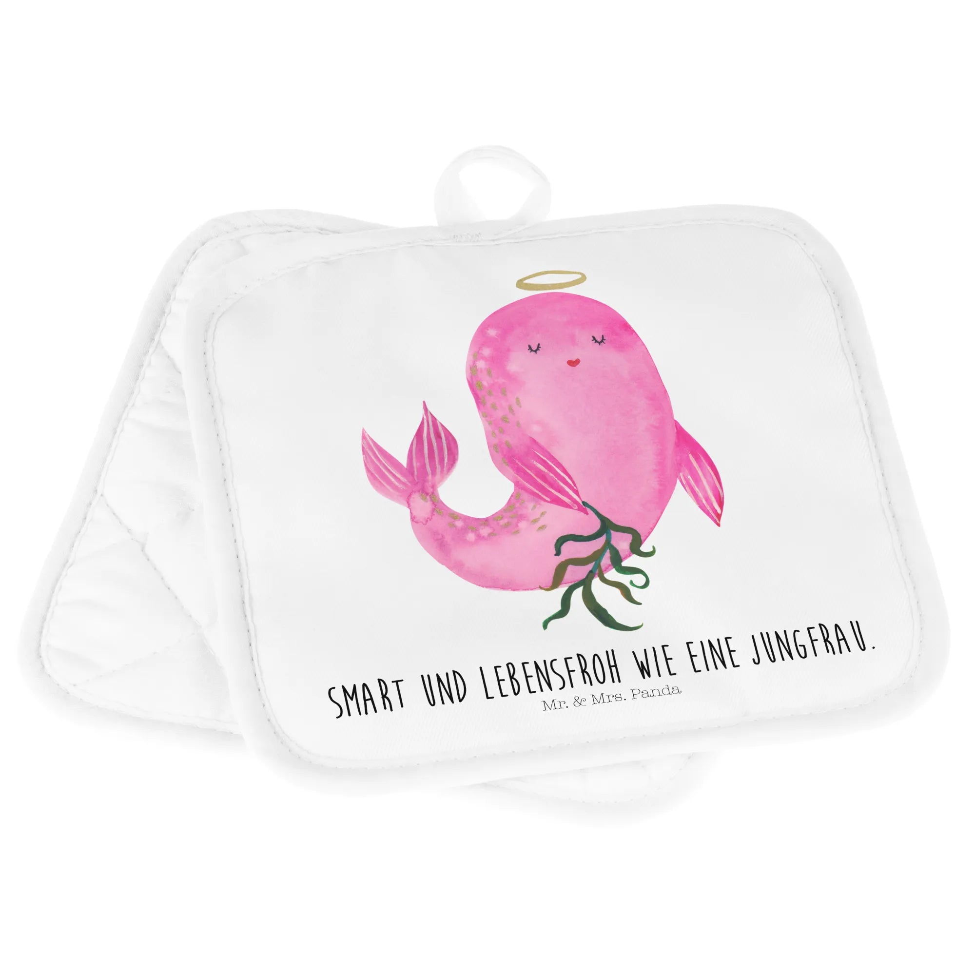 2er Set Topflappen Sternzeichen Jungfrau - mit Spruch - Weiß