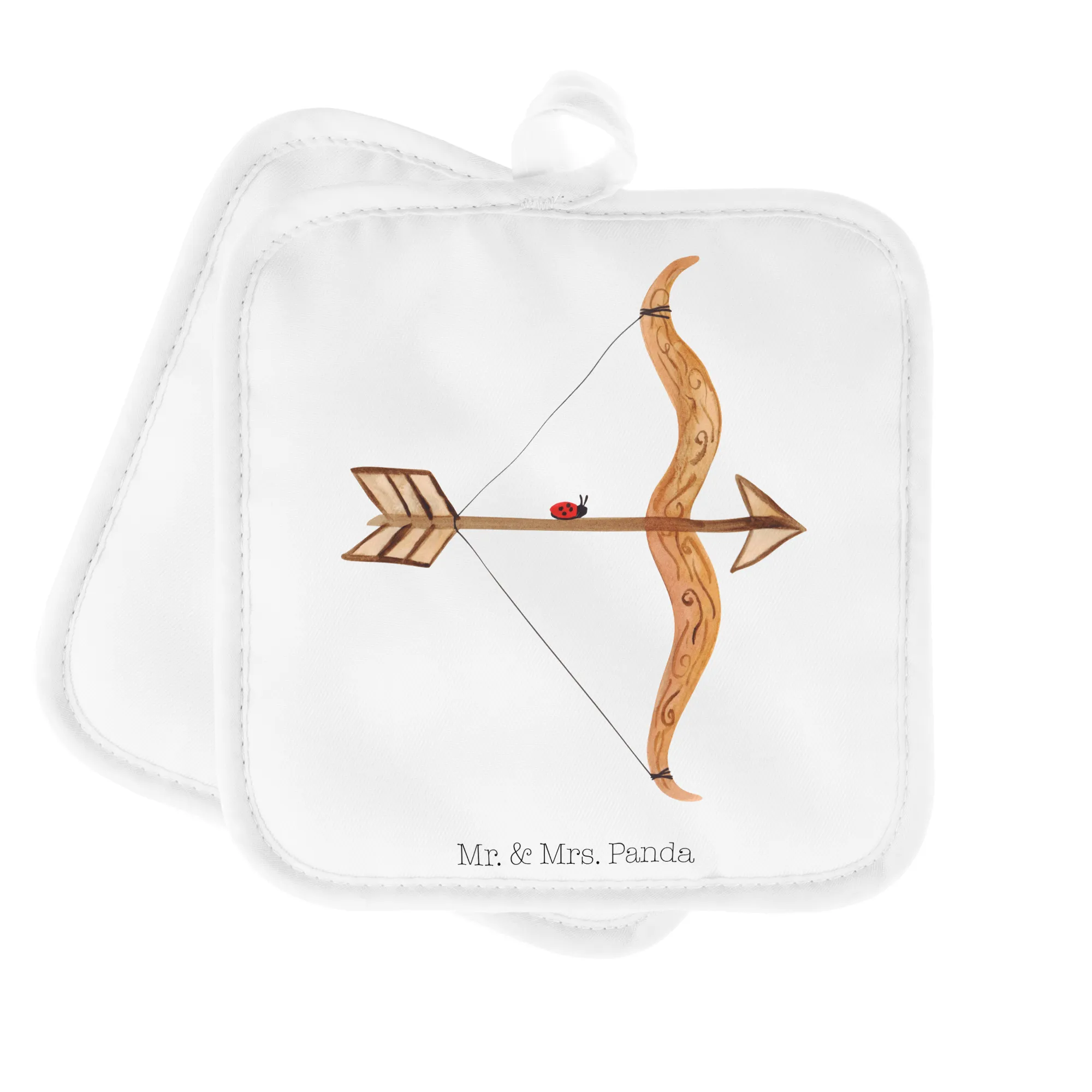 Entdecke das perfekte Geschenk für alle Schützen-Fans – unser 2er Set Topflappen mit dem süßen Motiv des Sternzeichens Schütze!