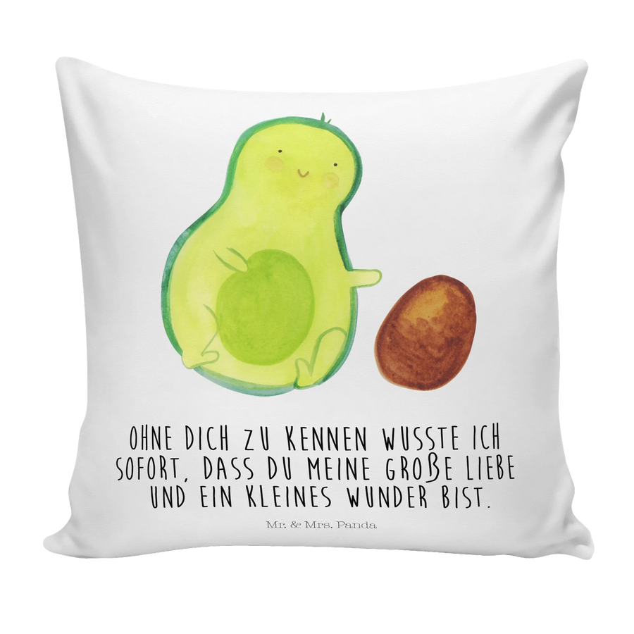 Das wundervolle 40x40 Kissen mit dem Motiv "Avocado rollt Kern" von Mr. & Mrs. Panda ist das perfekte Geschenk für alle, die das Leben lieben und mit einem Hauch von Humor verschönern möchten. Ideal geeignet für werdende Eltern, zur Babyparty oder zur Geburt eines kleinen Wunders - dieses Kissen bringt ein Lächeln ins Gesicht.